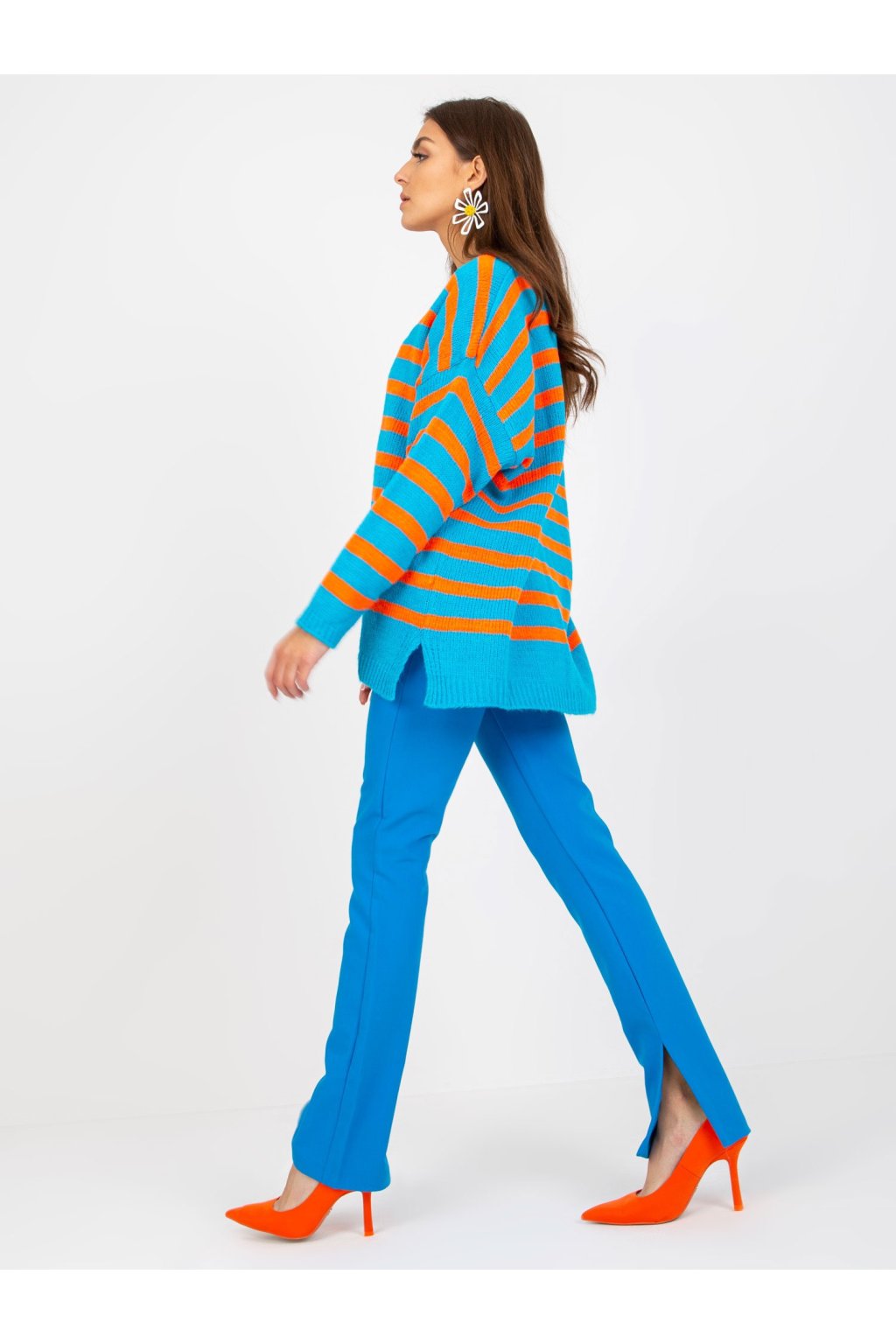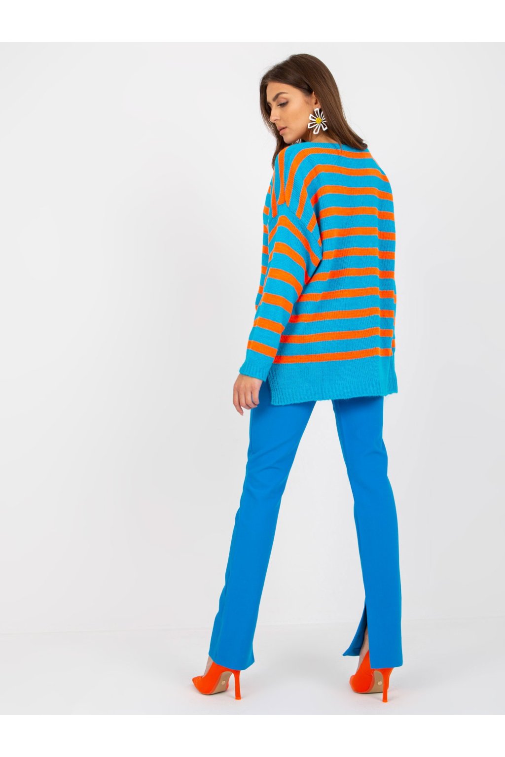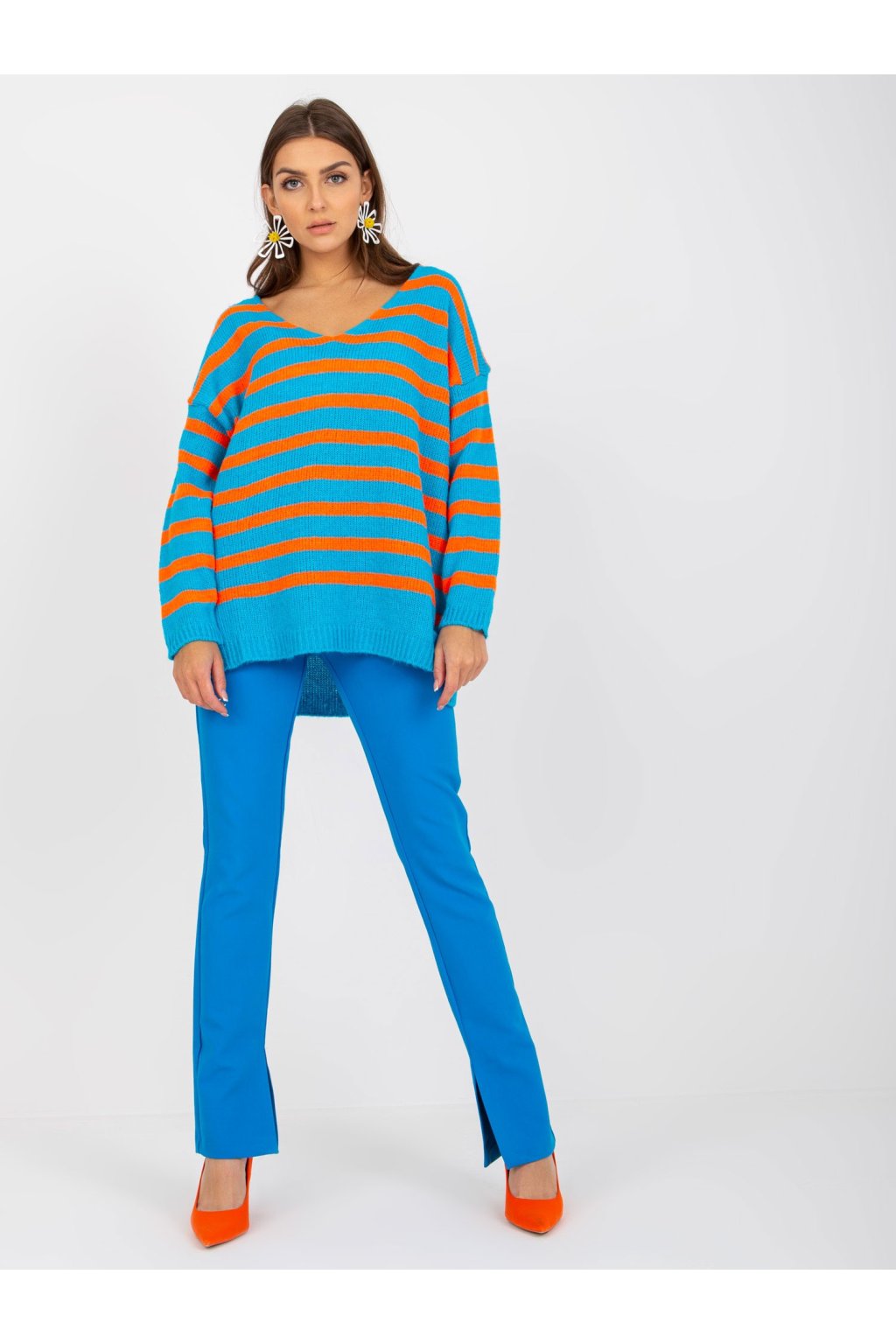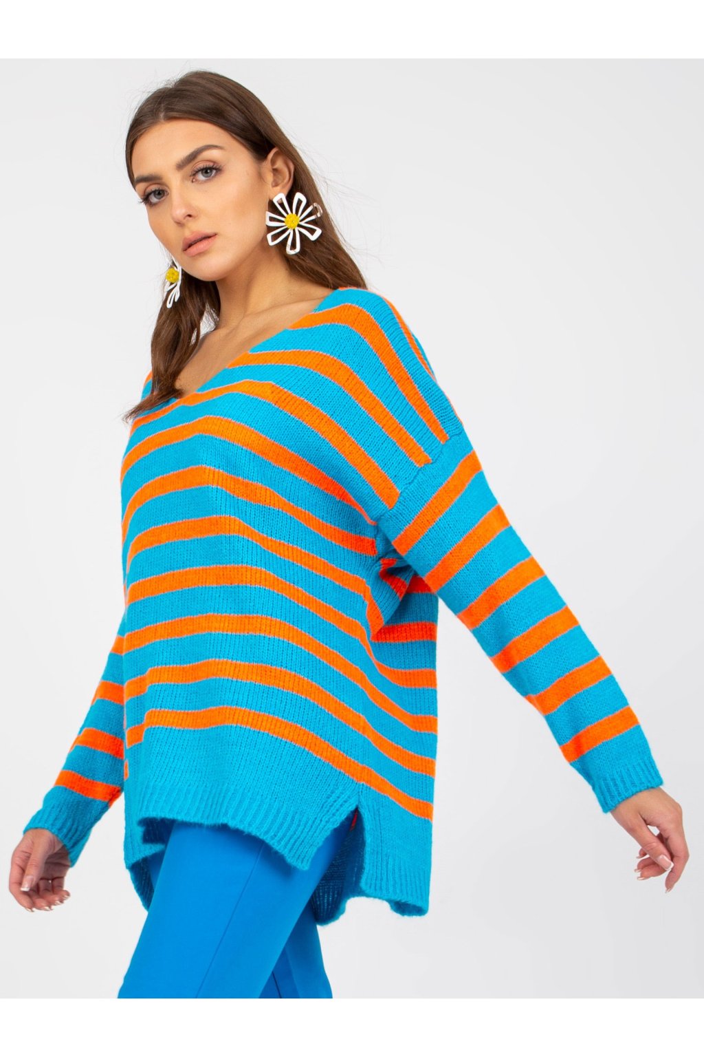 Modro-oranžový oversize sveter s výstrihom do V OCH BELLA .