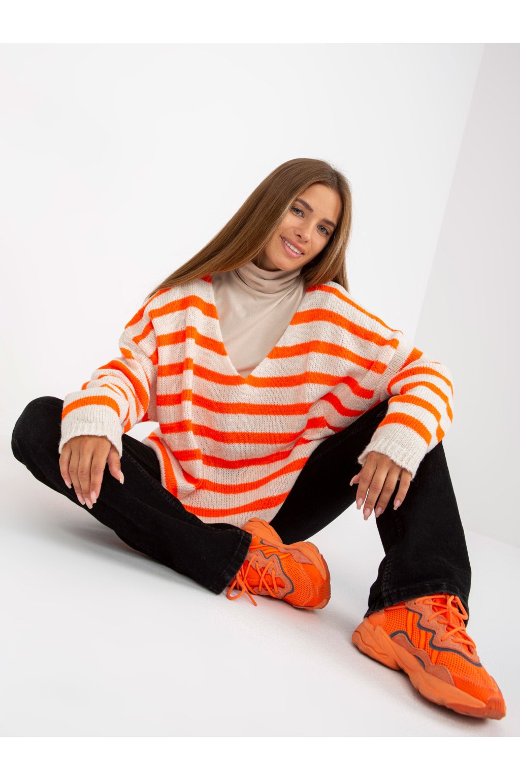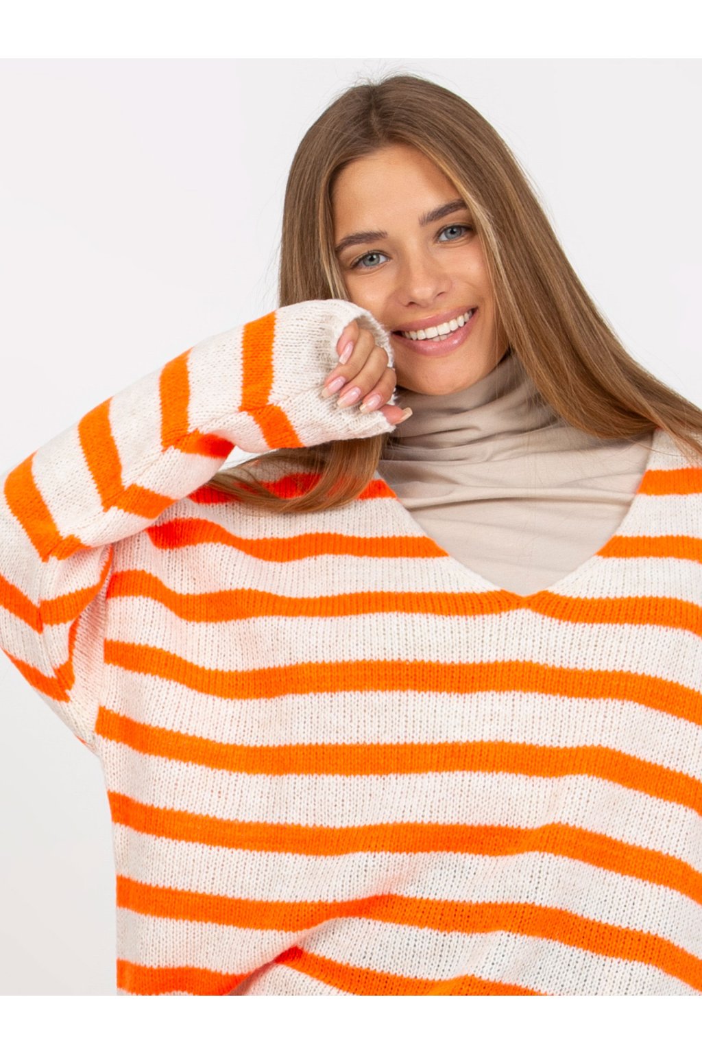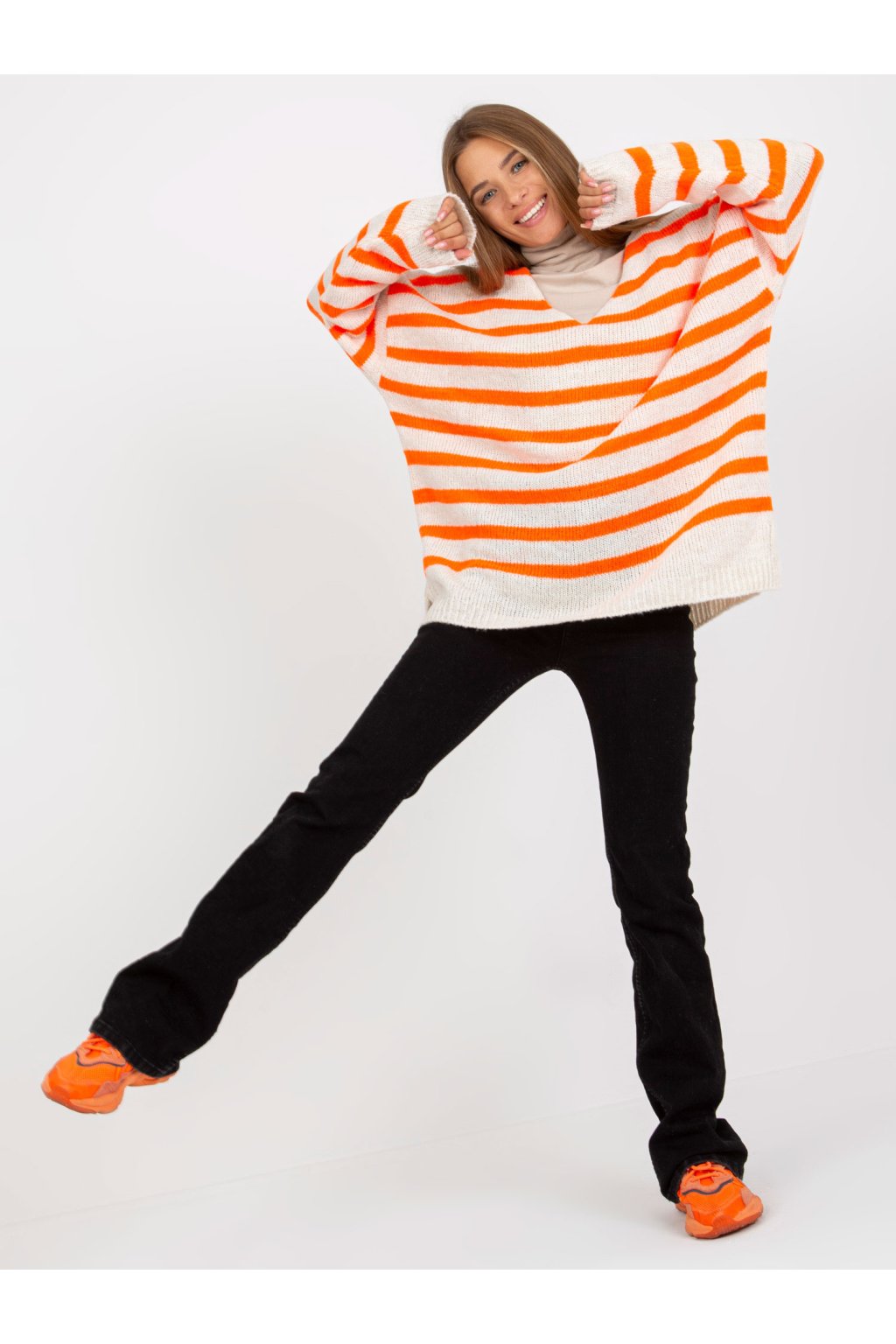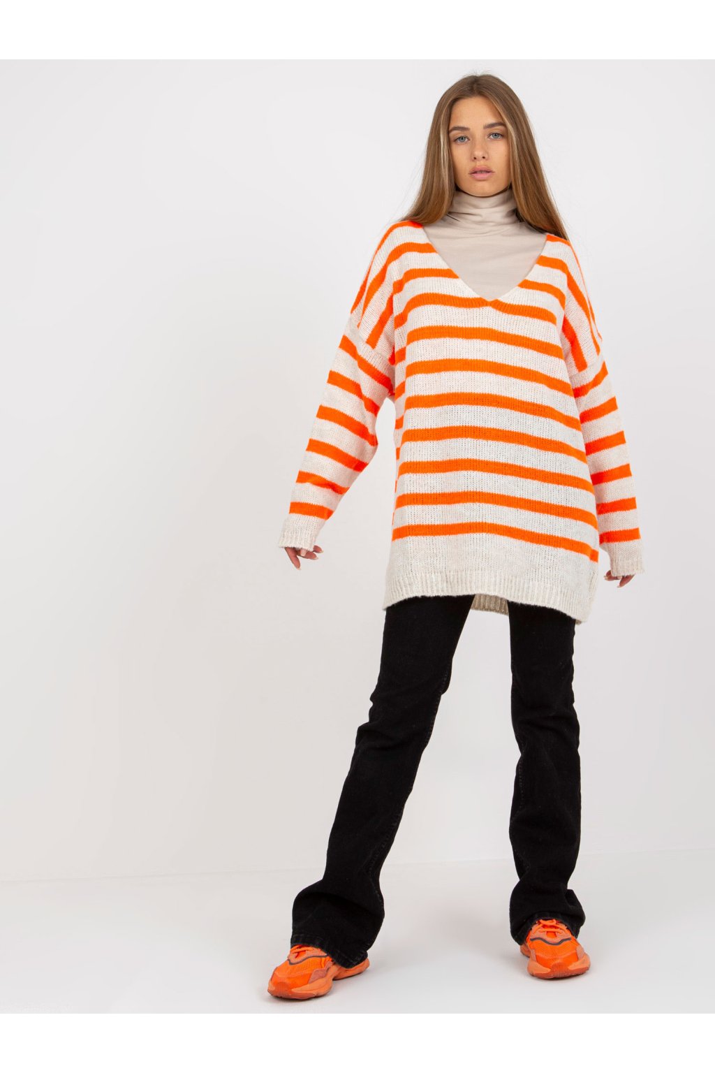 Modro-oranžový oversize sveter s výstrihom do V OCH BELLA .