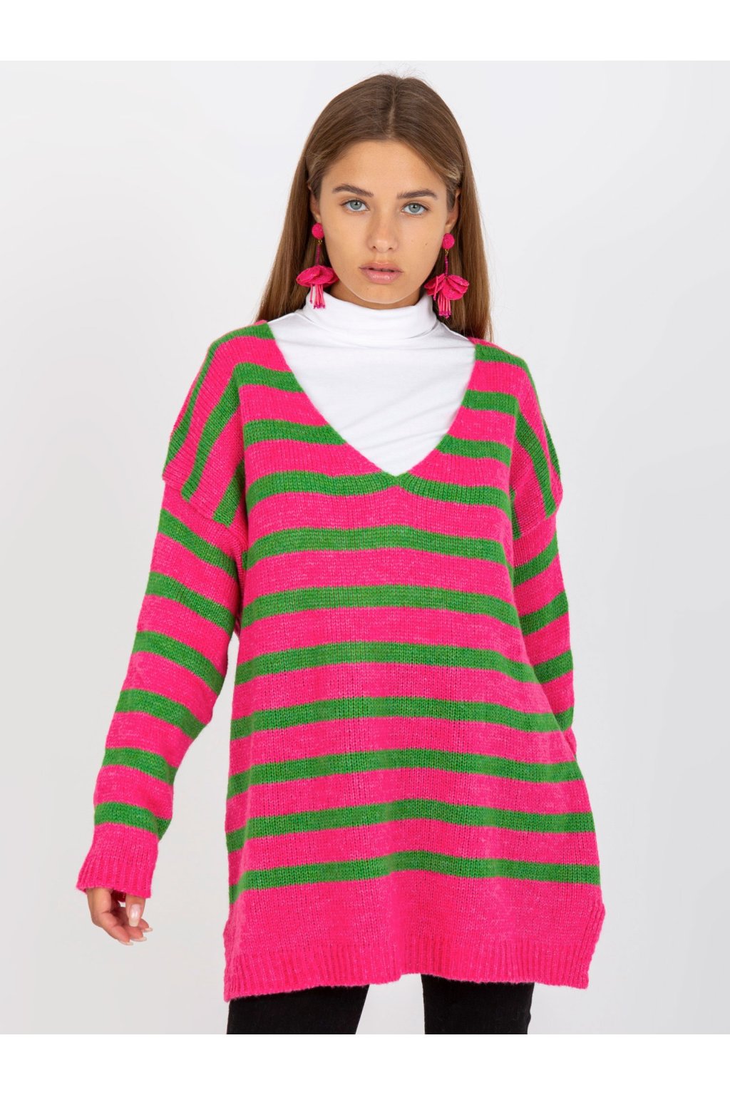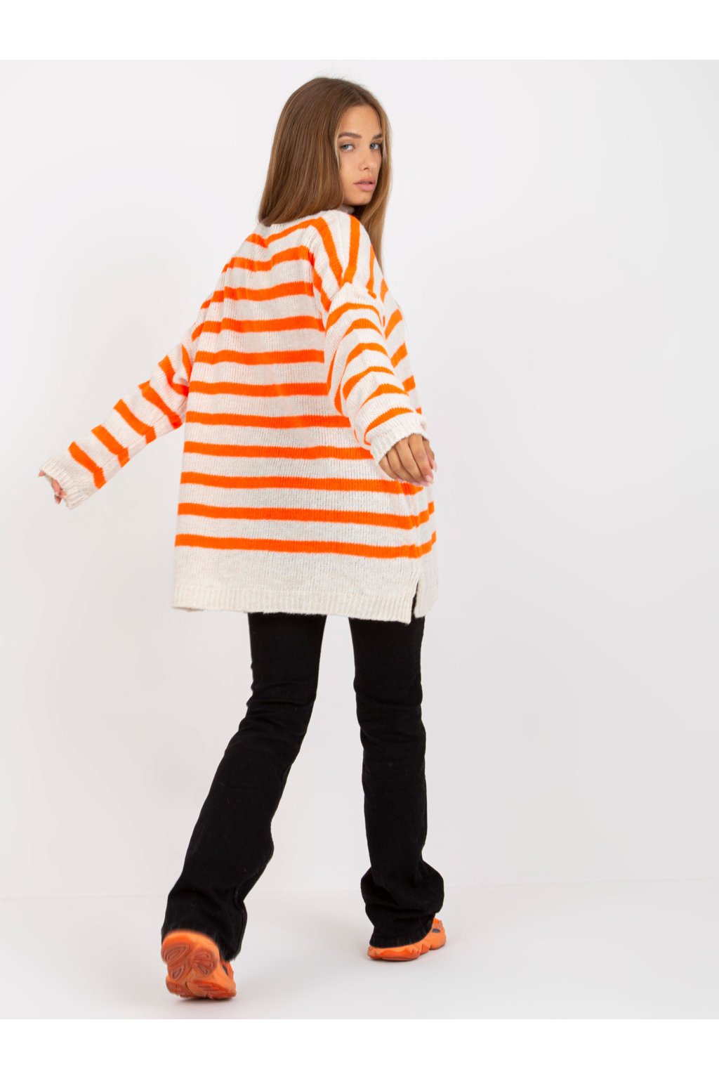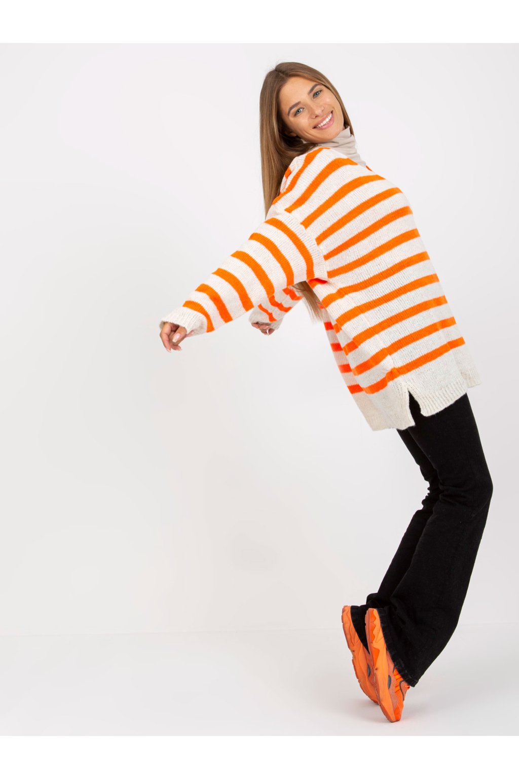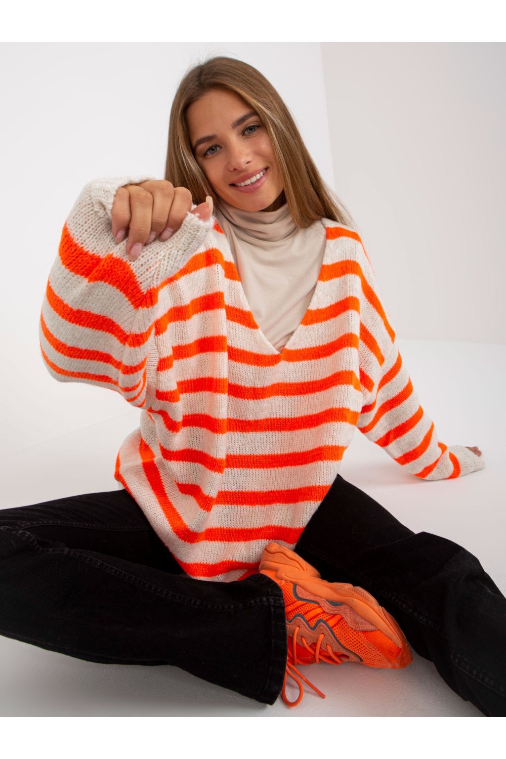 Modro-oranžový oversize sveter s výstrihom do V OCH BELLA .
