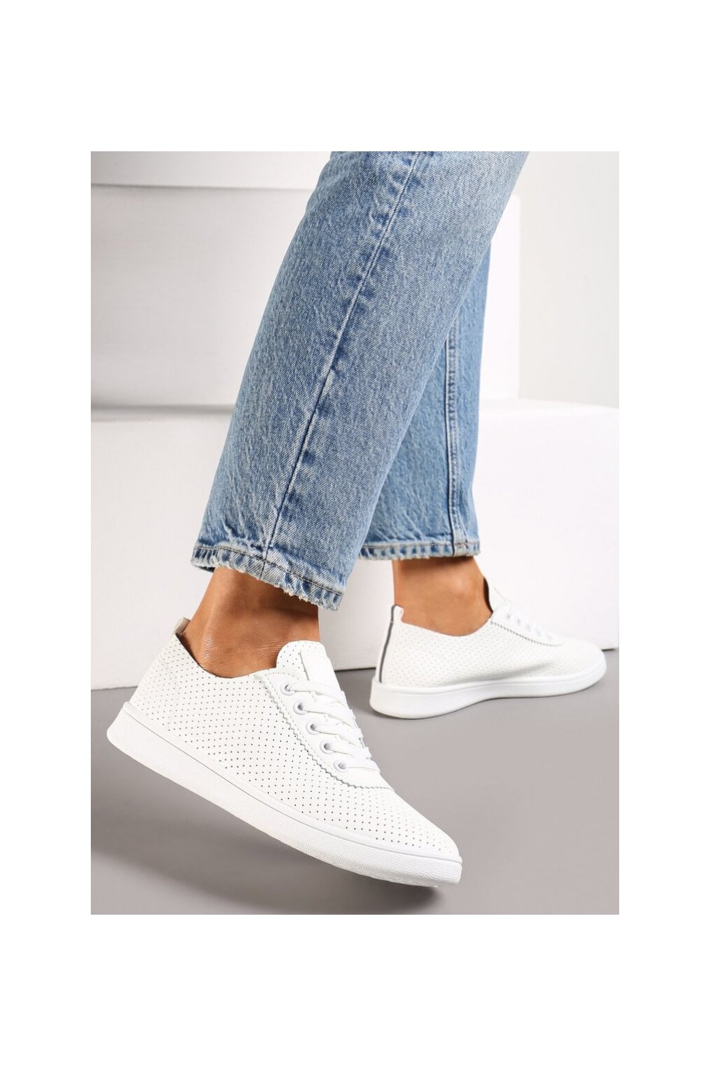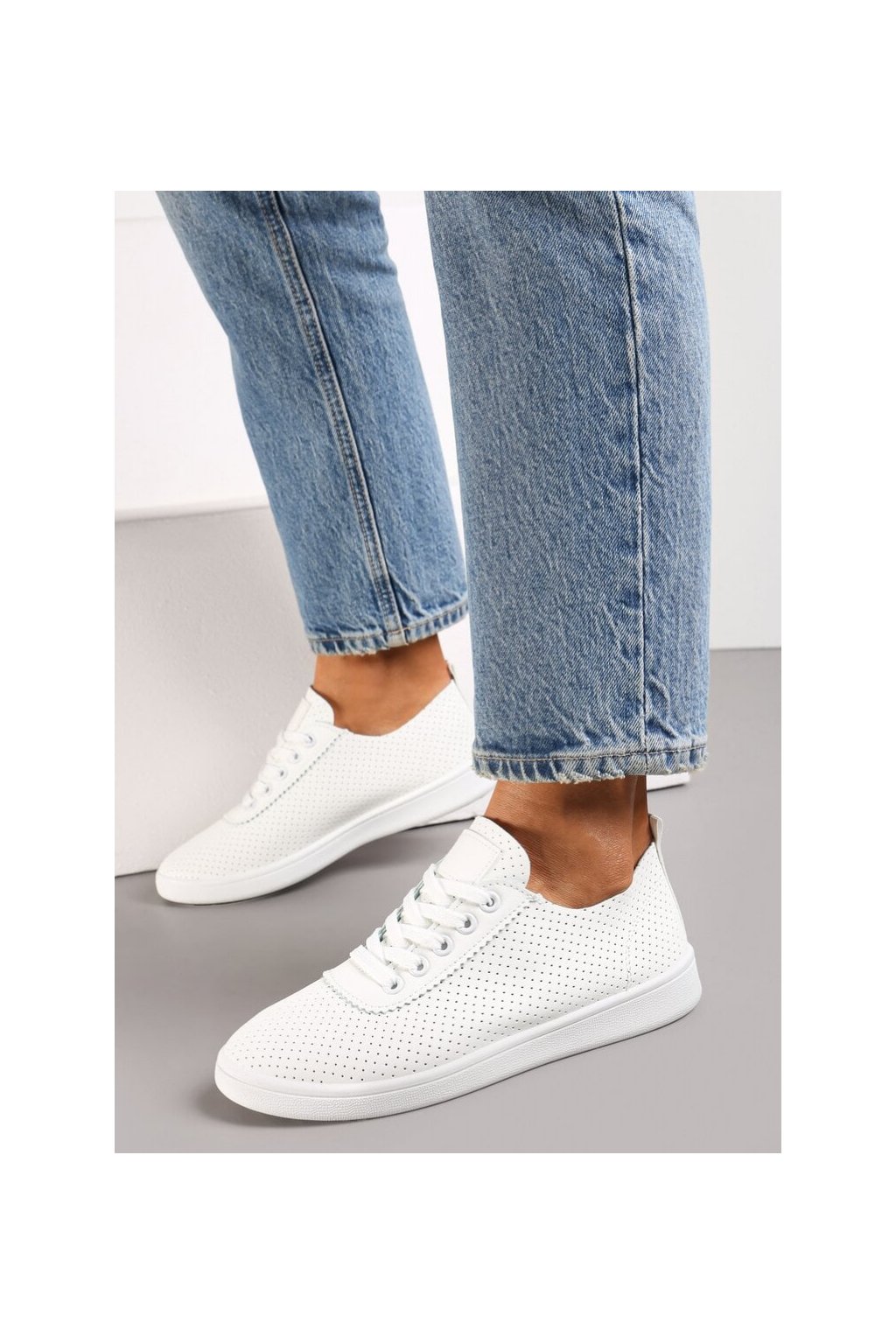 Biele dámske dierované tenisky NB623 zo z eko kože na šnúrovanie