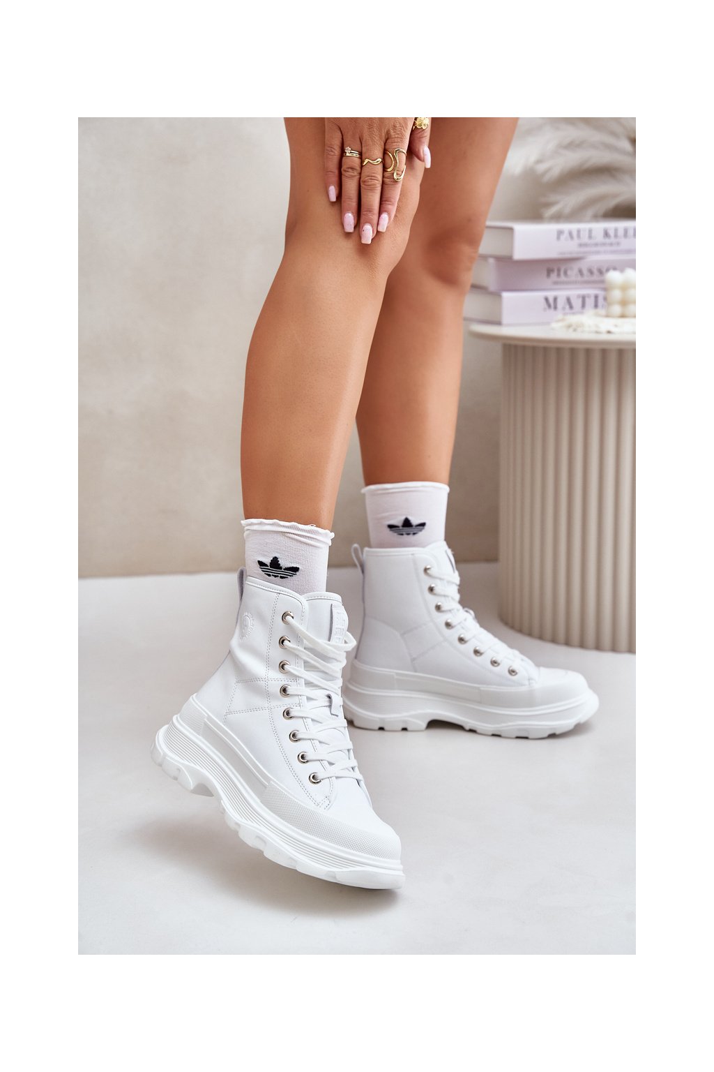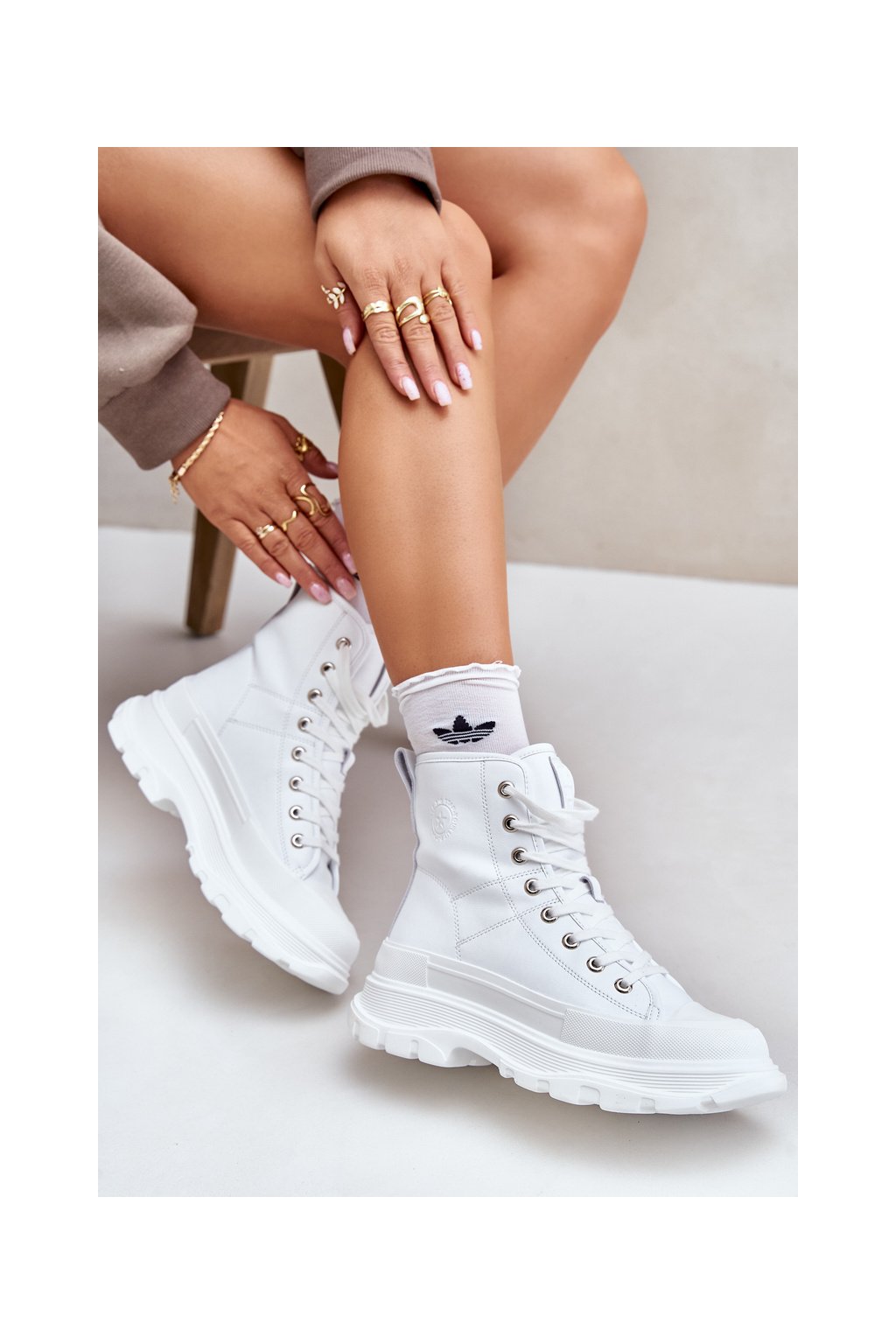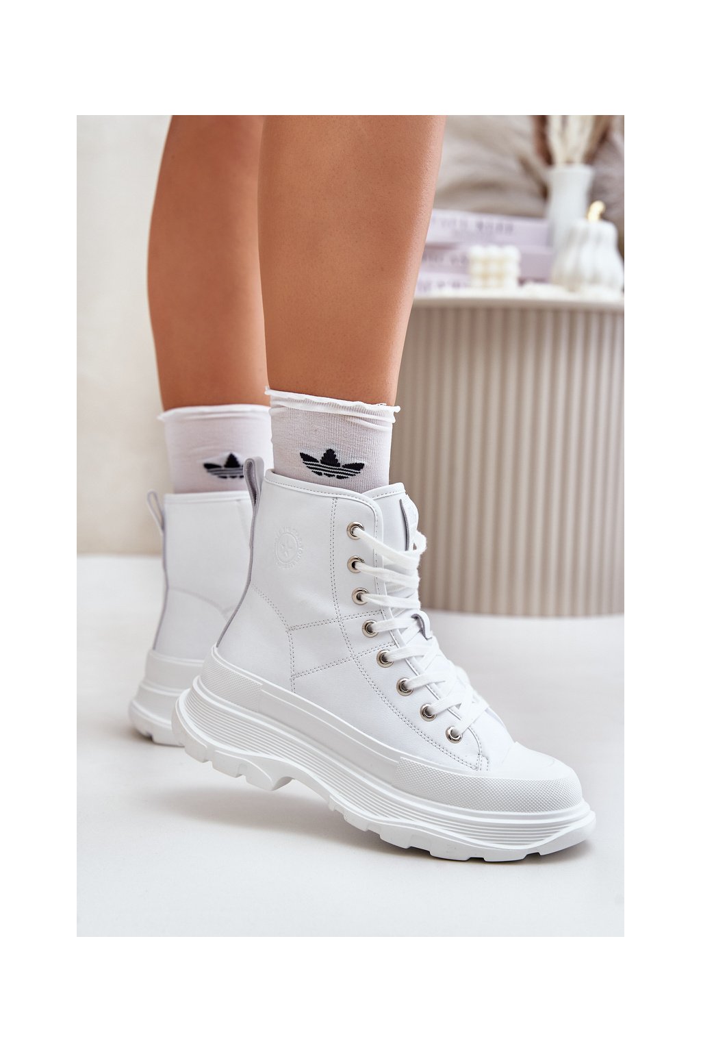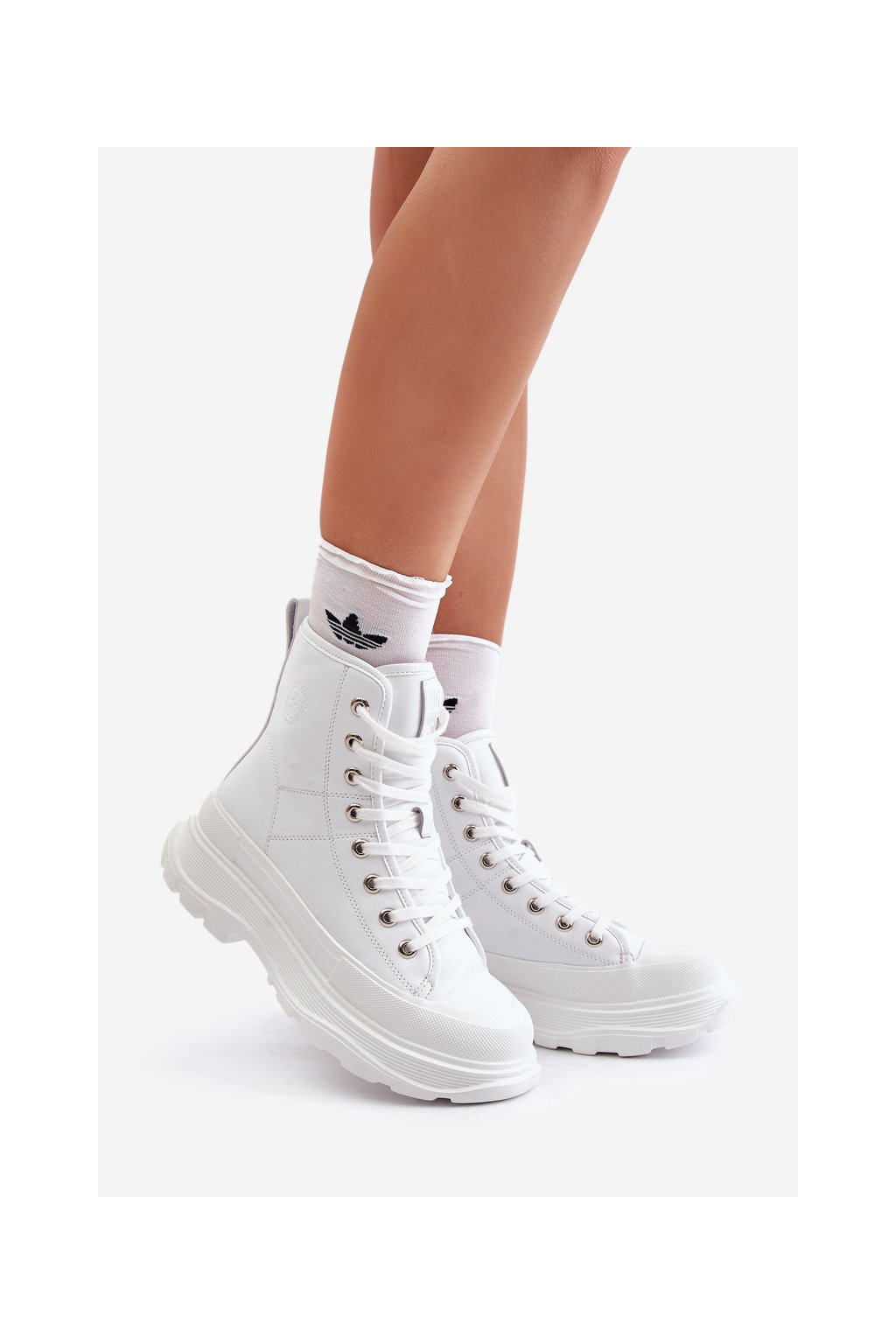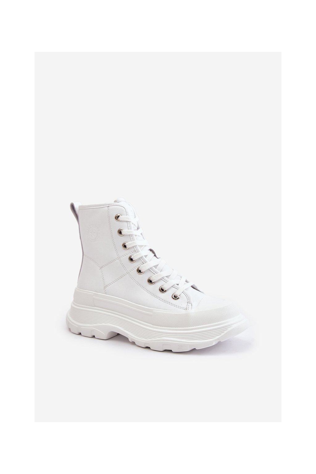 Biele dámske kožené tenisky na plošej podrážke Big Star OO274A598