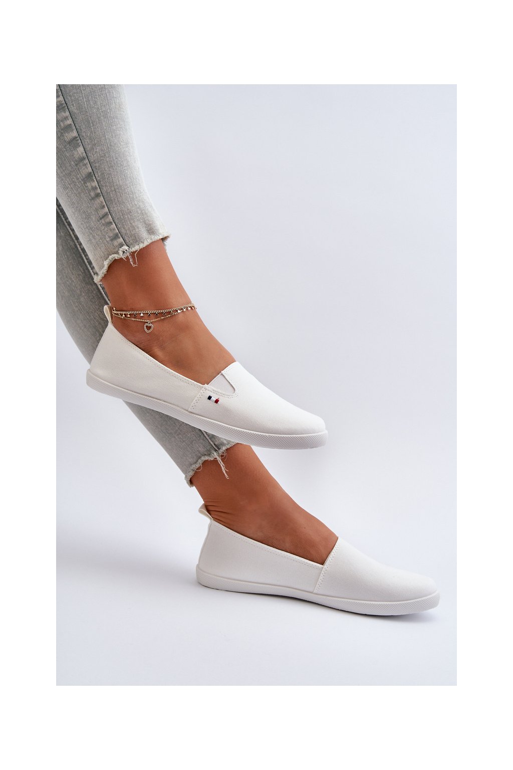 Biele dámske slip-on tenisky z textilu na rovnej podrážke, kód produktu 24TX02-7655 WHITE