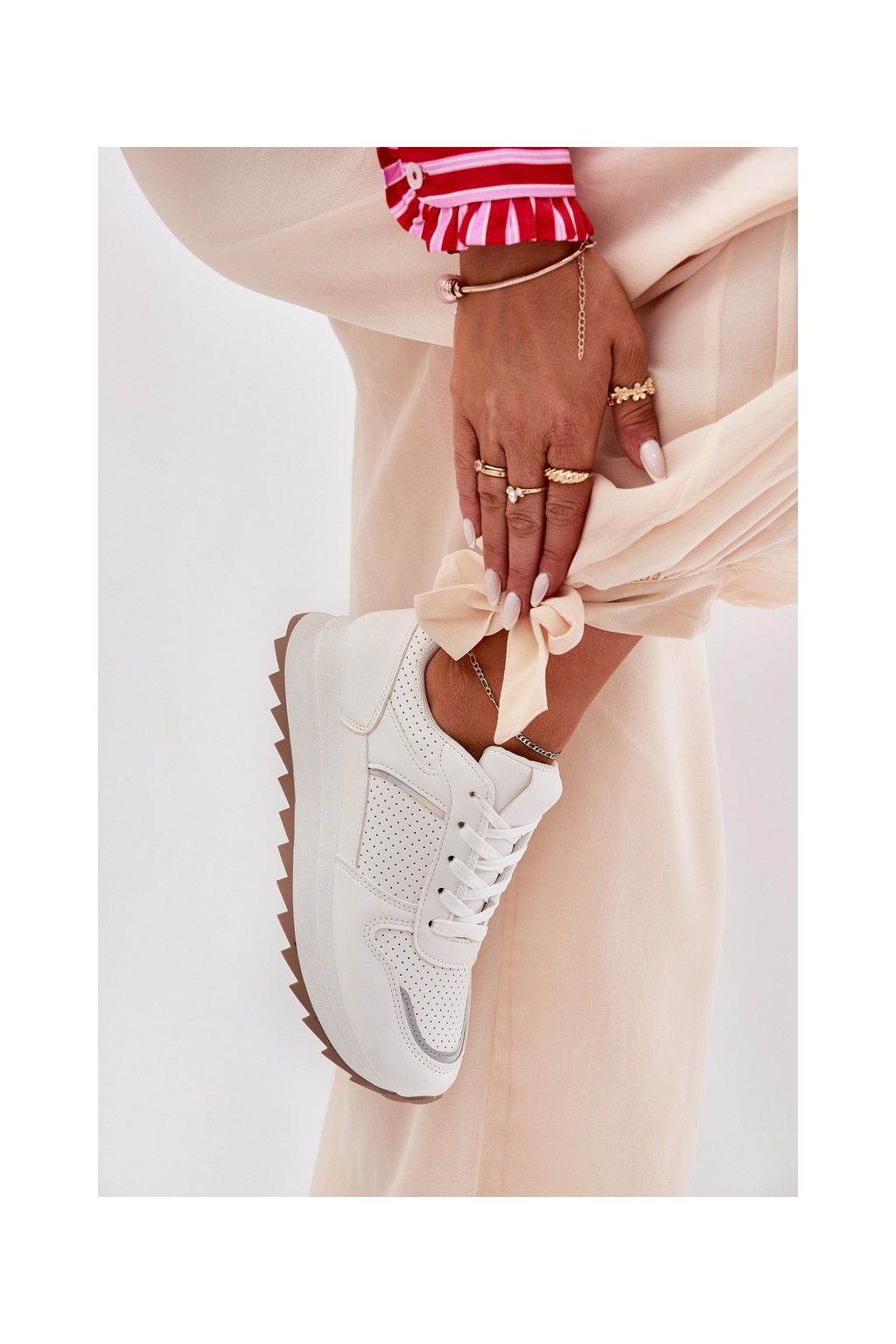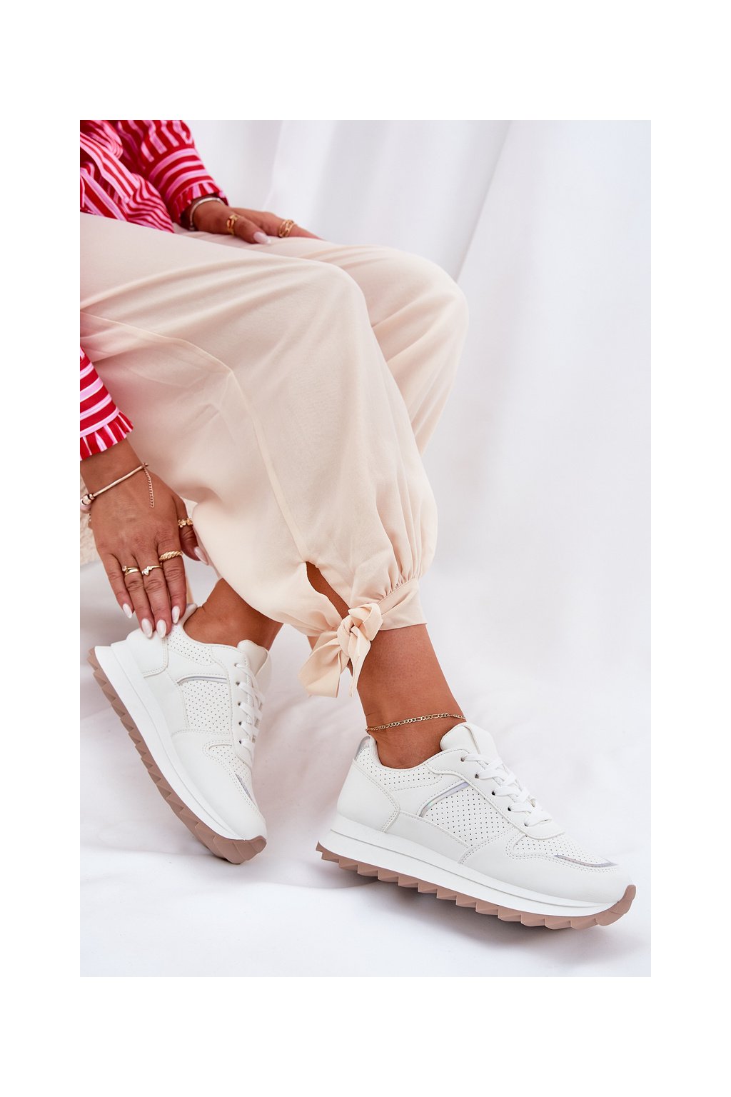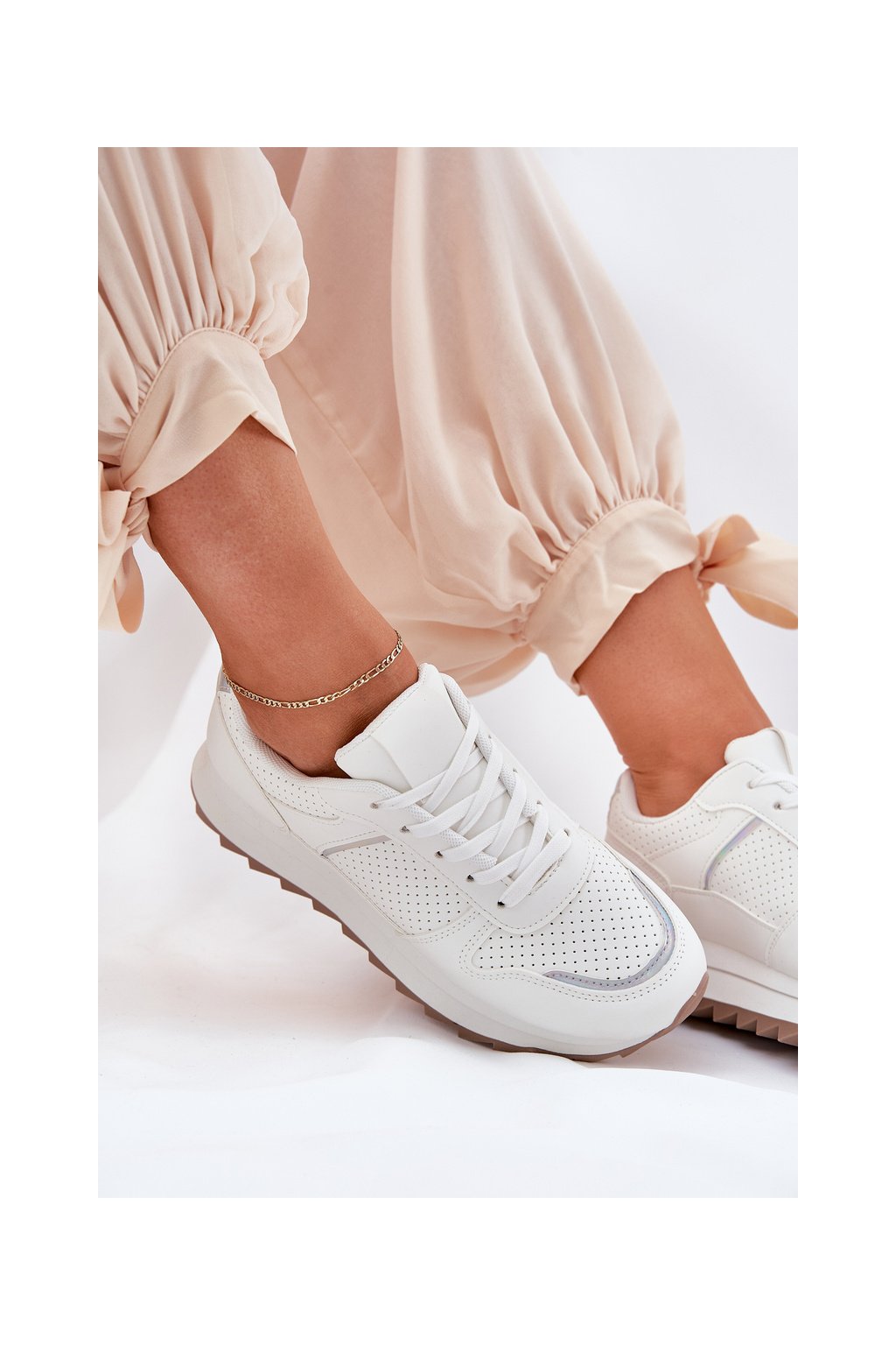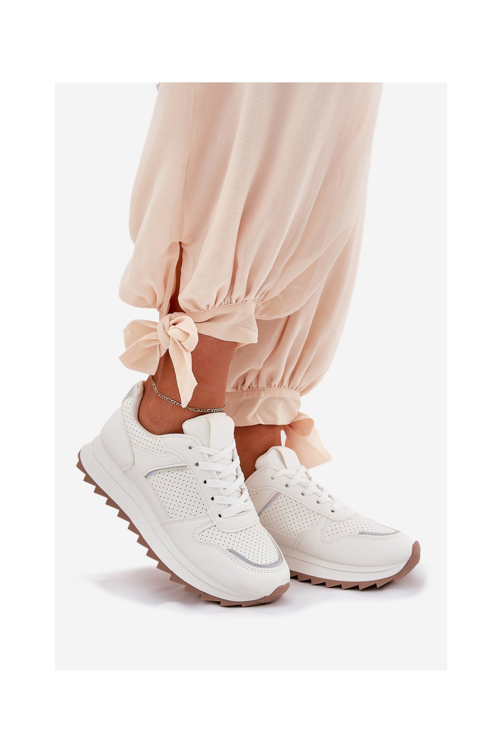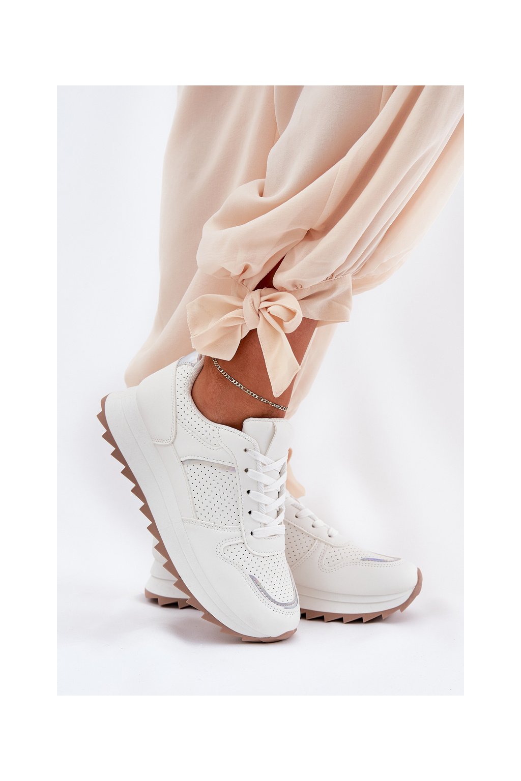 Biele dámske športové tenisky z eko kože na platforme kód LT230-7 WHITE