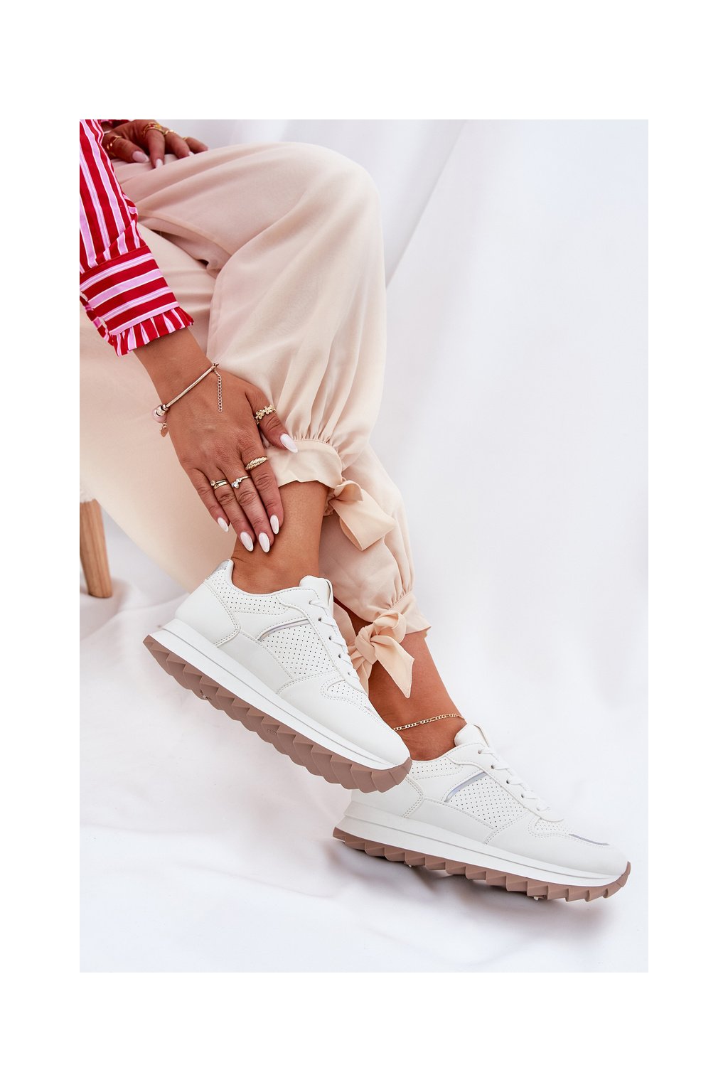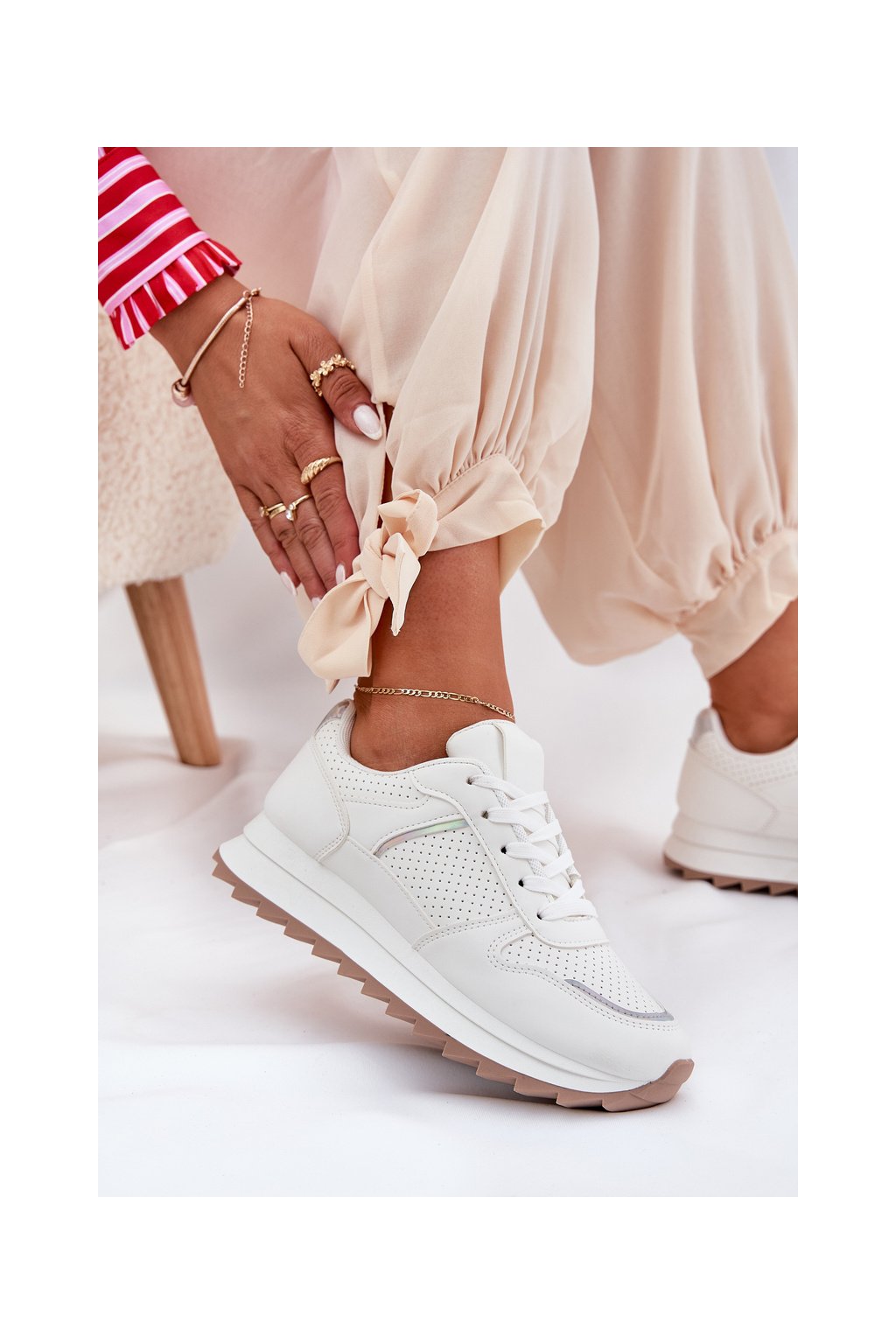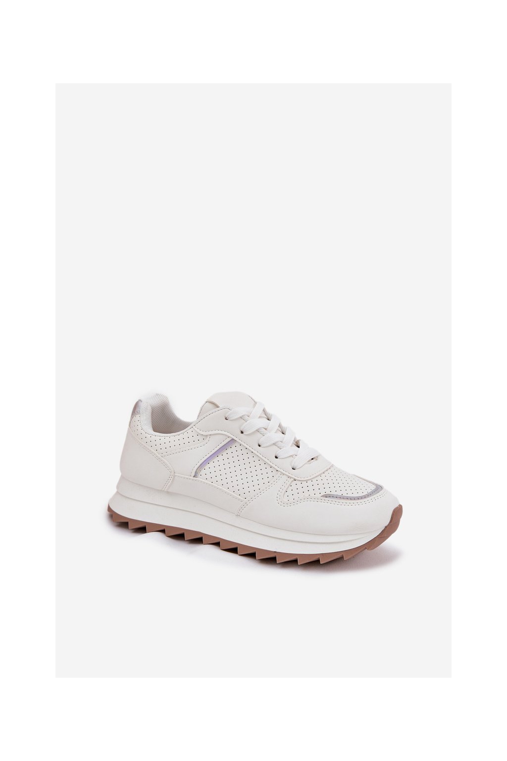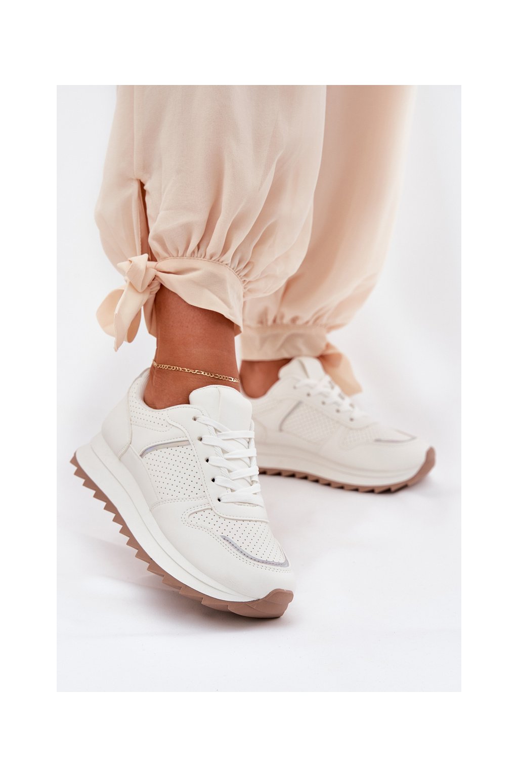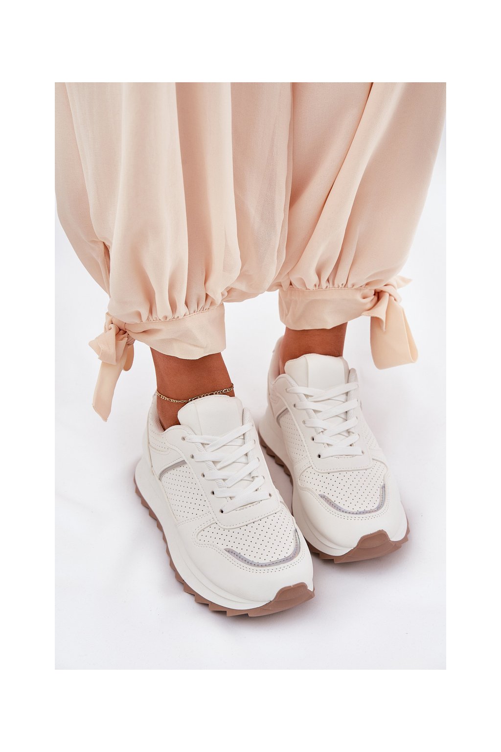 Biele dámske športové tenisky z eko kože na platforme kód LT230-7 WHITE