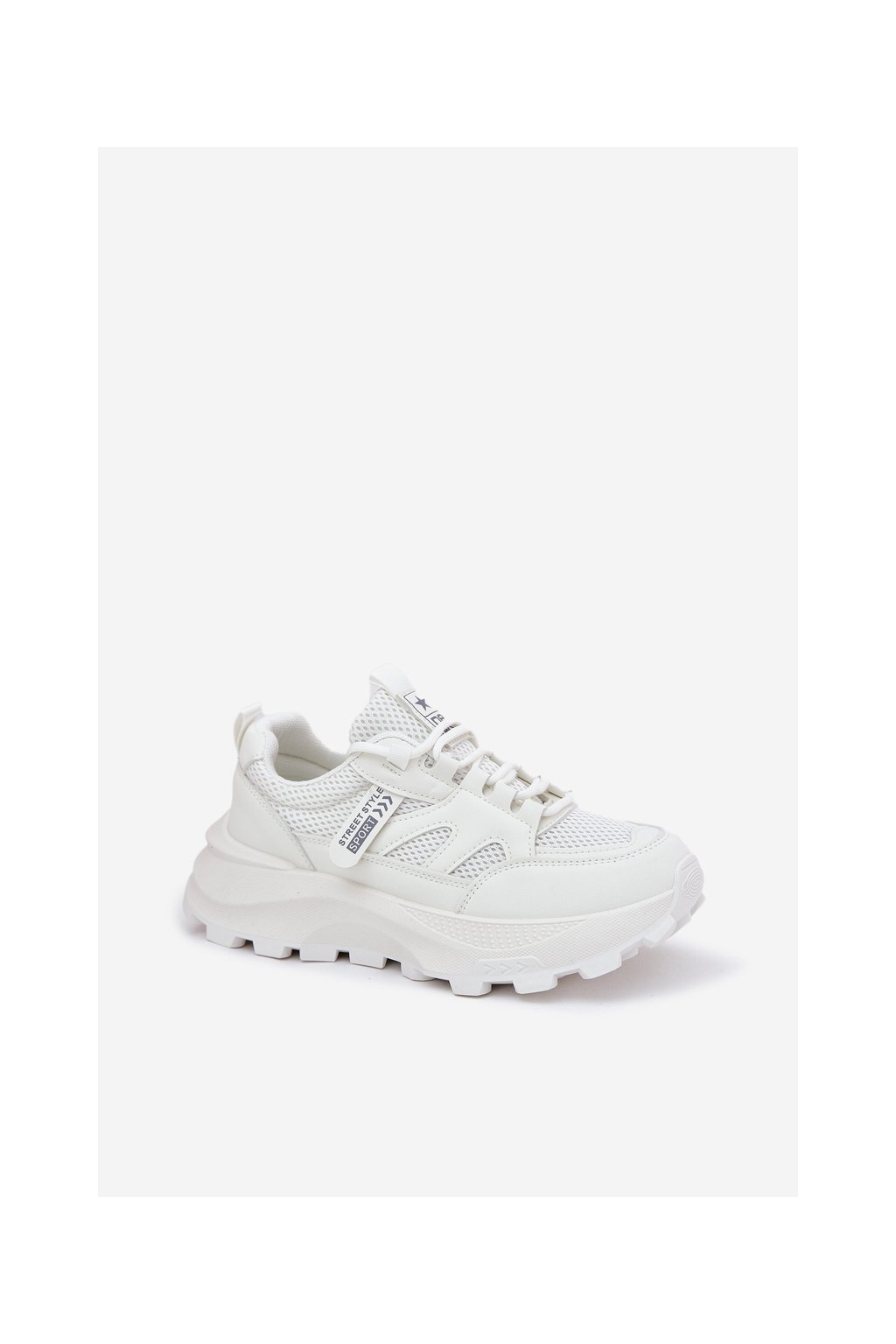 Biele dámske tenisky na platforme s hrubou podrážkou z eko kože, kód produktu 25SP36-8511 WHITE