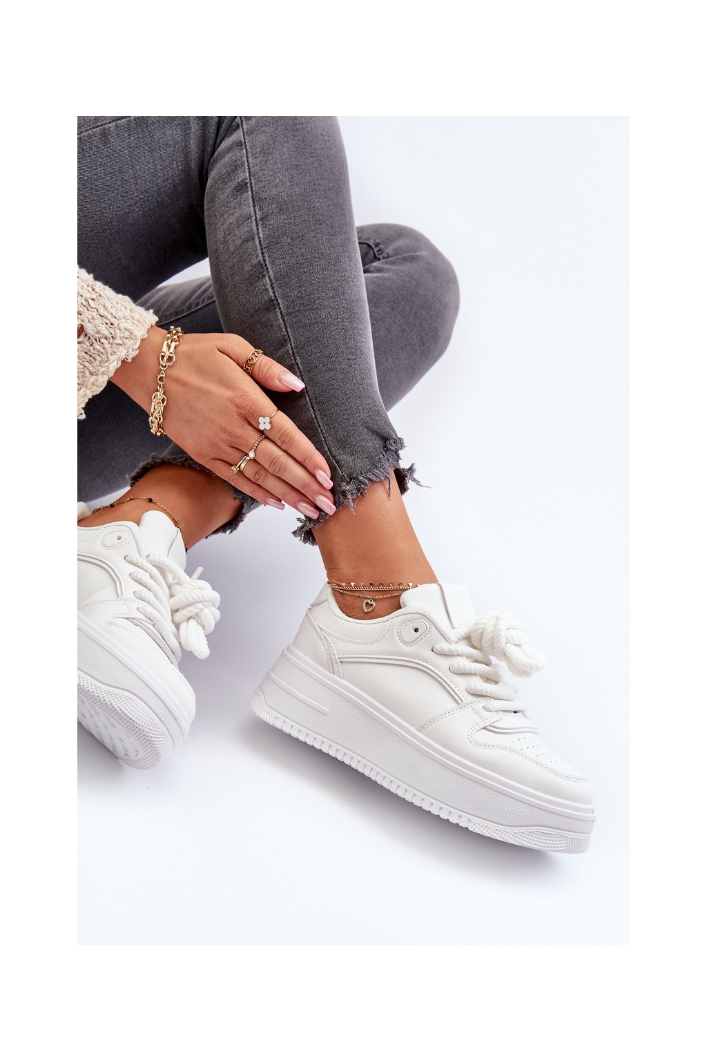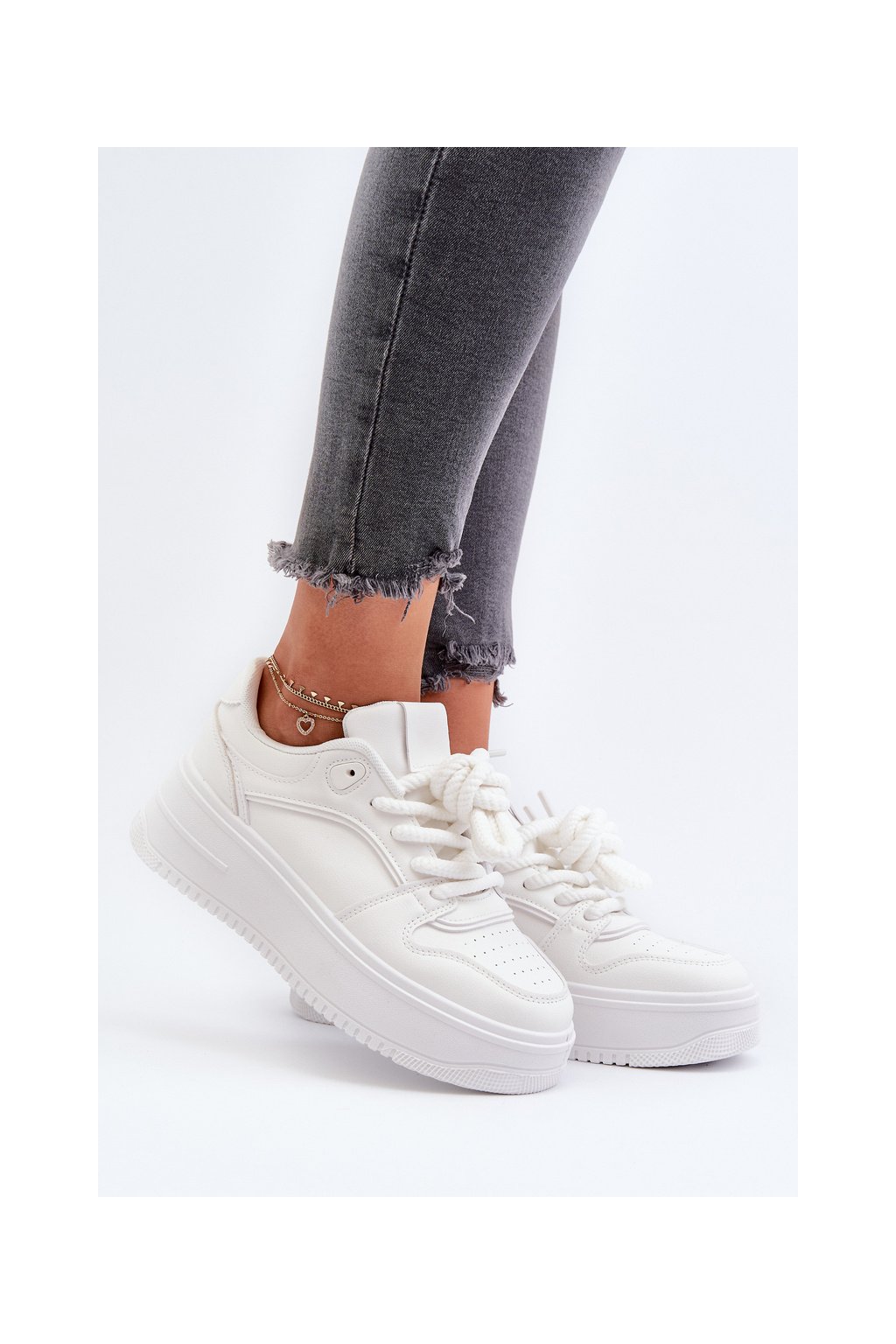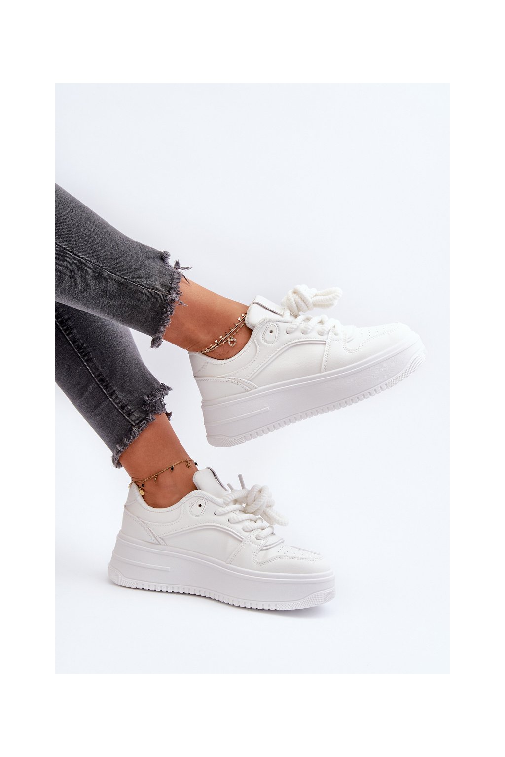Biele dámske tenisky z eko kože na platforme, kód produktu C2148 ALL WHITE