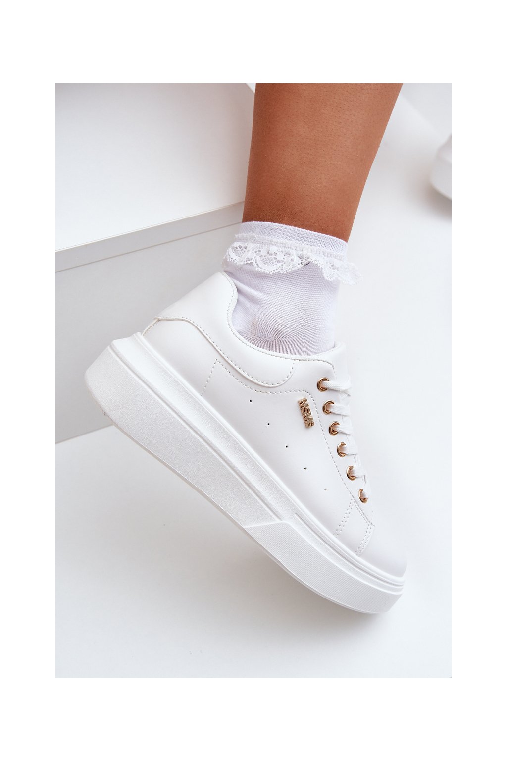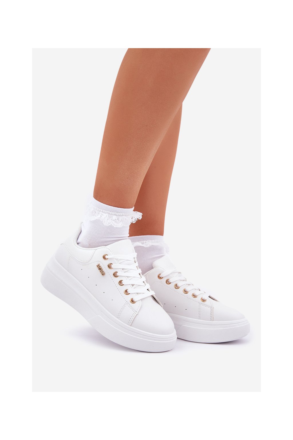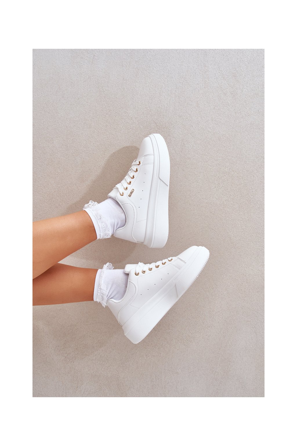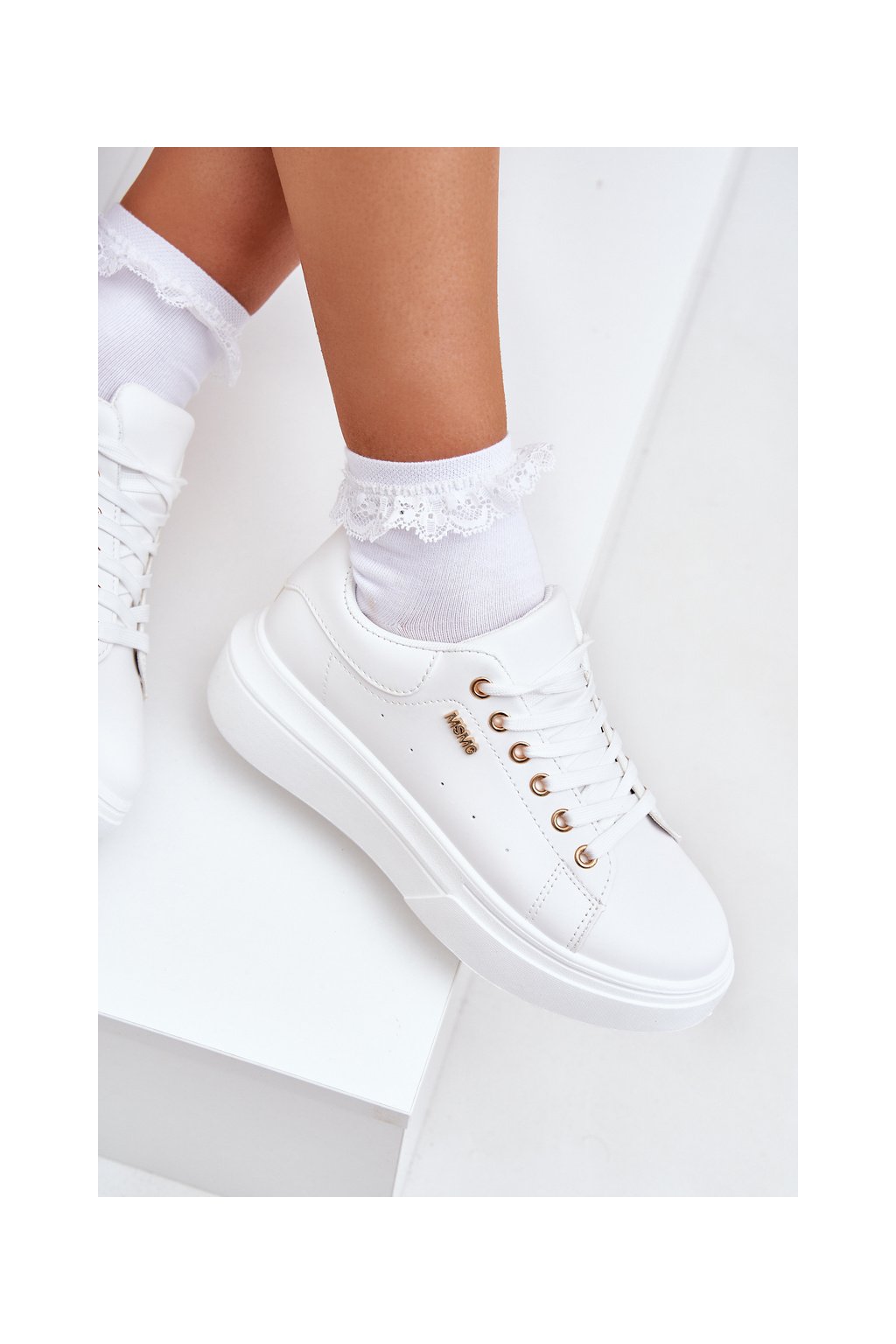 Biele dámske tenisky z ekologickej kože na platforme, TL601-9 WHITE