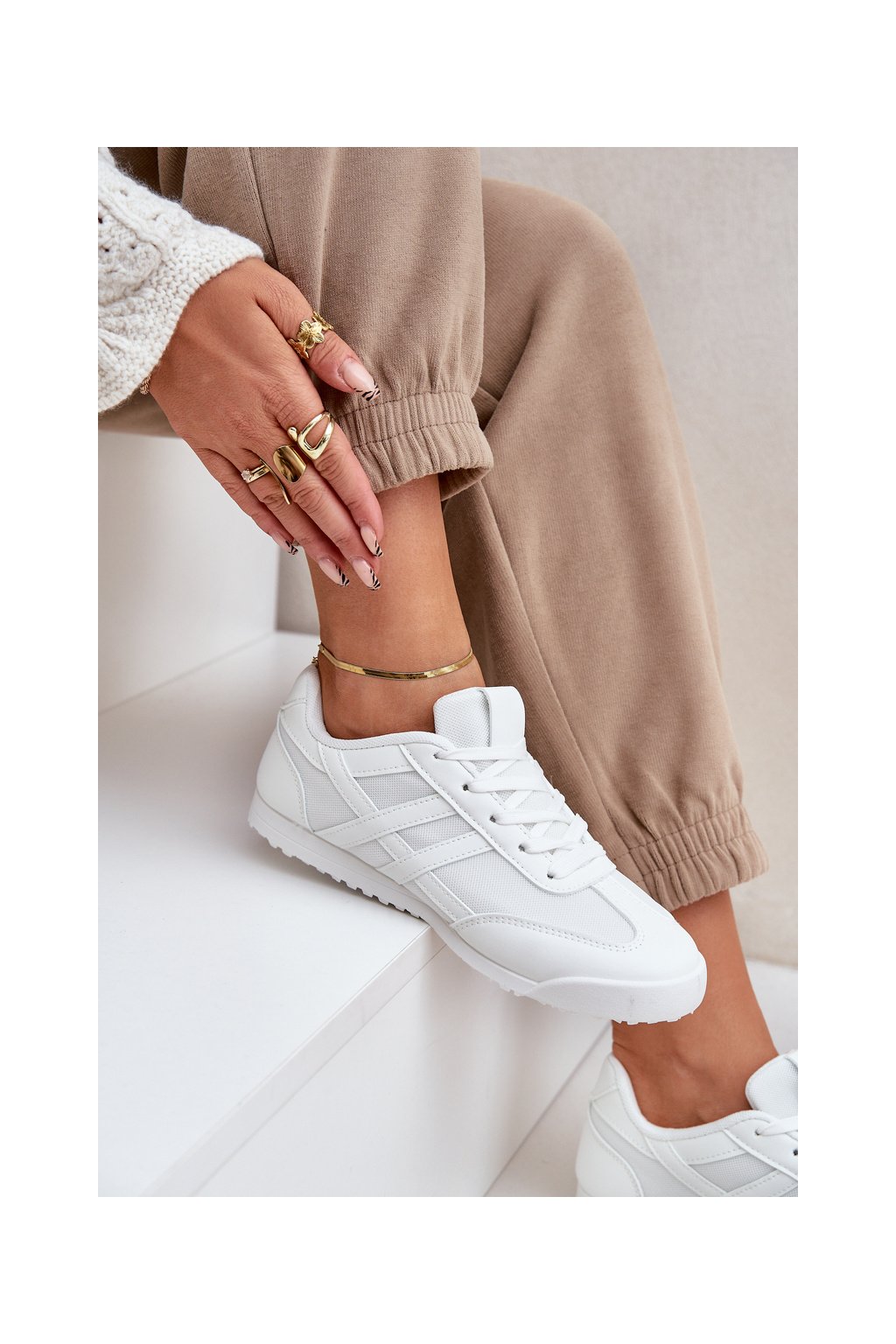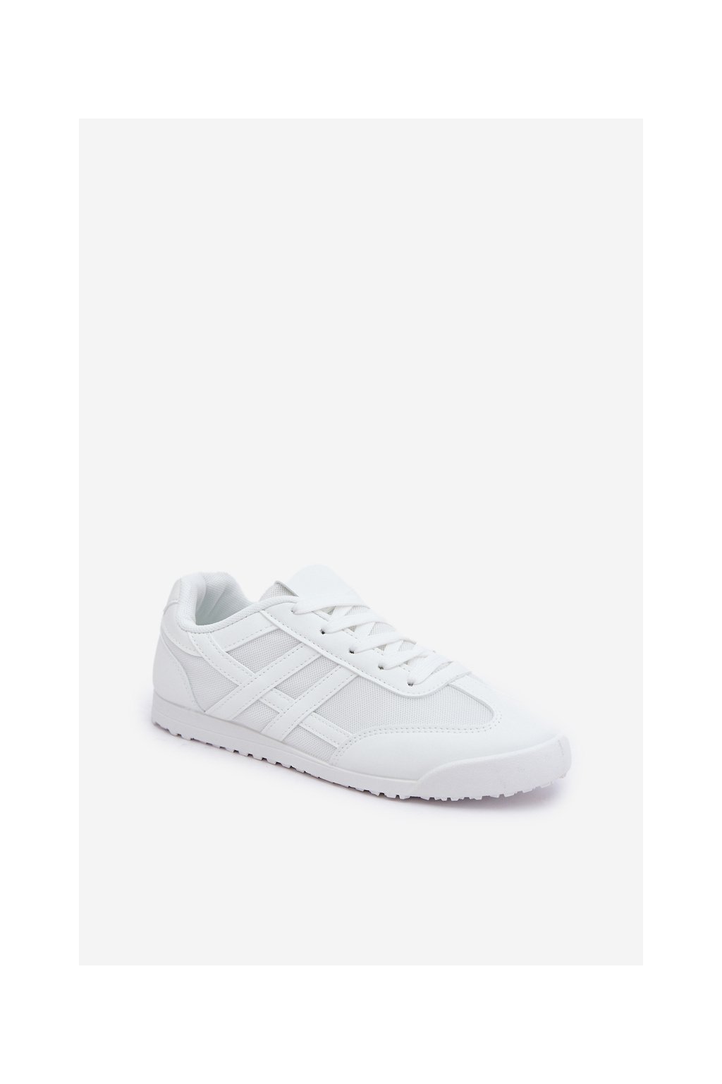 Biele dámske tenisky z textilu na rovnej podrážke, kód produktu 9153 WHITE