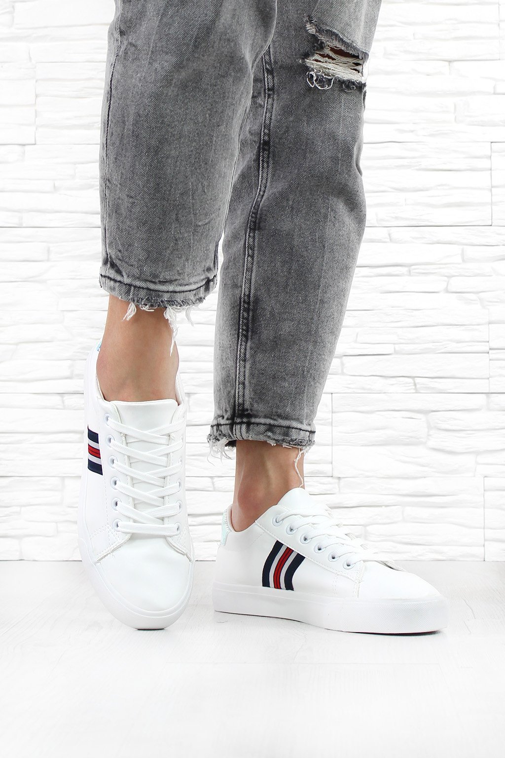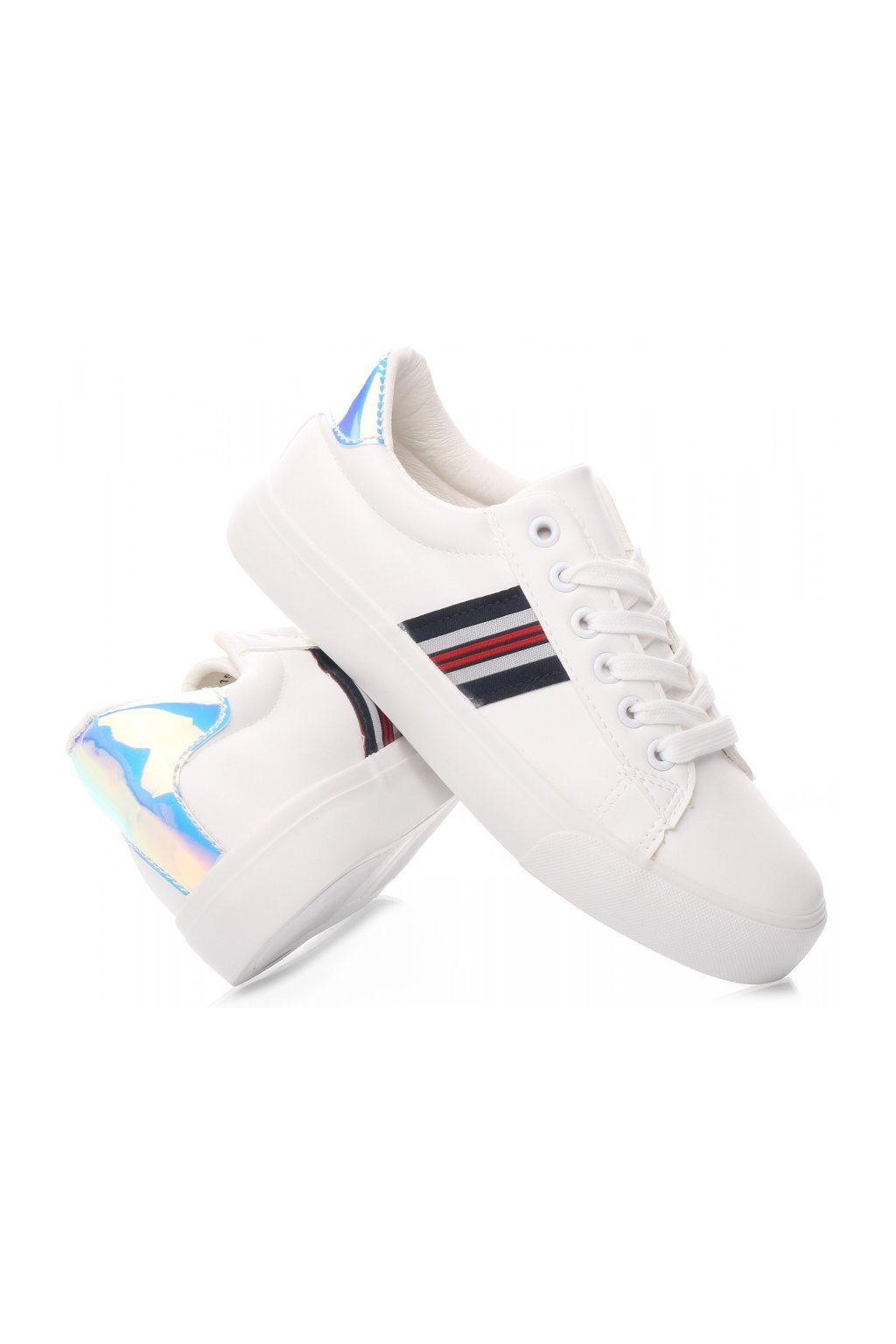 Biele dámske športové tenisky z eko kože na nízkom podpätku, kód produktu BL158P