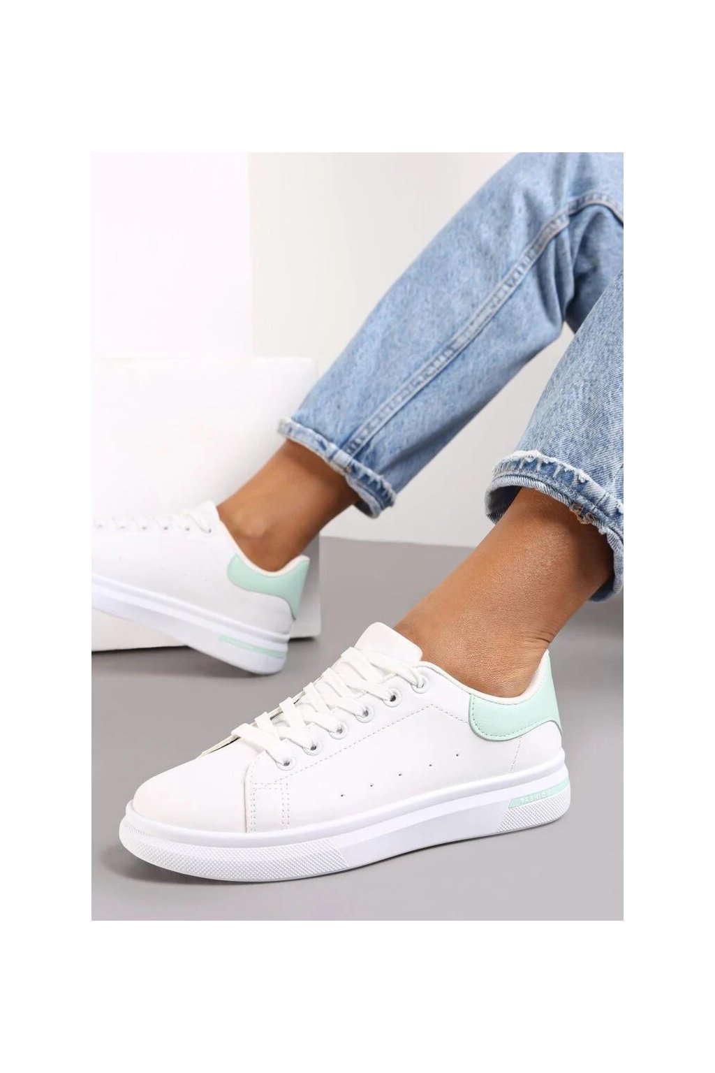Bielo-mätové dámske tenisky z eko kože na plochej podrážke, kód produktu TA-504 AQUA