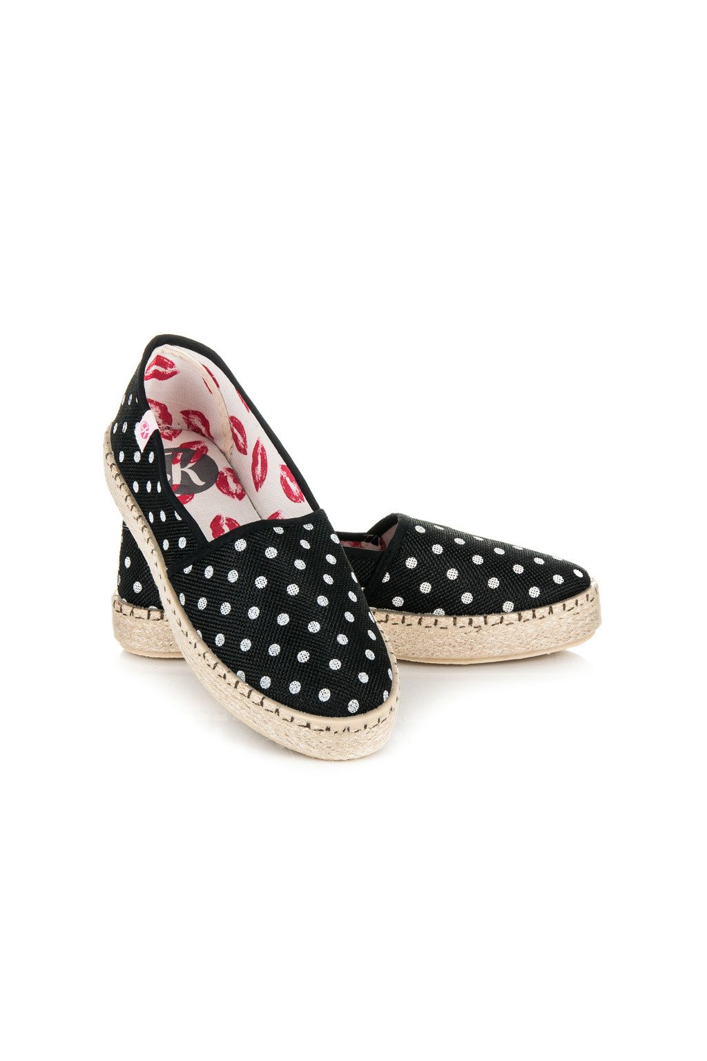 Bodkované dámske letné espadrilky s guličkami na plnej špičke a plnej päte, s platformou 2cm, na vsúvanie, kód produktu K1620004NE