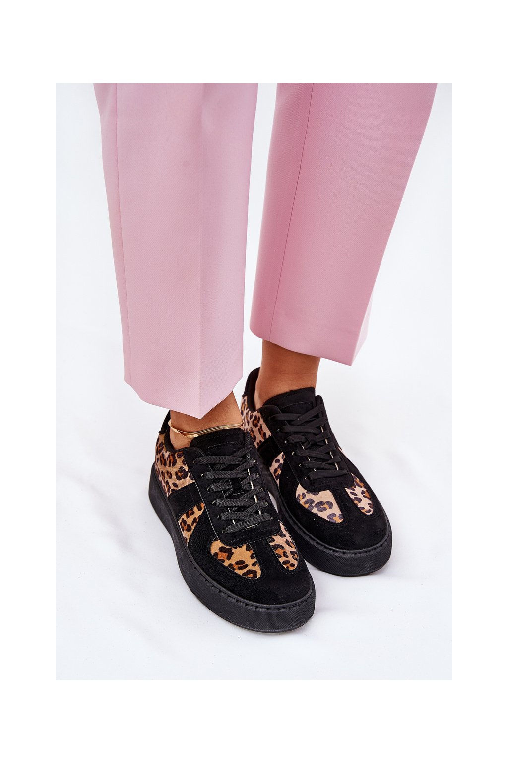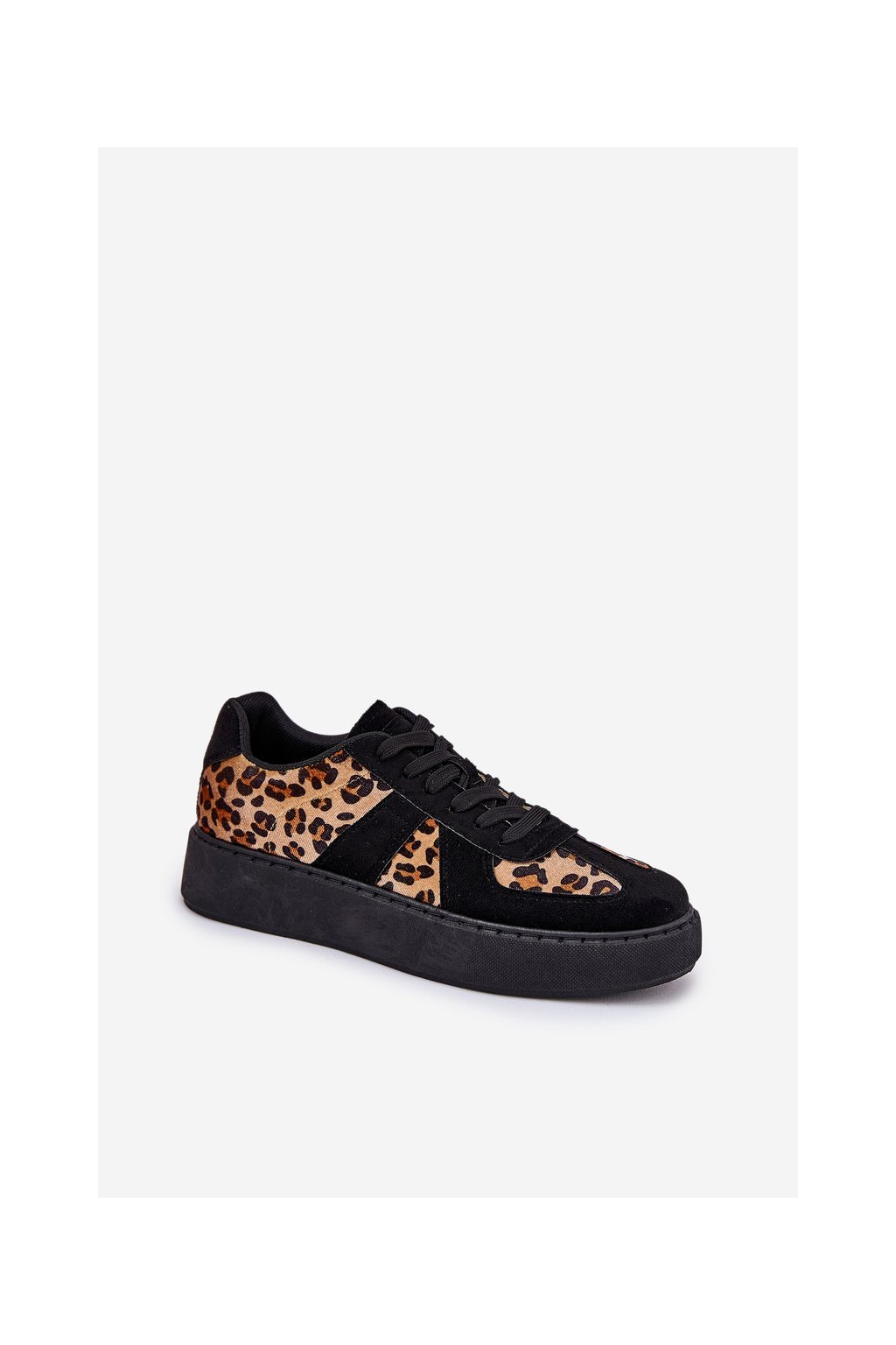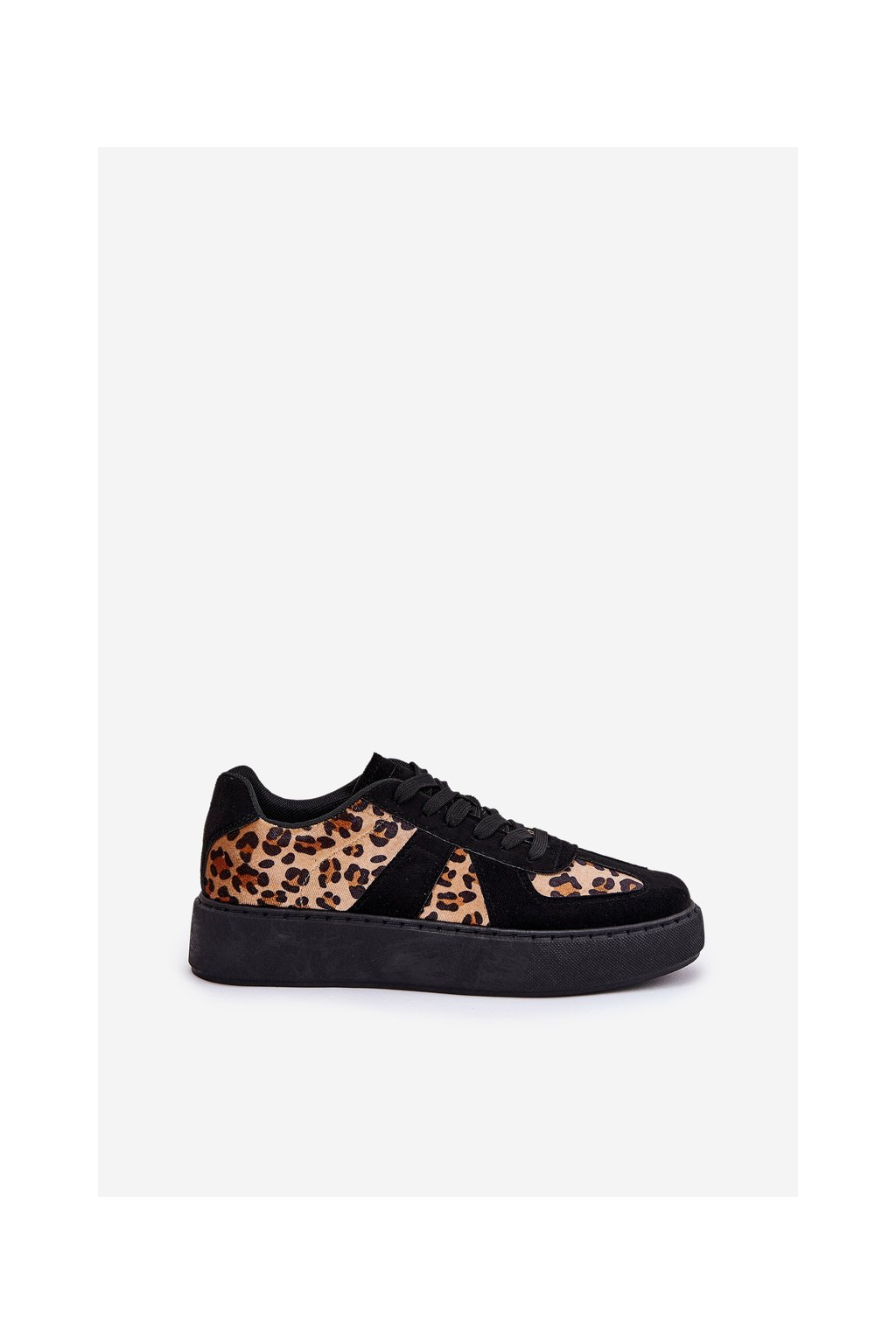 Čierne dámske leopardie tenisky na platforme s viazaním, textil a eko koža, kód produktu NN622 BLACK