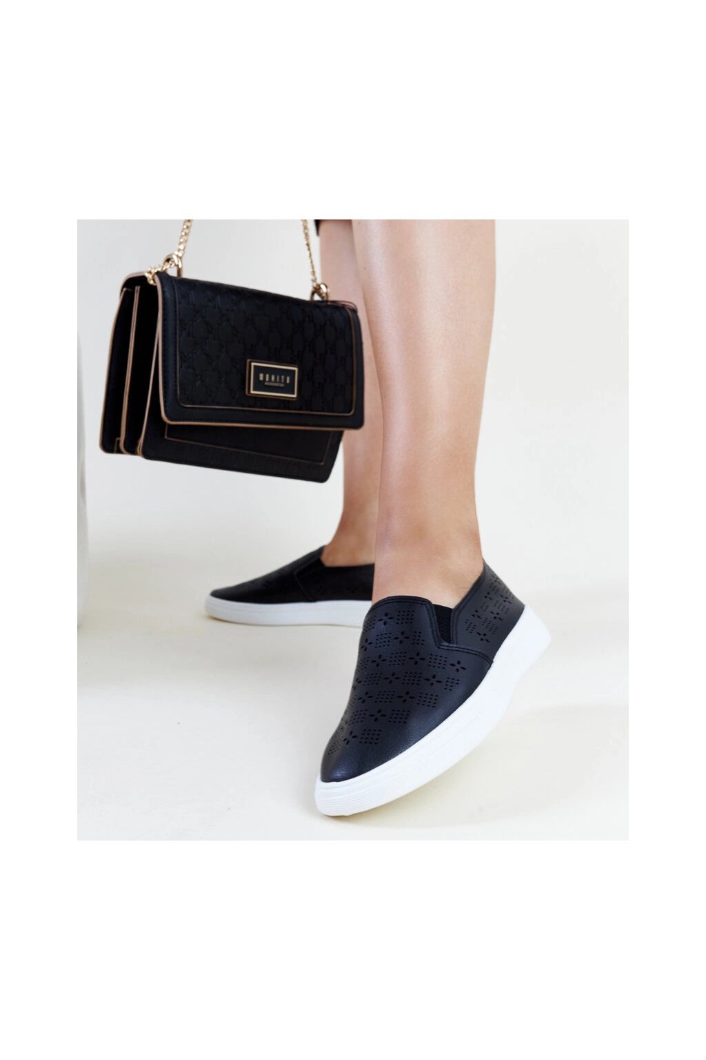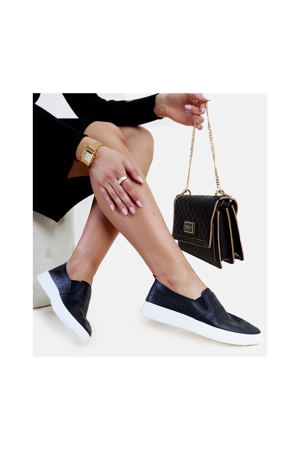 Čierne dámske tenisky perforované, kód produktu TQ2401 BLACK