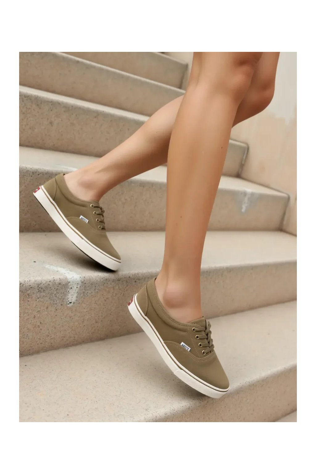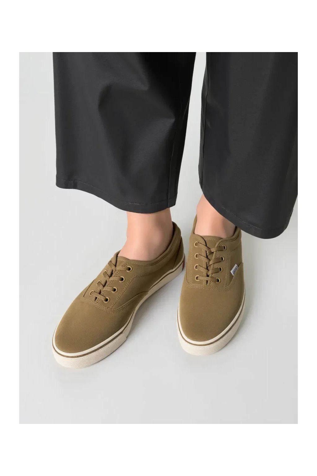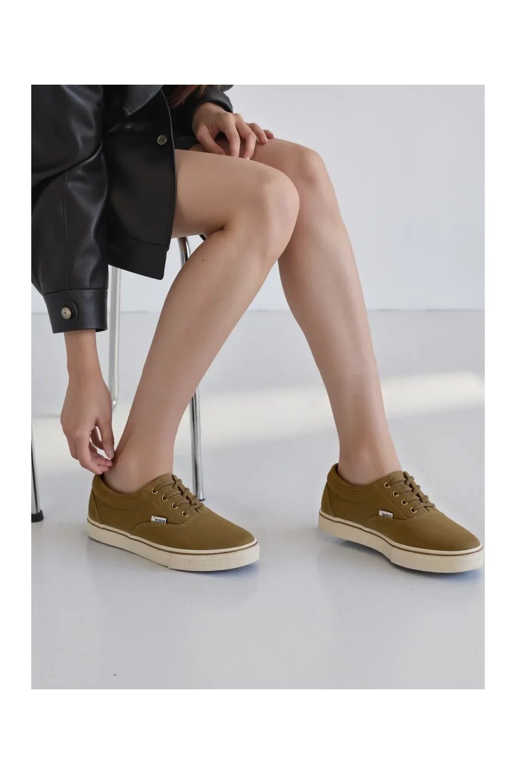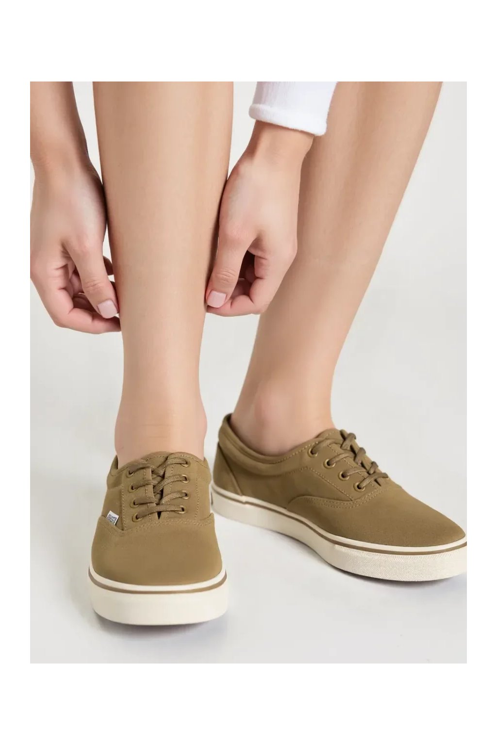 Béžové dámske tenisky z eko semišu na šnúrovanie, AW0223-77