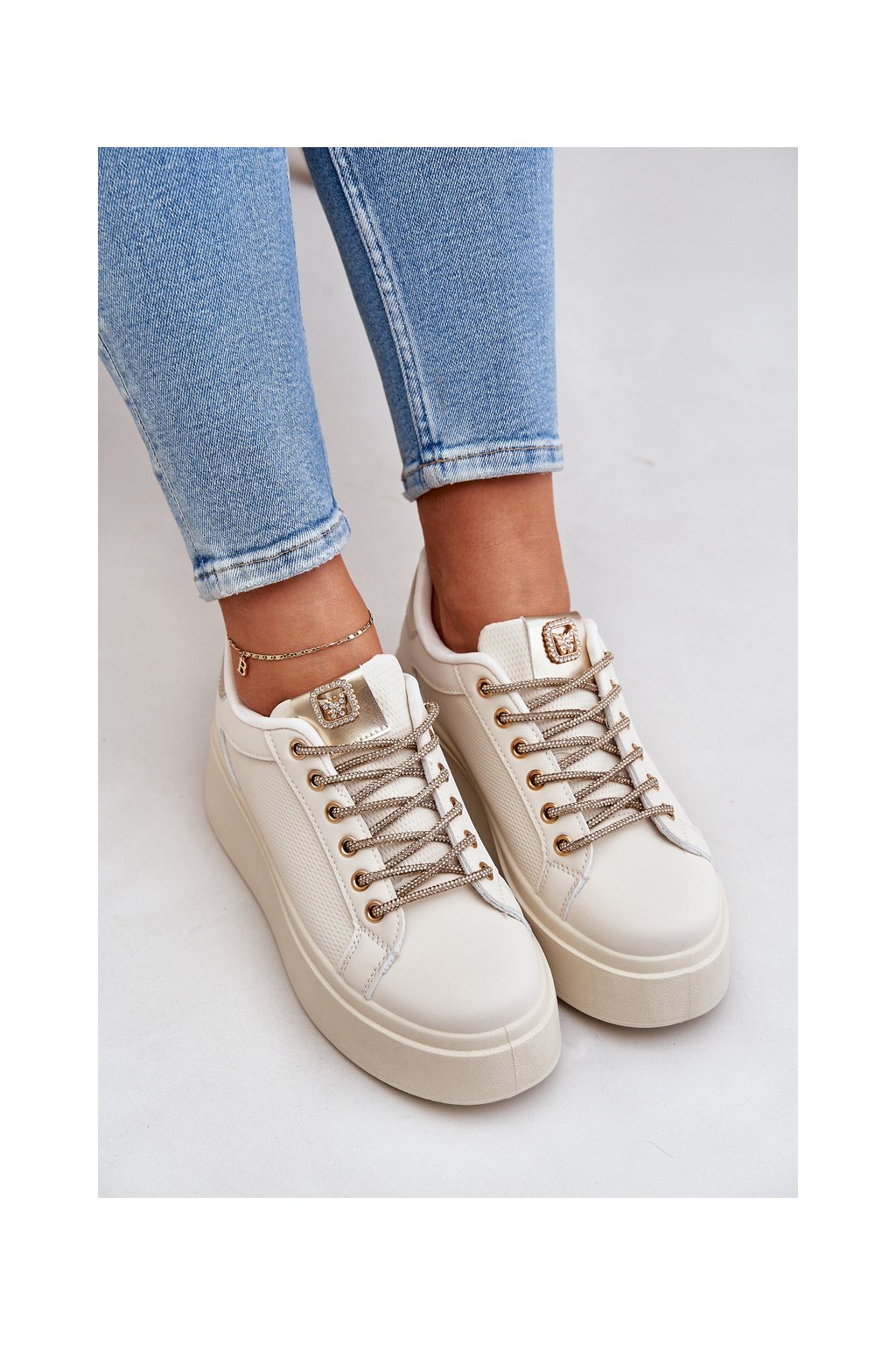 Dámske béžové tenisky na plnej platforme z eko kože NB751 BEIGE
