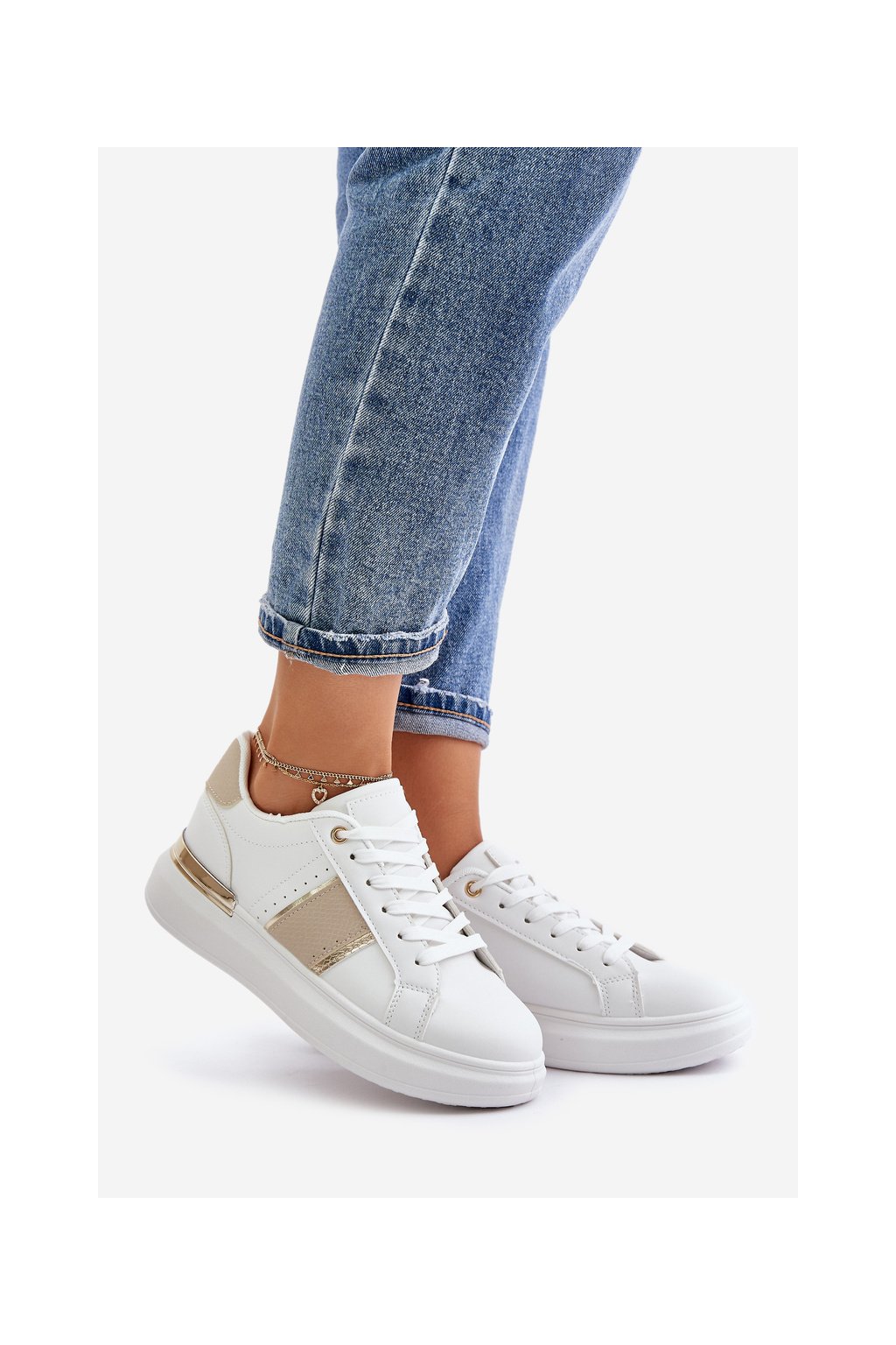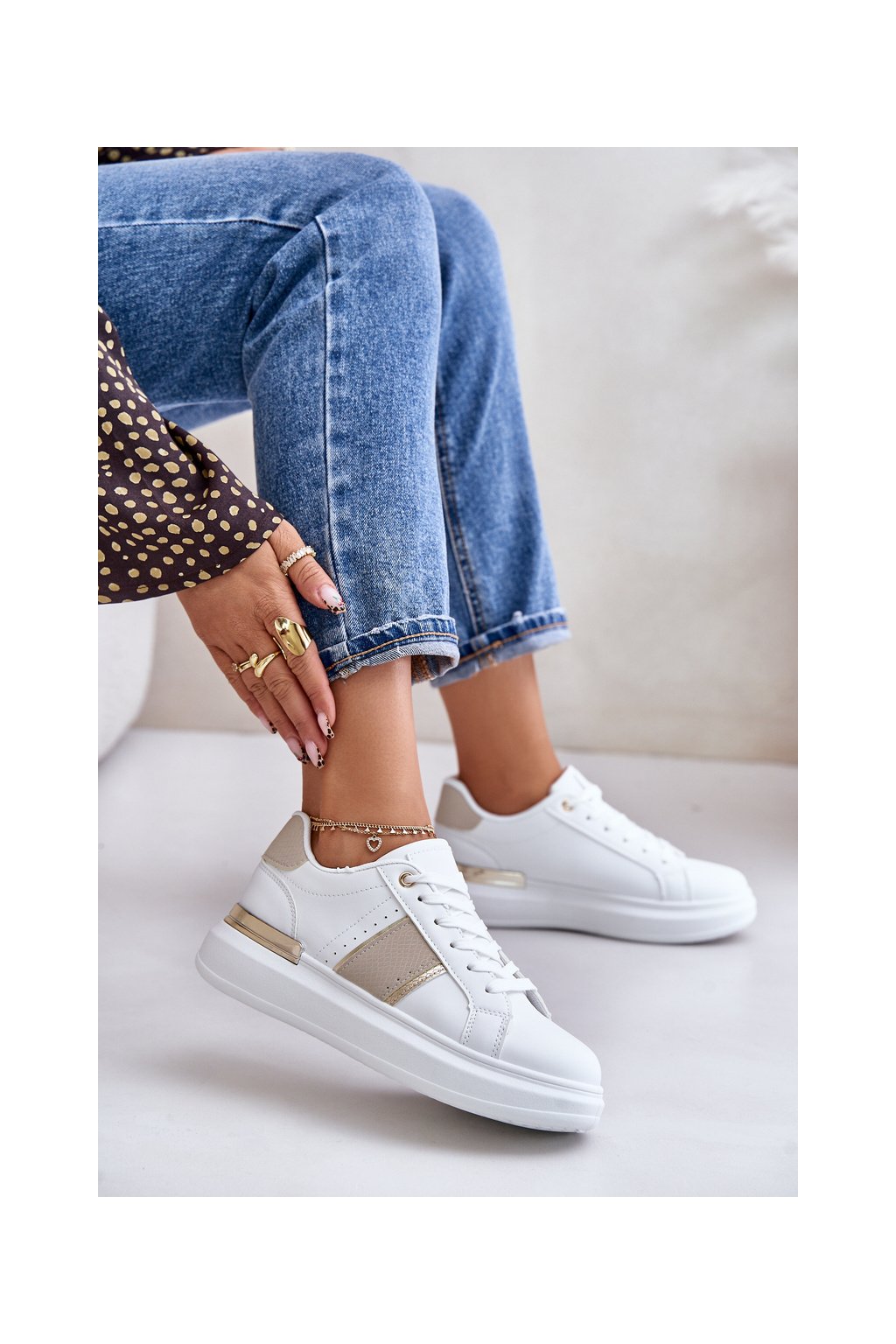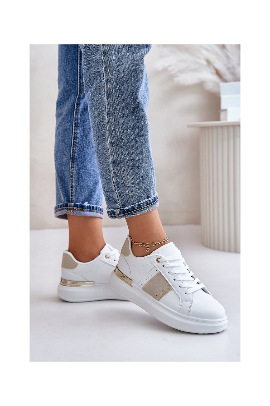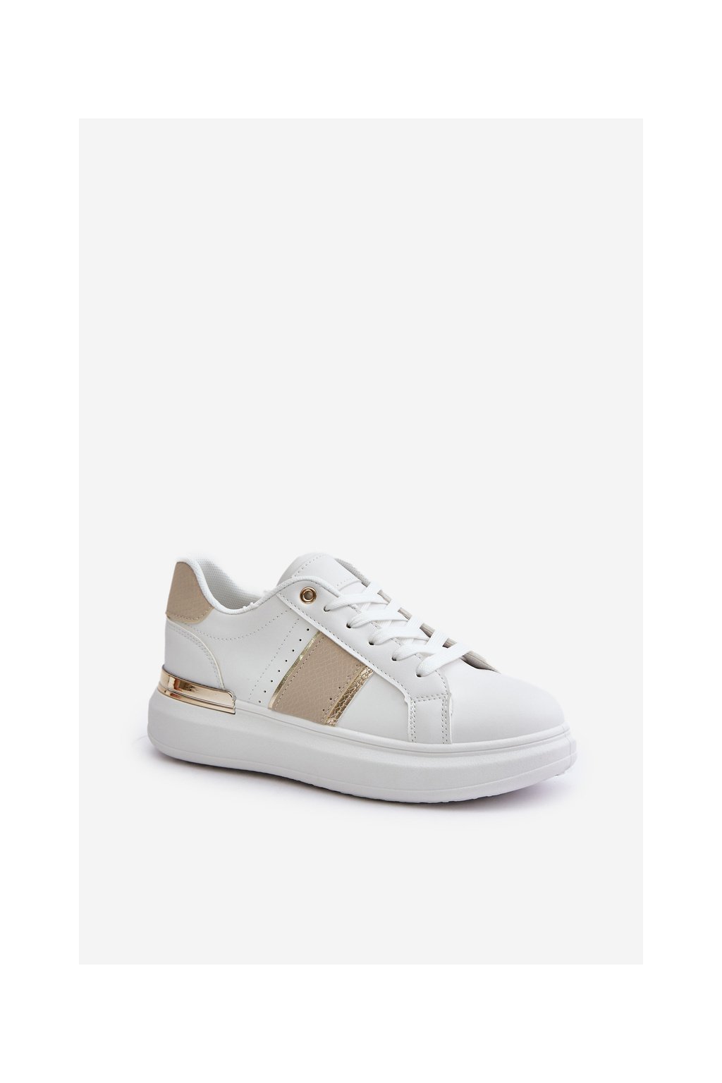 Dámske béžové tenisky z eko kože na plochej podrážke R11 BEIGE