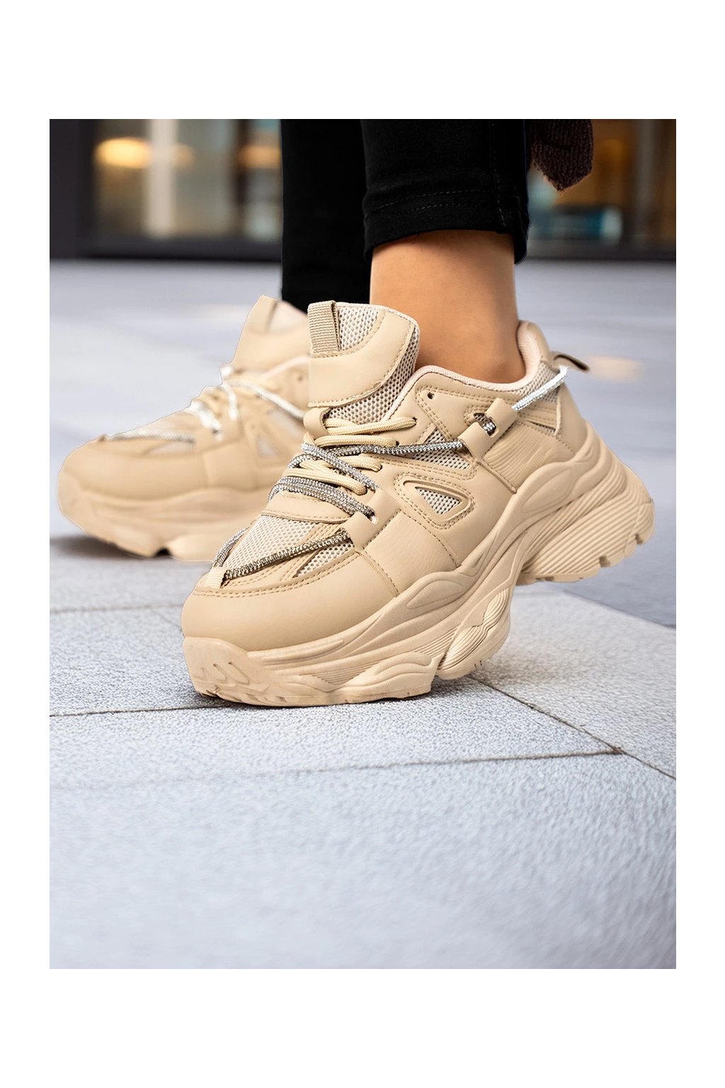 Najmódnejšia pevná a ultramoderná 5 cm vysoká podrážka tejto sezóny sa dokonale hodí k rôznym doplnkom - lesklým šnúrkam.... Presvedčte sa sami, ako dodajú vášmu stylingu charakter : ) Vnútro topánok je podšité látkou. Vonkajší materiál - ekologická koža + látka.