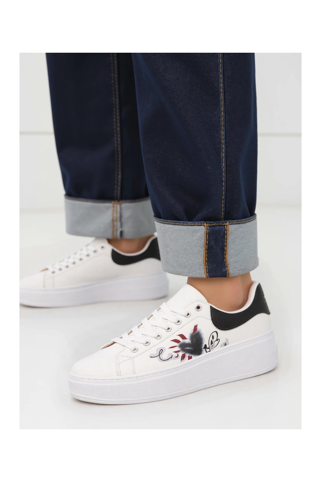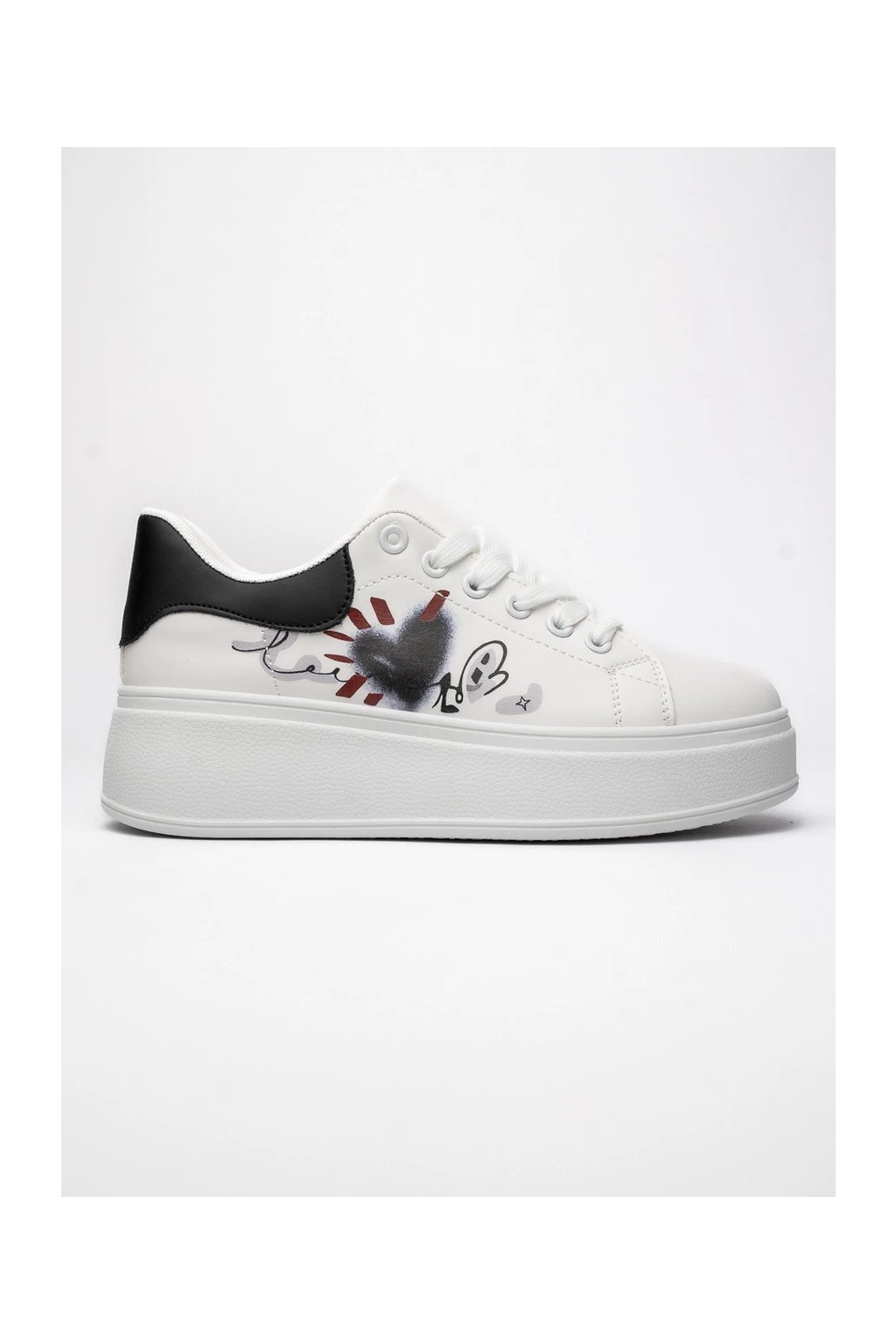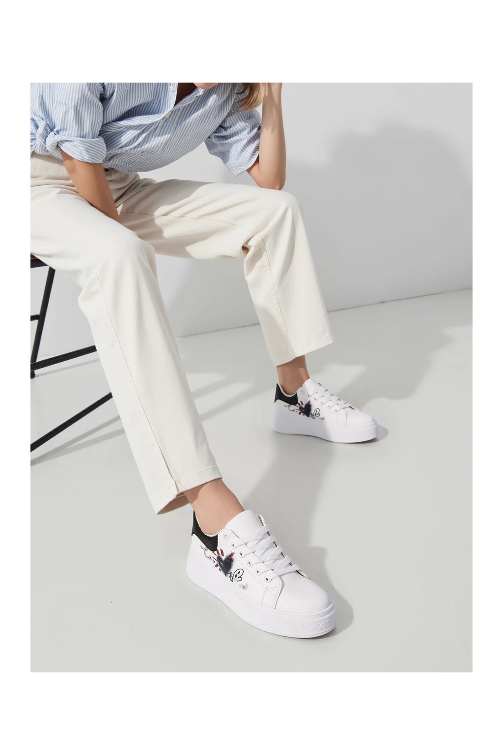 Biele dámske mokasíny s čiernym detailom a potlačou, eko koža, kód GG690