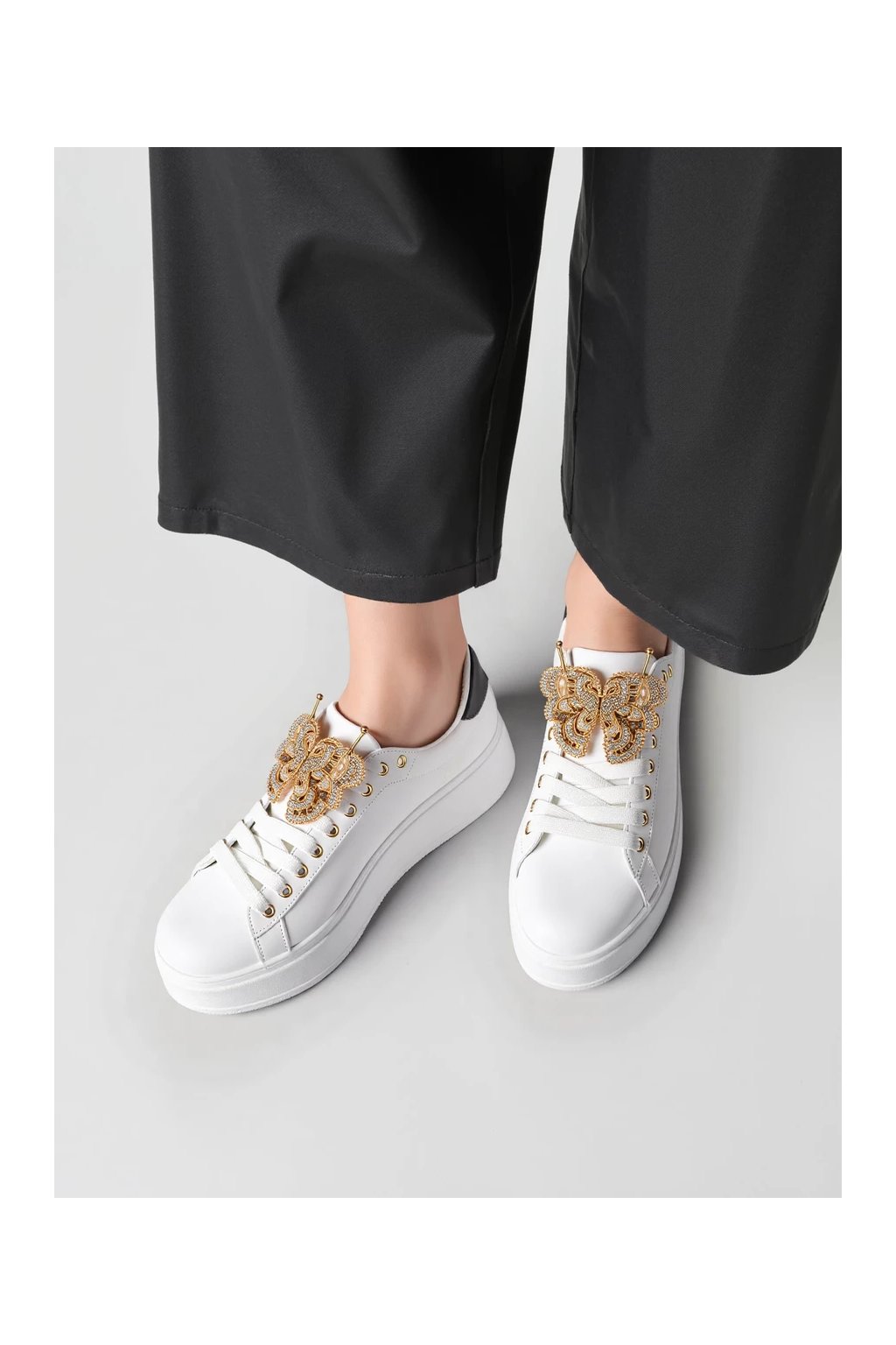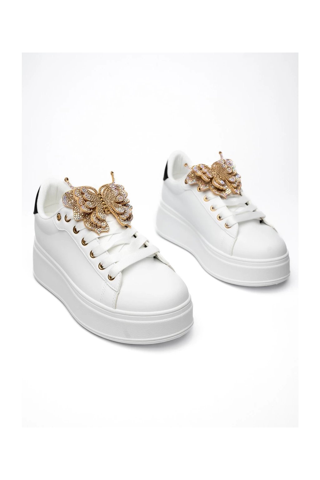 Biele dámske mokasíny z eko kože s motýlikom, kód YY-23