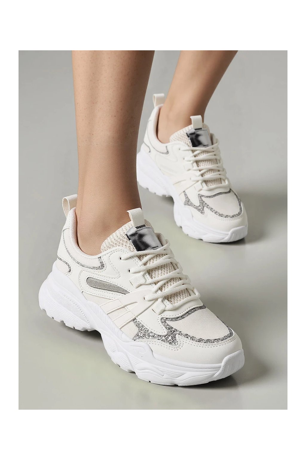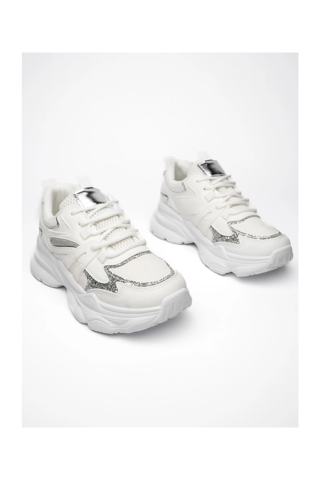 Biele dámske mokasíny z textilu so striebornými akcentmi, 1W-N11