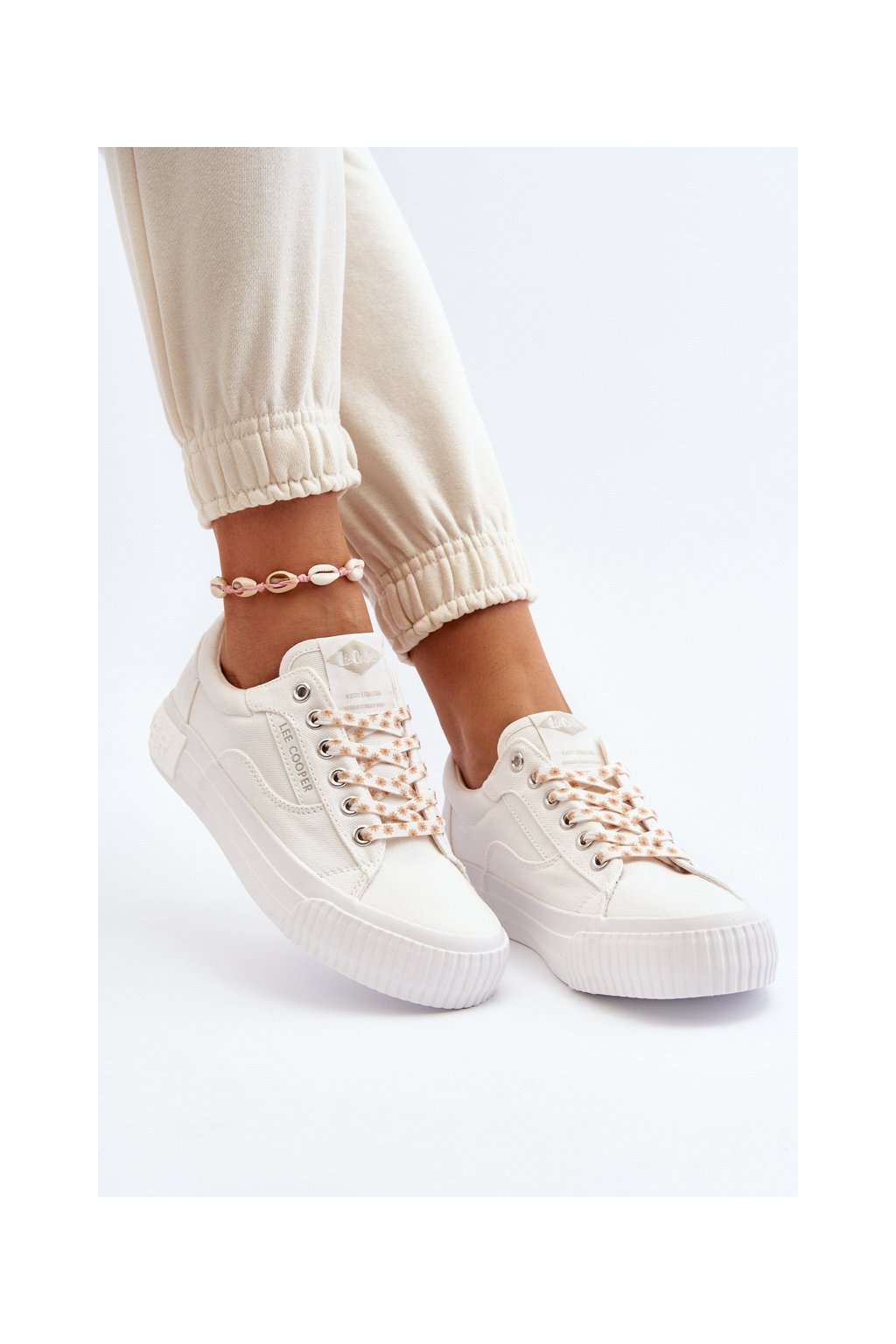 Dámske biele tenisky Lee Cooper na platforme z textilu, kód produktu LCW-24-31-2170L WHITE