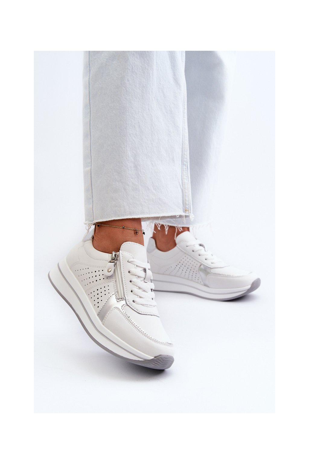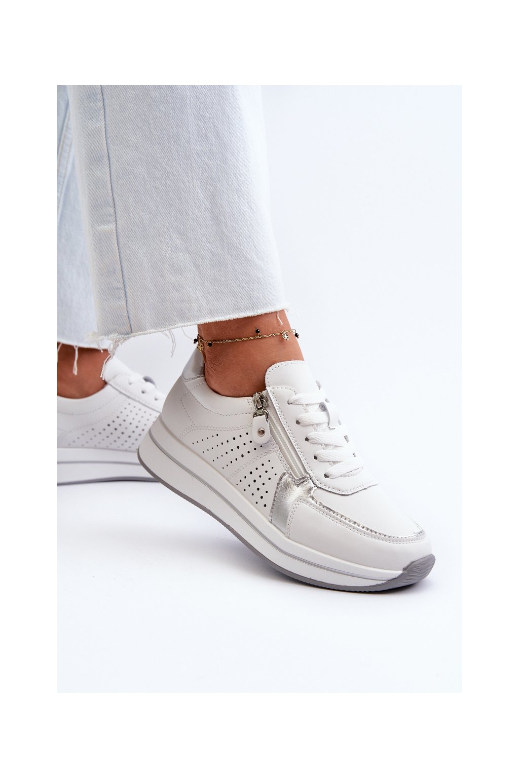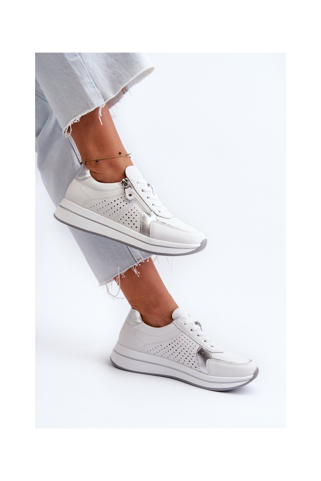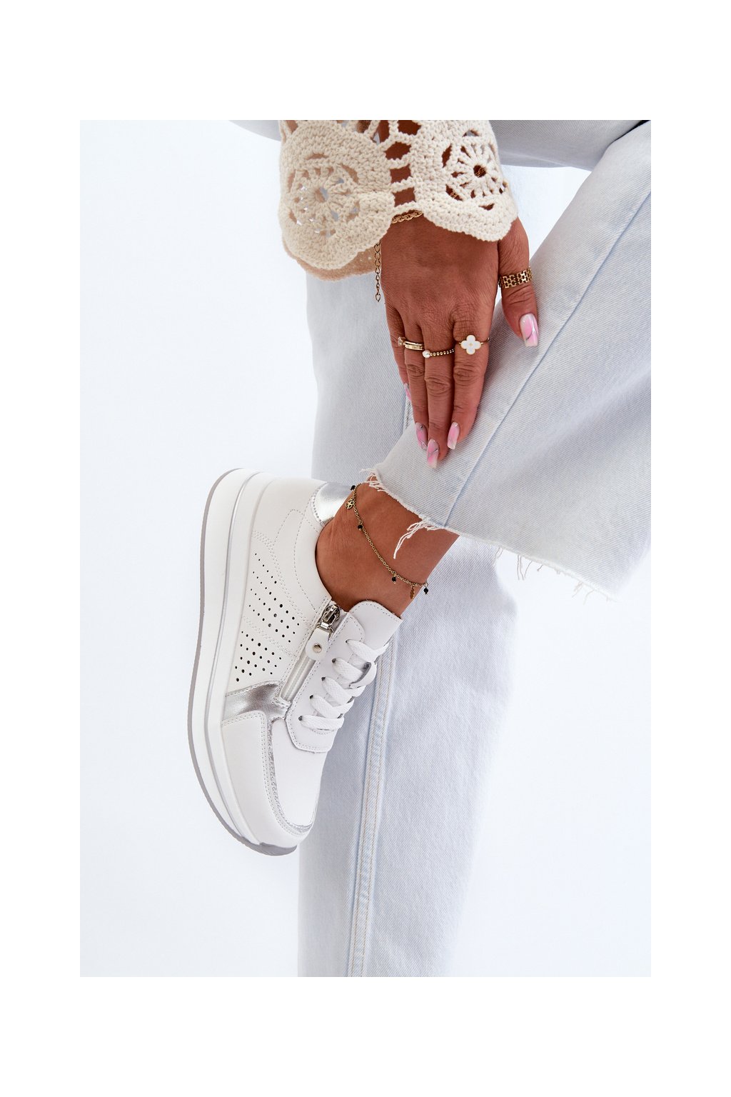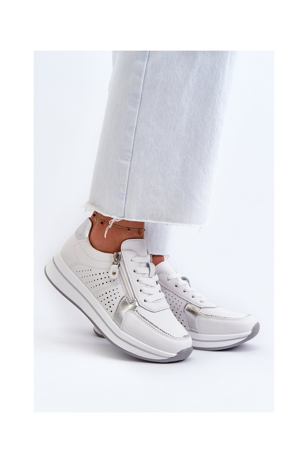 Dámske kožené tenisky na platforme biele ligustr / 24SP08-6700 WHITE