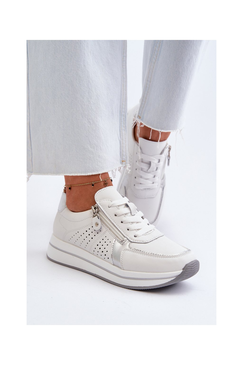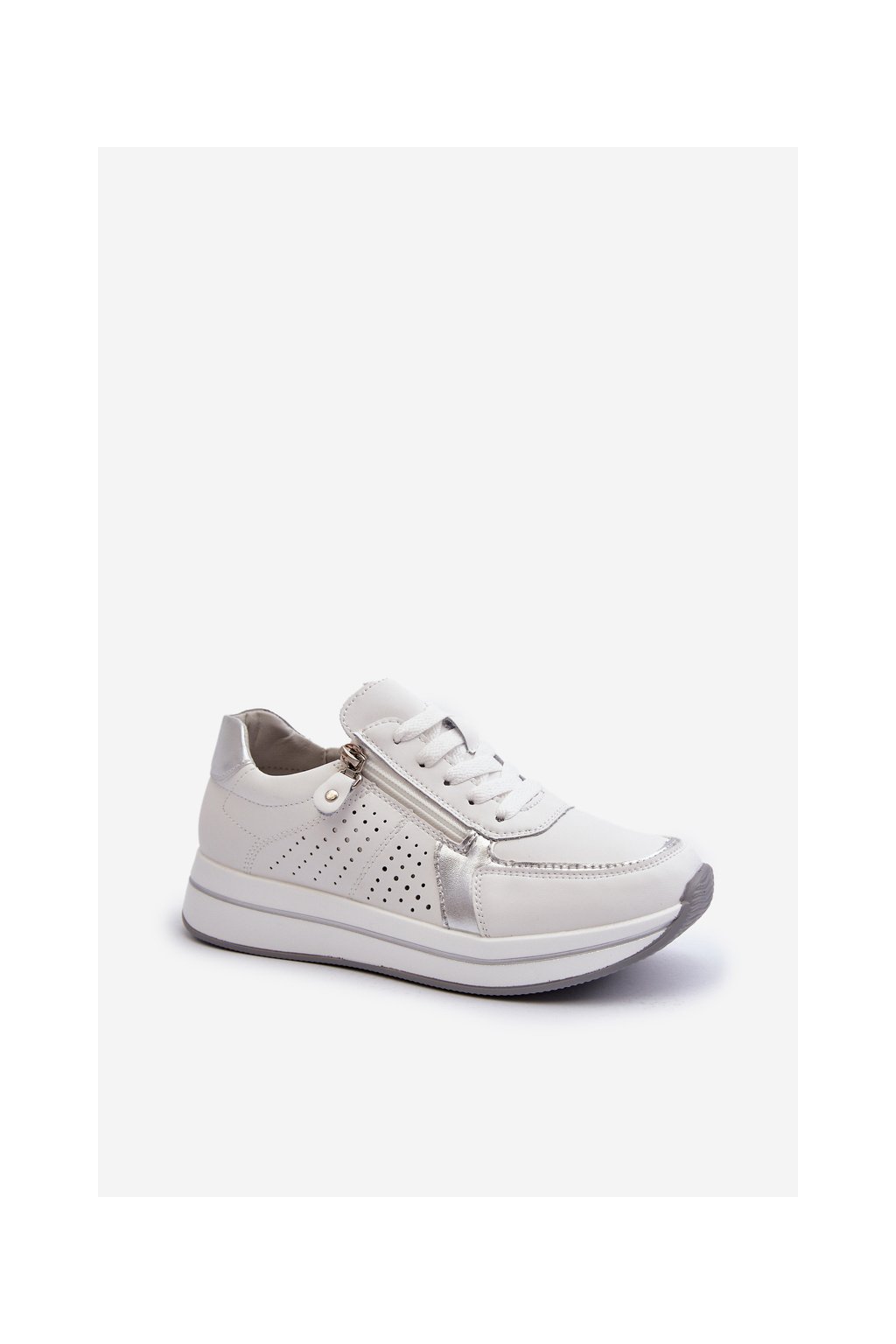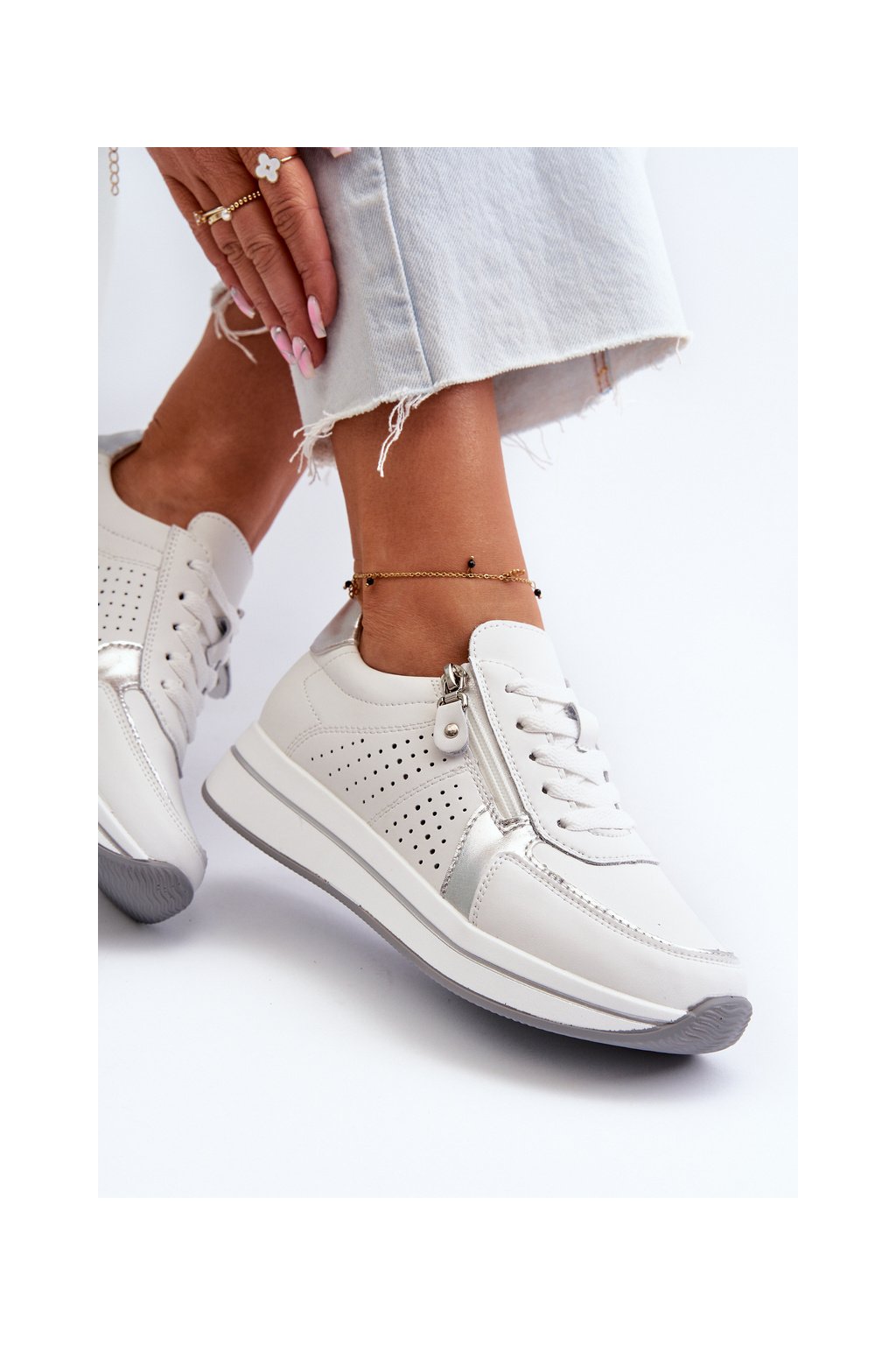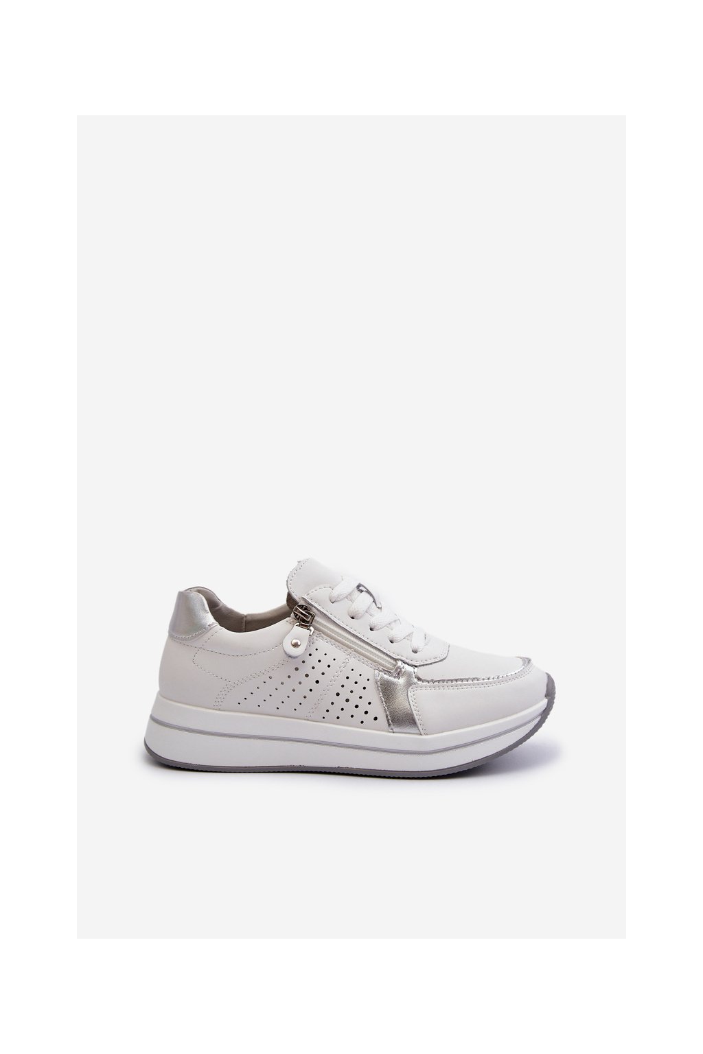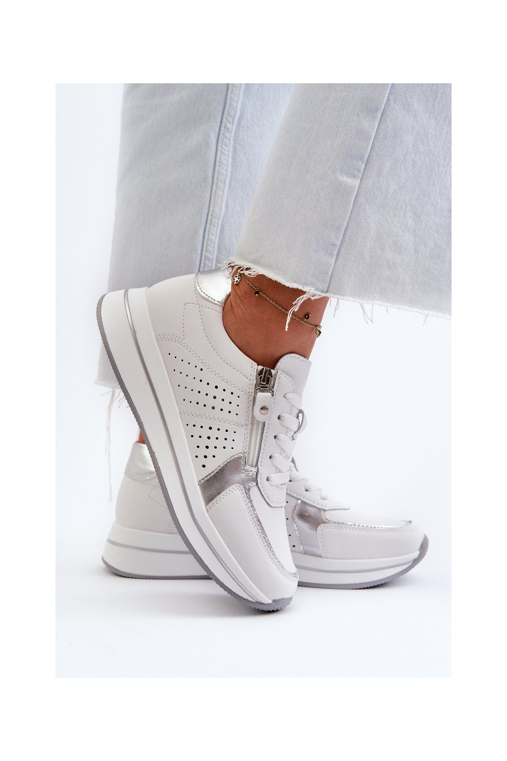 Dámske kožené tenisky na platforme biele ligustr / 24SP08-6700 WHITE