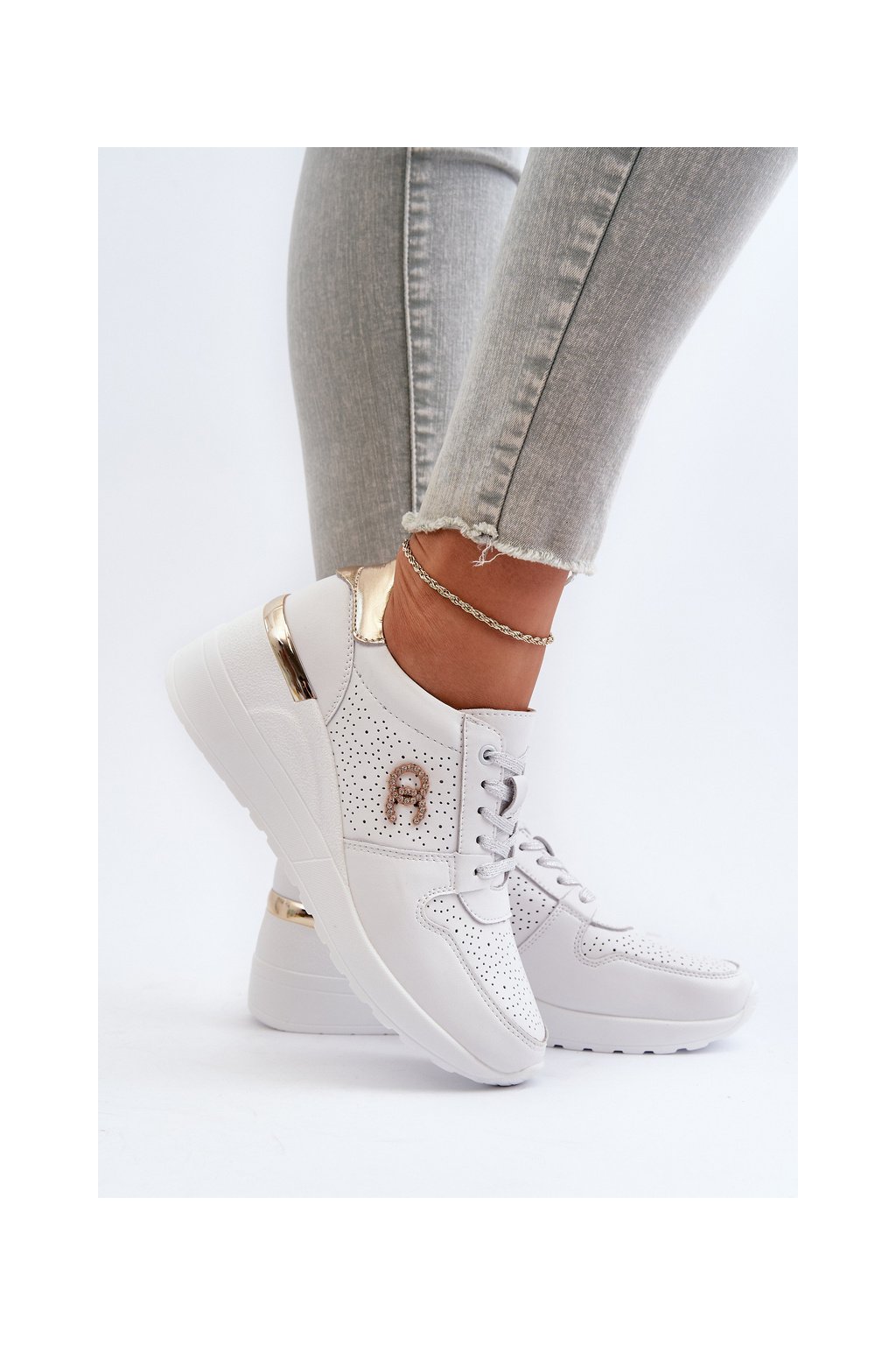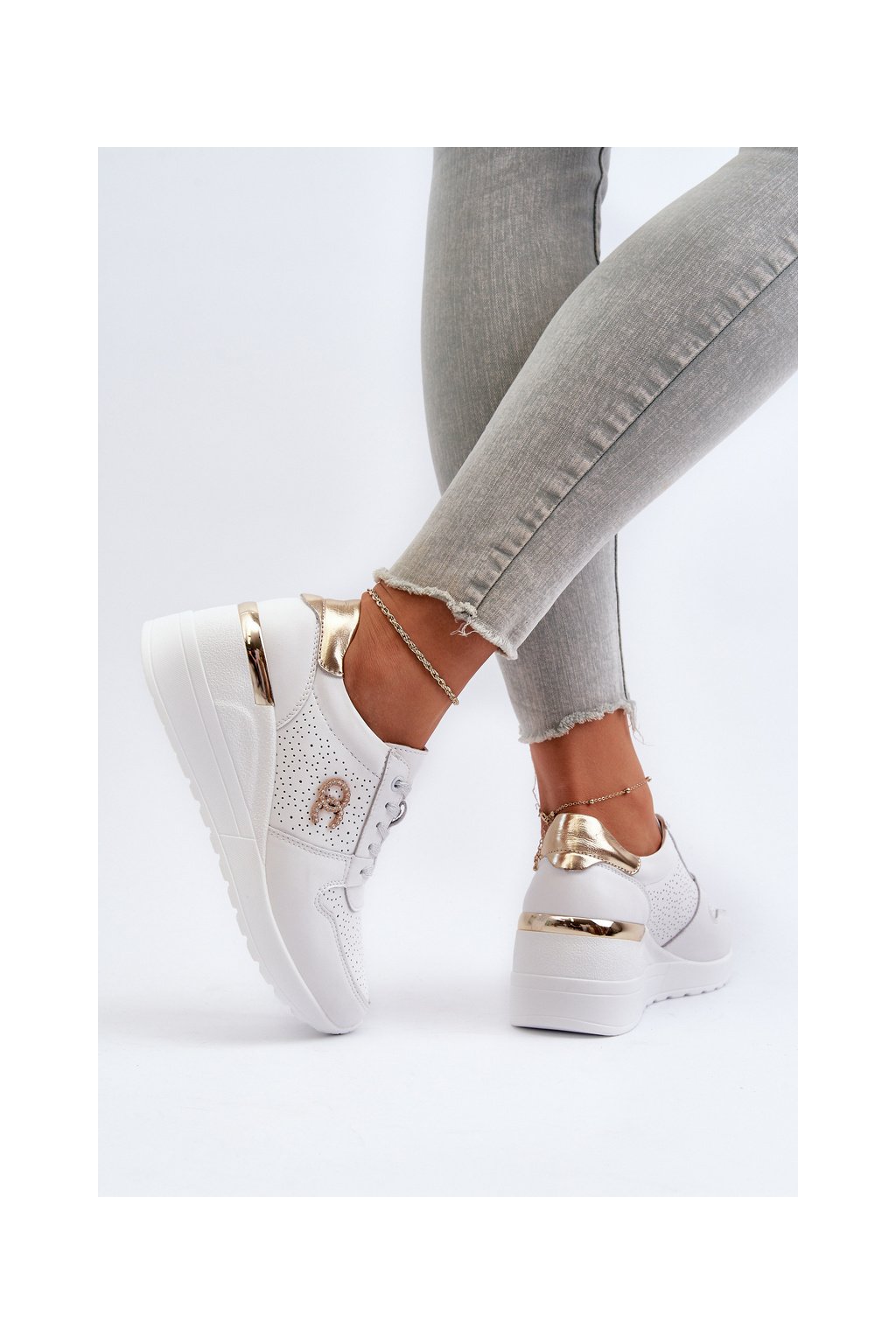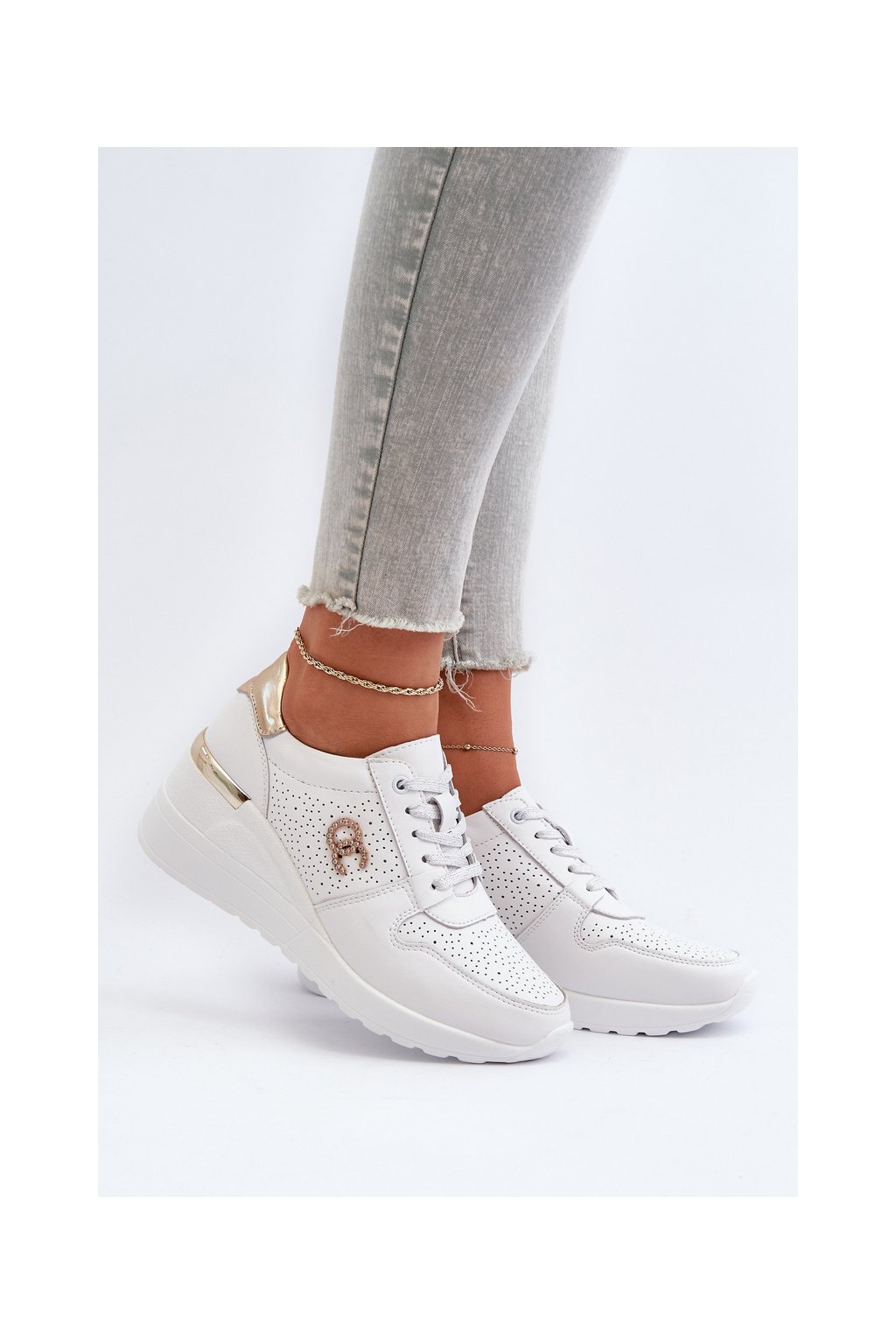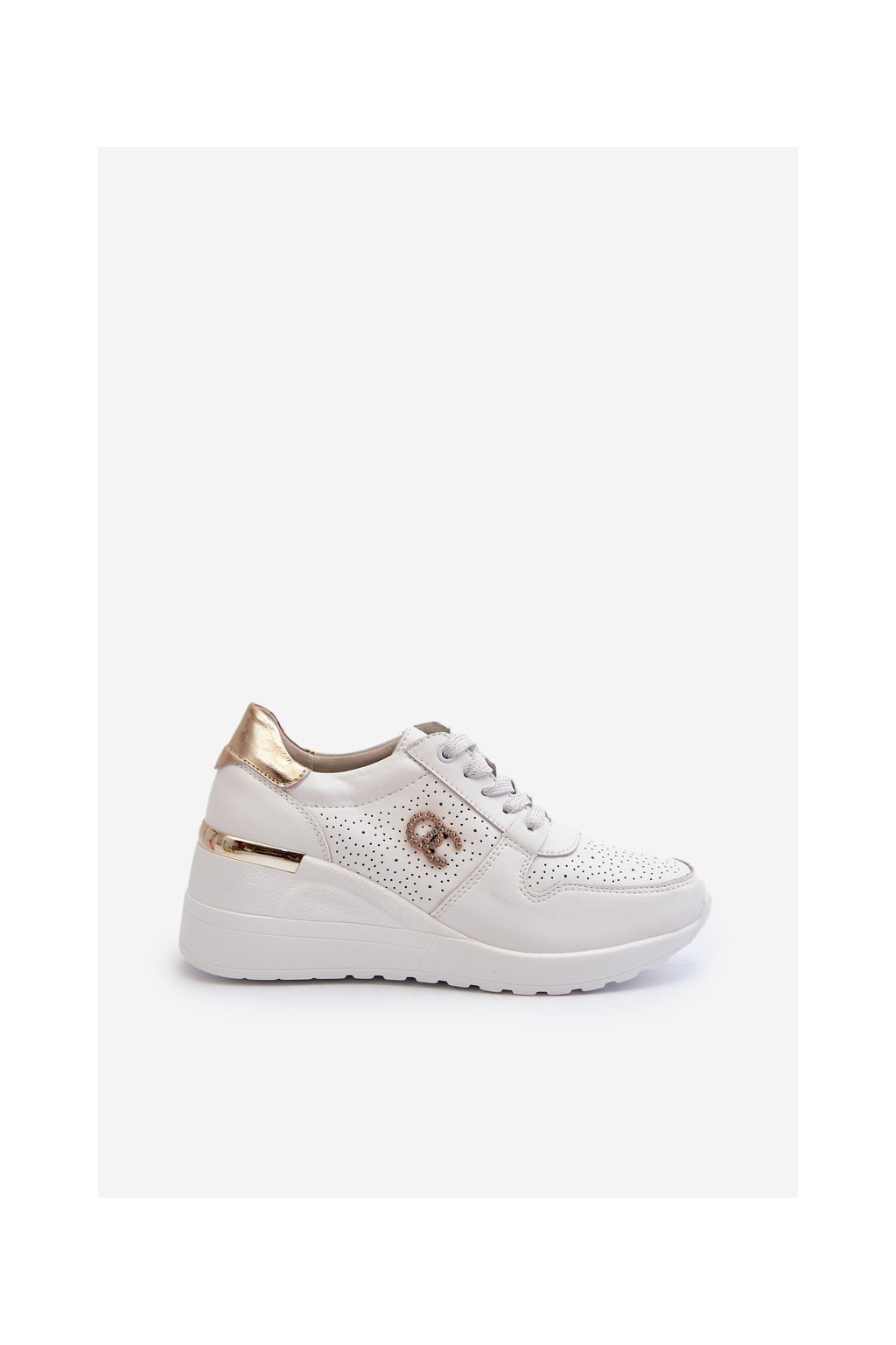 Biele dámske kožené tenisky na platforme s prírodnou koženou vložkou, kód produktu LR810 WHT/GOLD