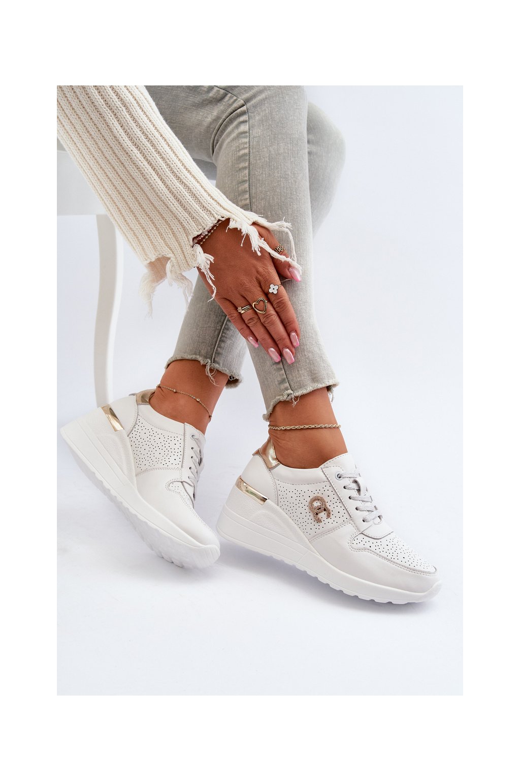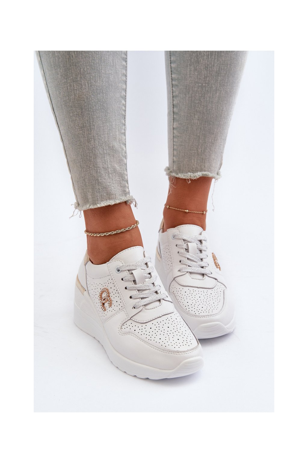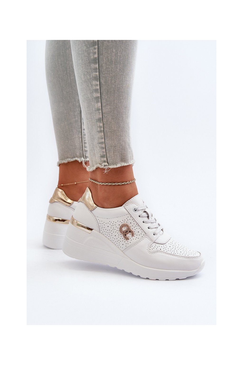 Biele dámske kožené tenisky na platforme s prírodnou koženou vložkou, kód produktu LR810 WHT/GOLD