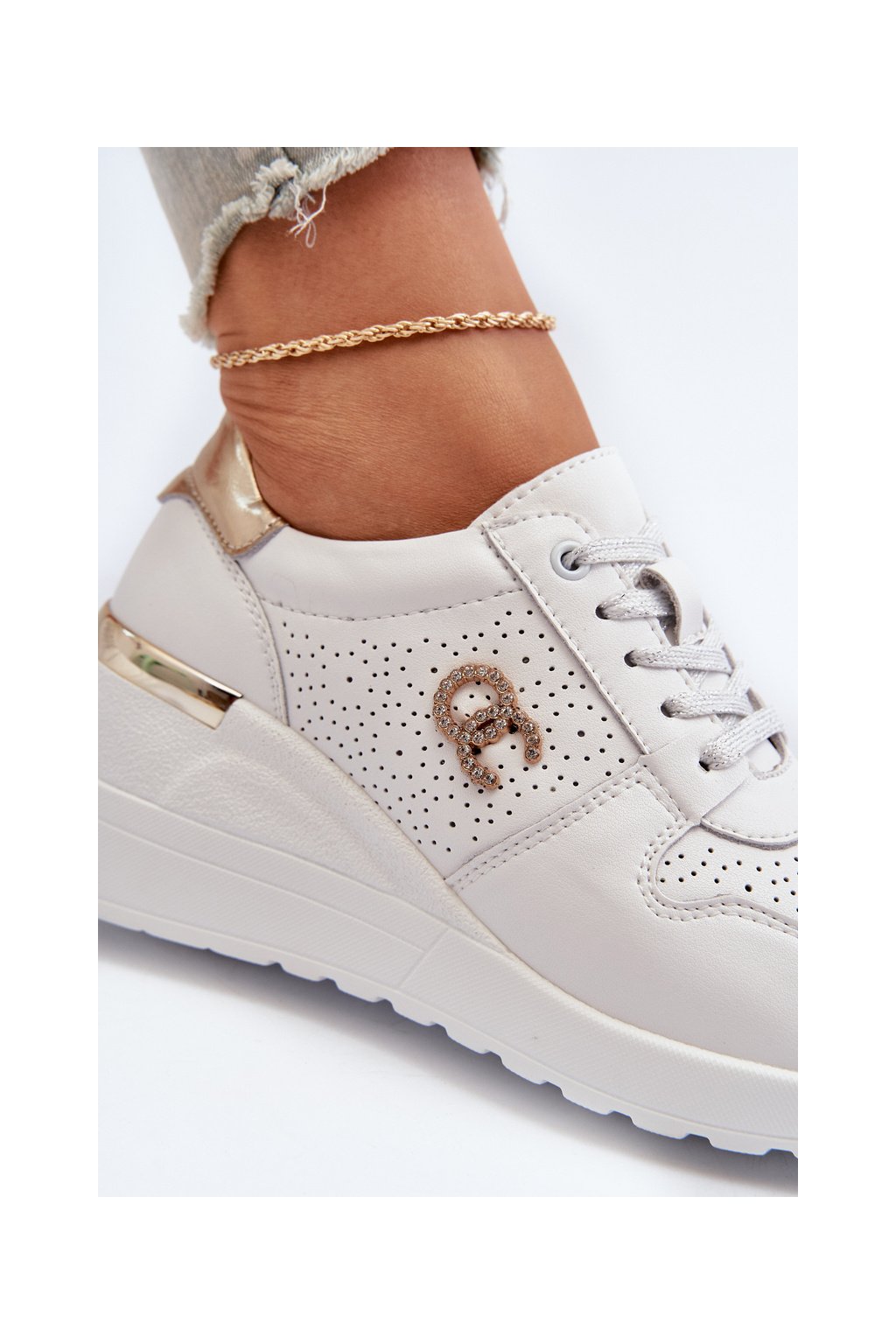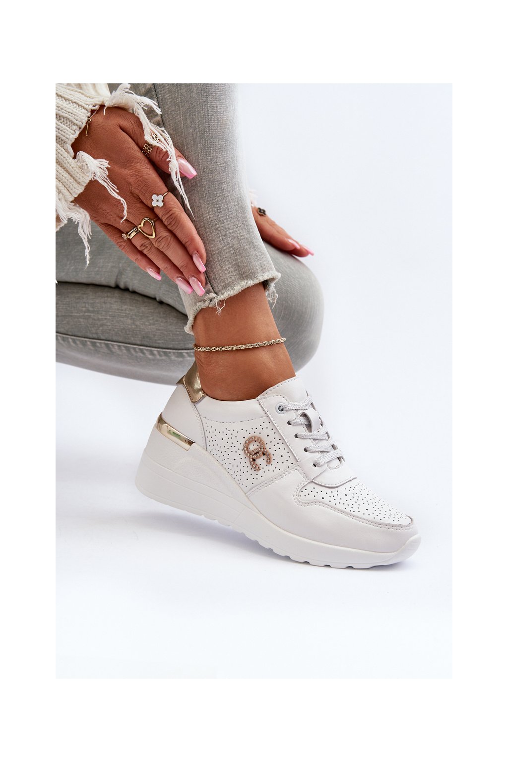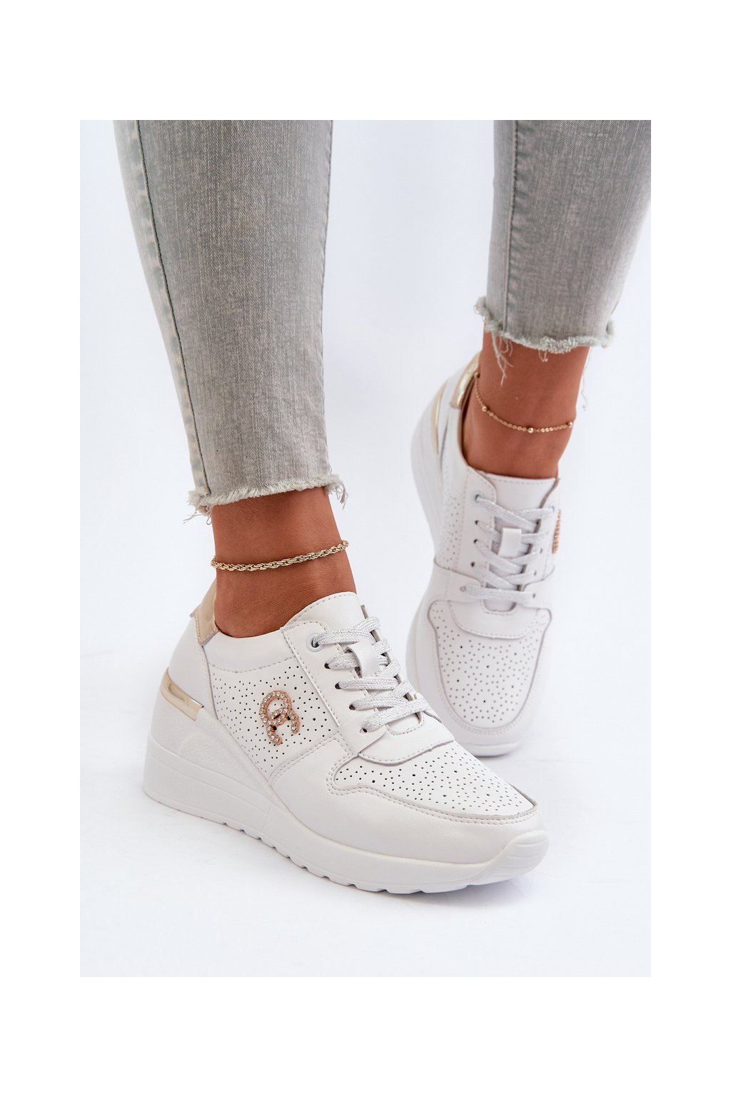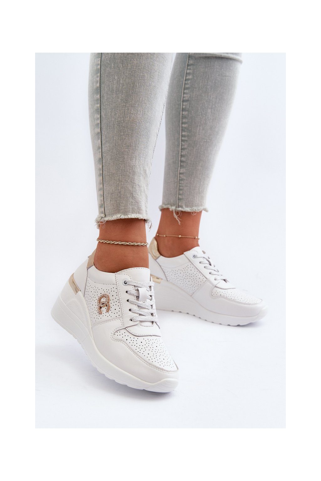 Biele dámske kožené tenisky na platforme s prírodnou koženou vložkou, kód produktu LR810 WHT/GOLD