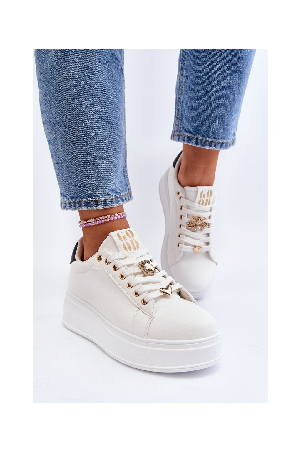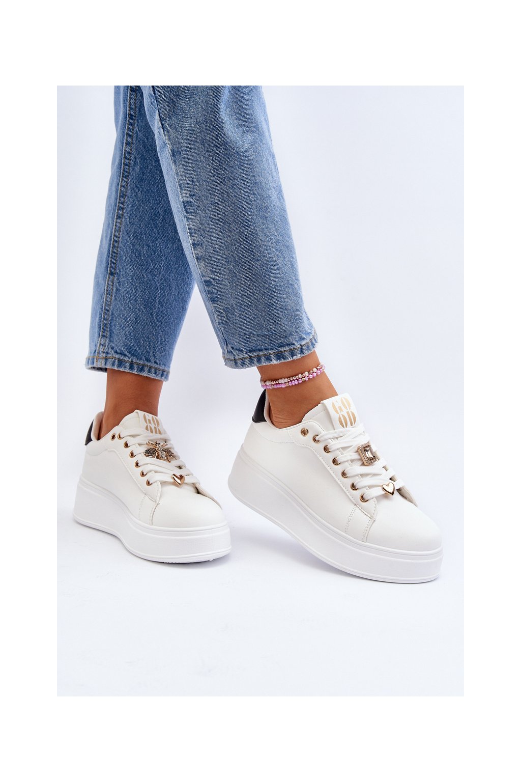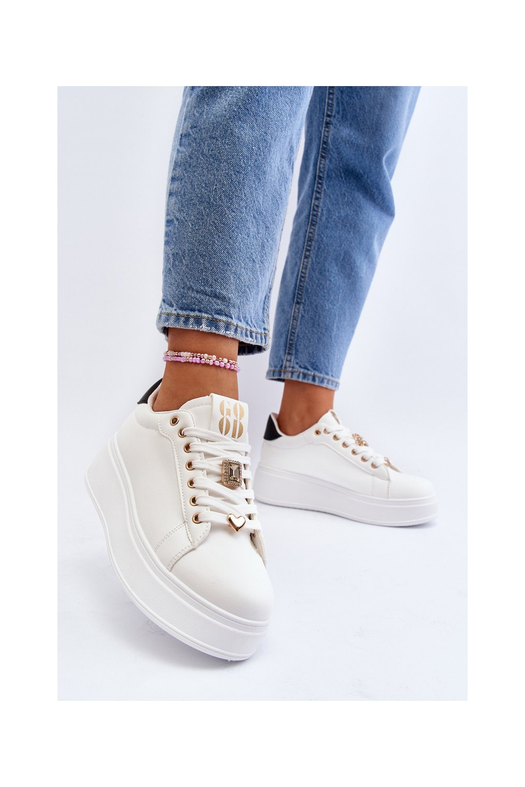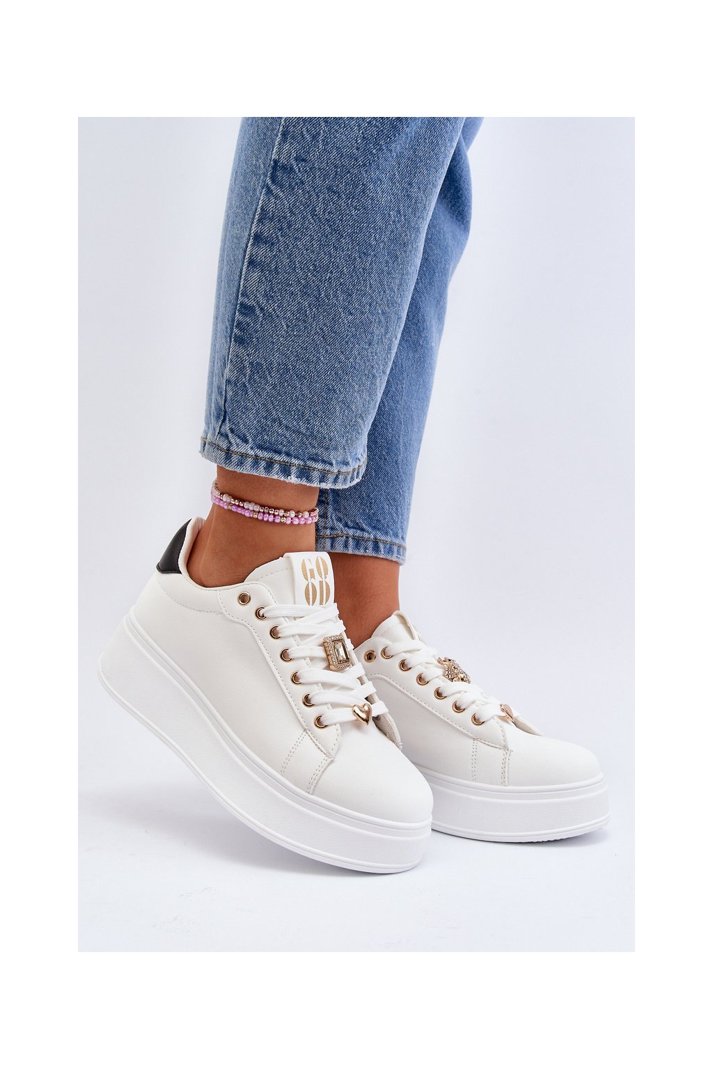 Biele dámske tenisky z eko kože na platforme EV-307 WHT/BL