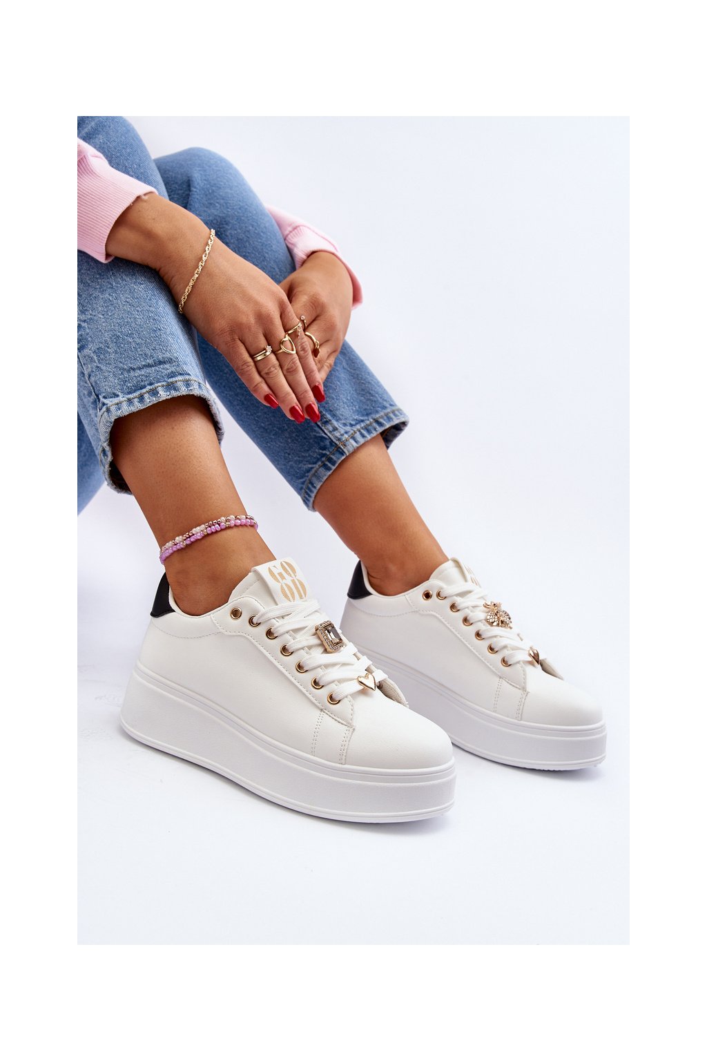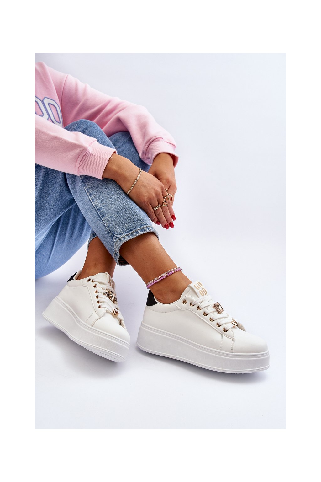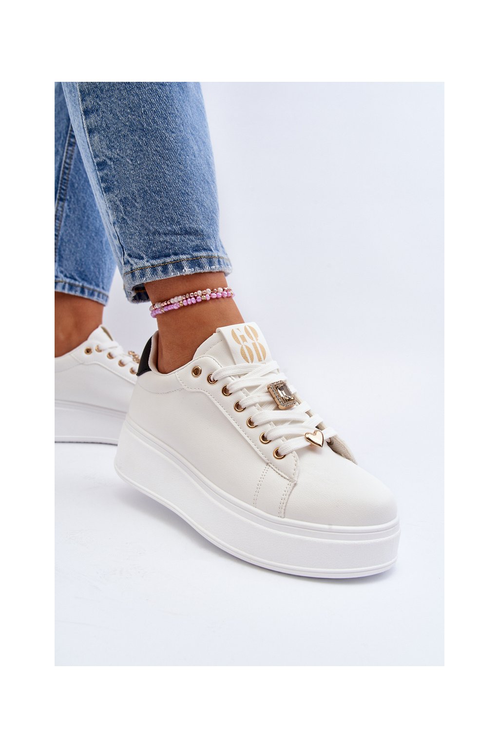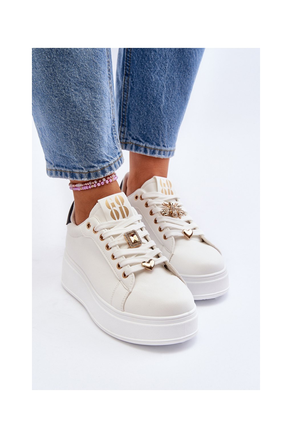Biele dámske tenisky z eko kože na platforme EV-307 WHT/BL