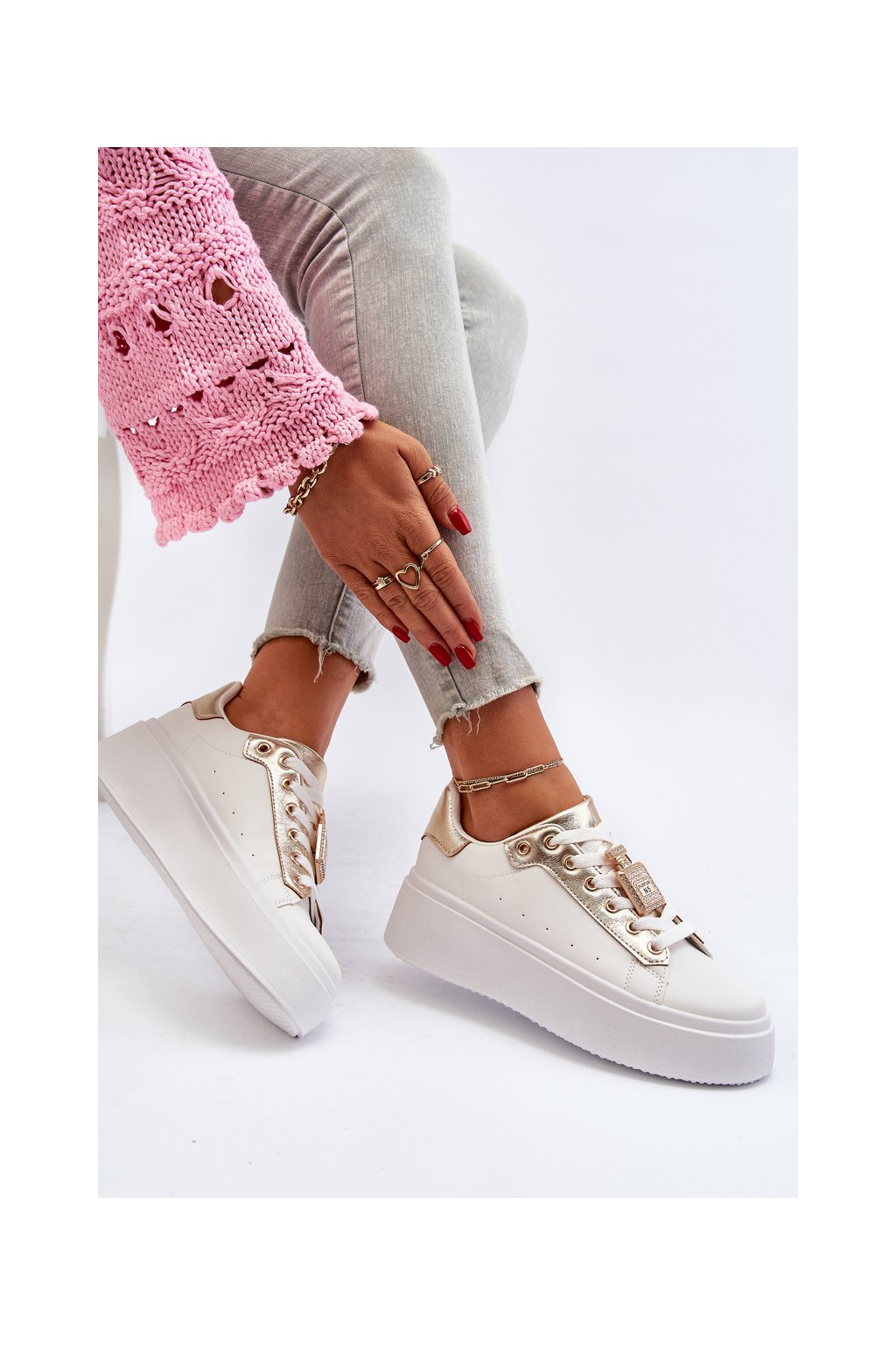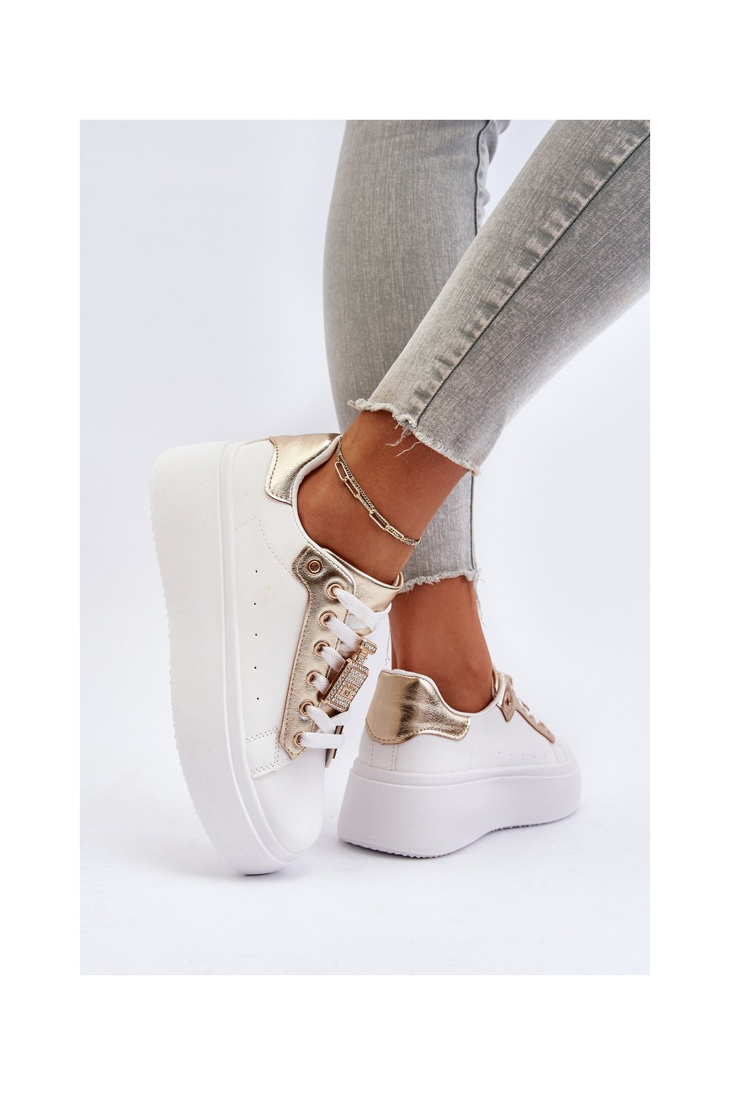 Biele dámske tenisky z eko kože na platforme LA279 GOLD