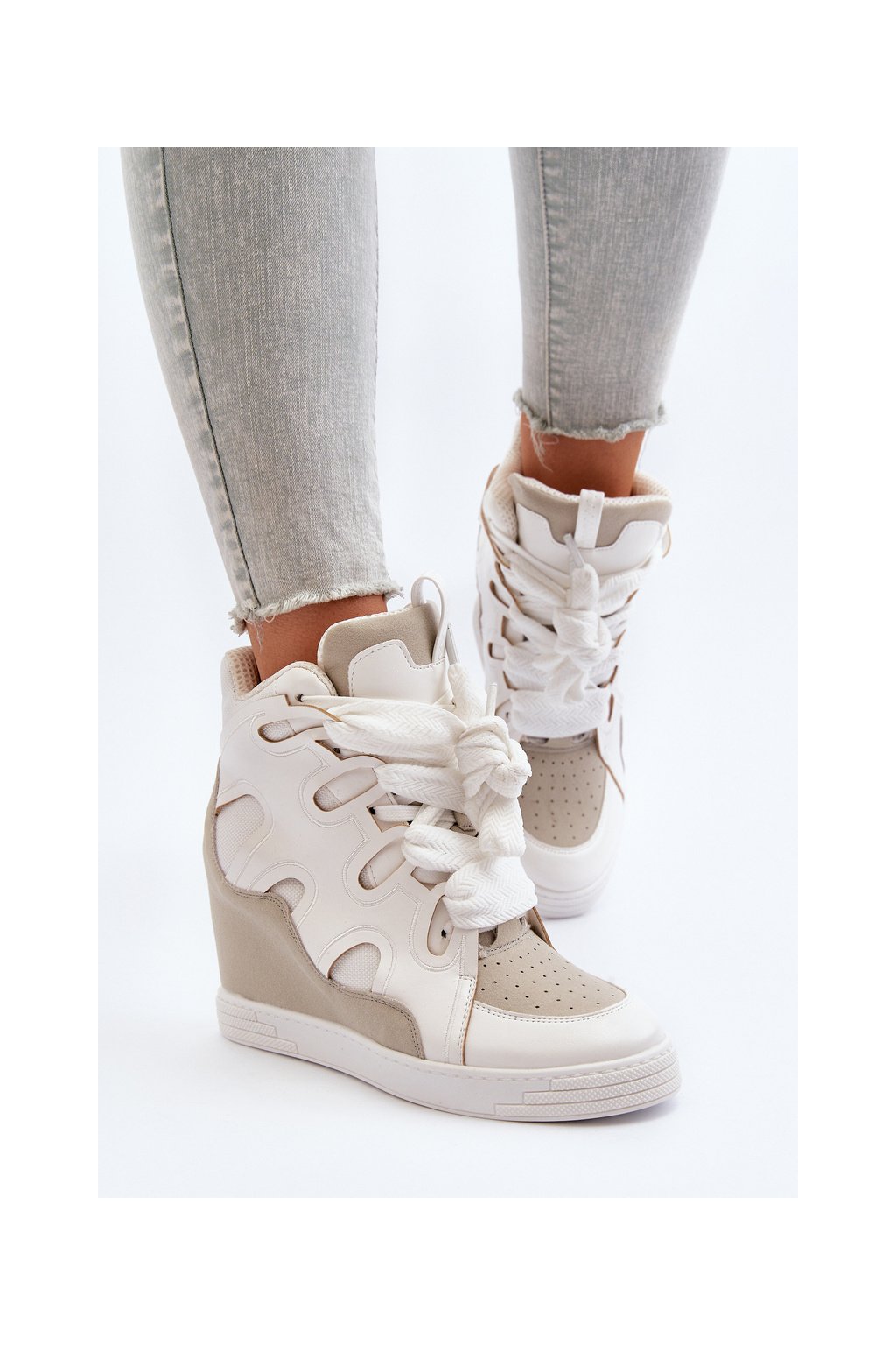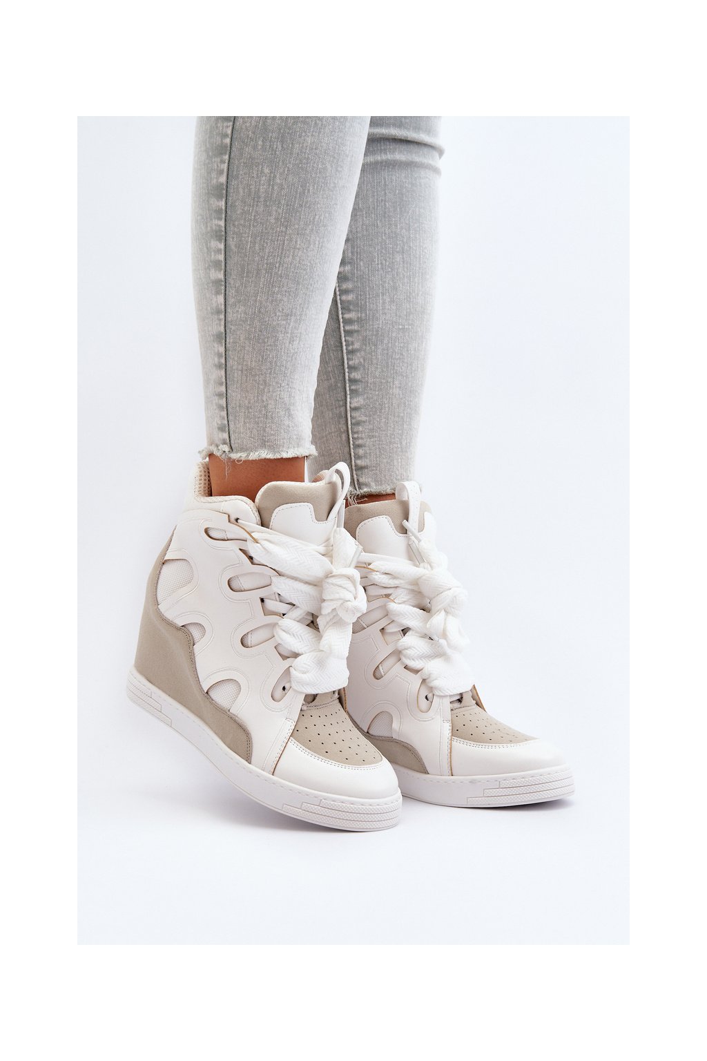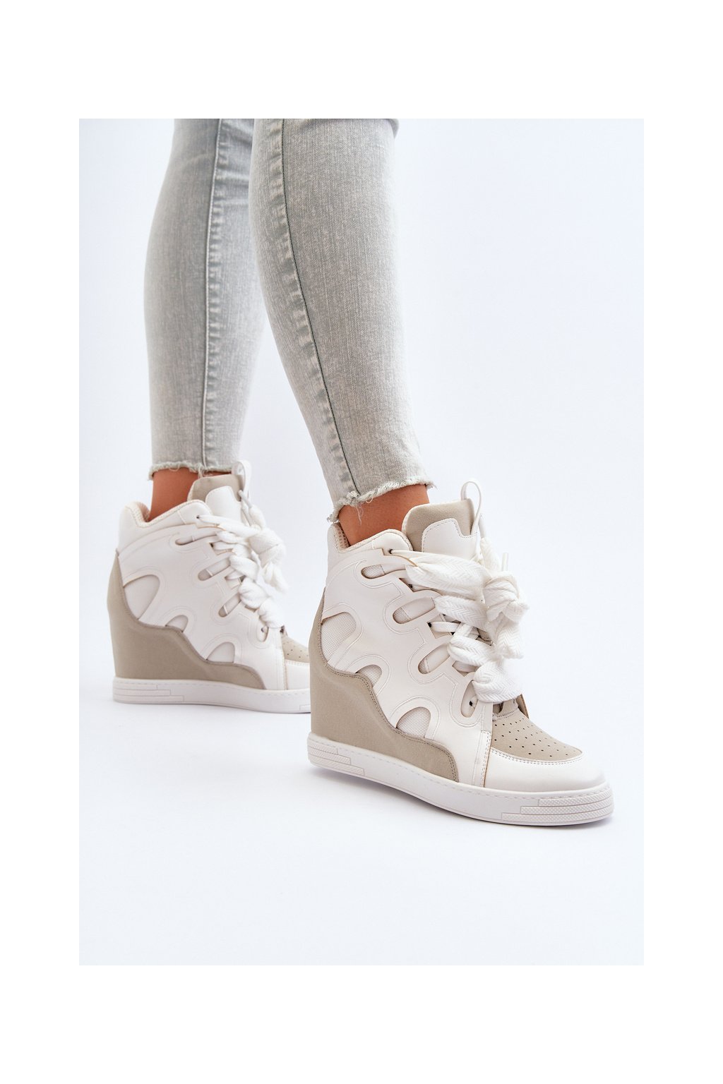 Biele dámske tenisky z eko kože na platforme NS393P WHITE