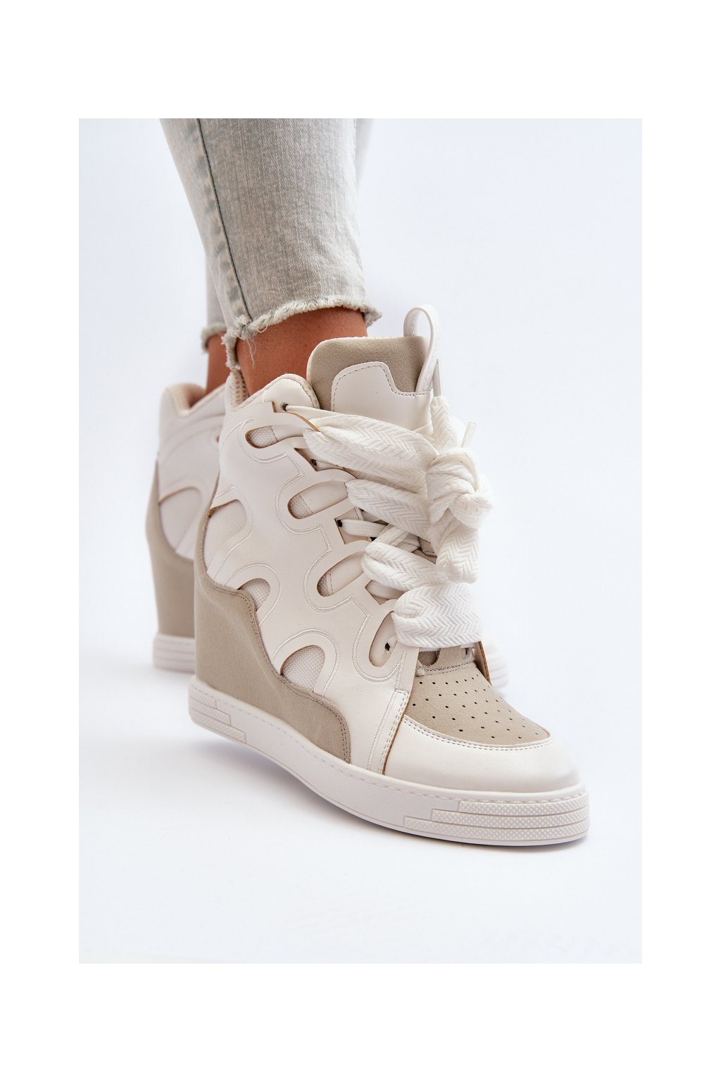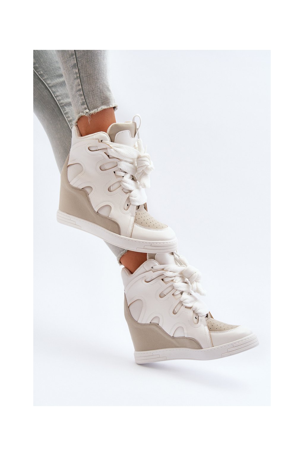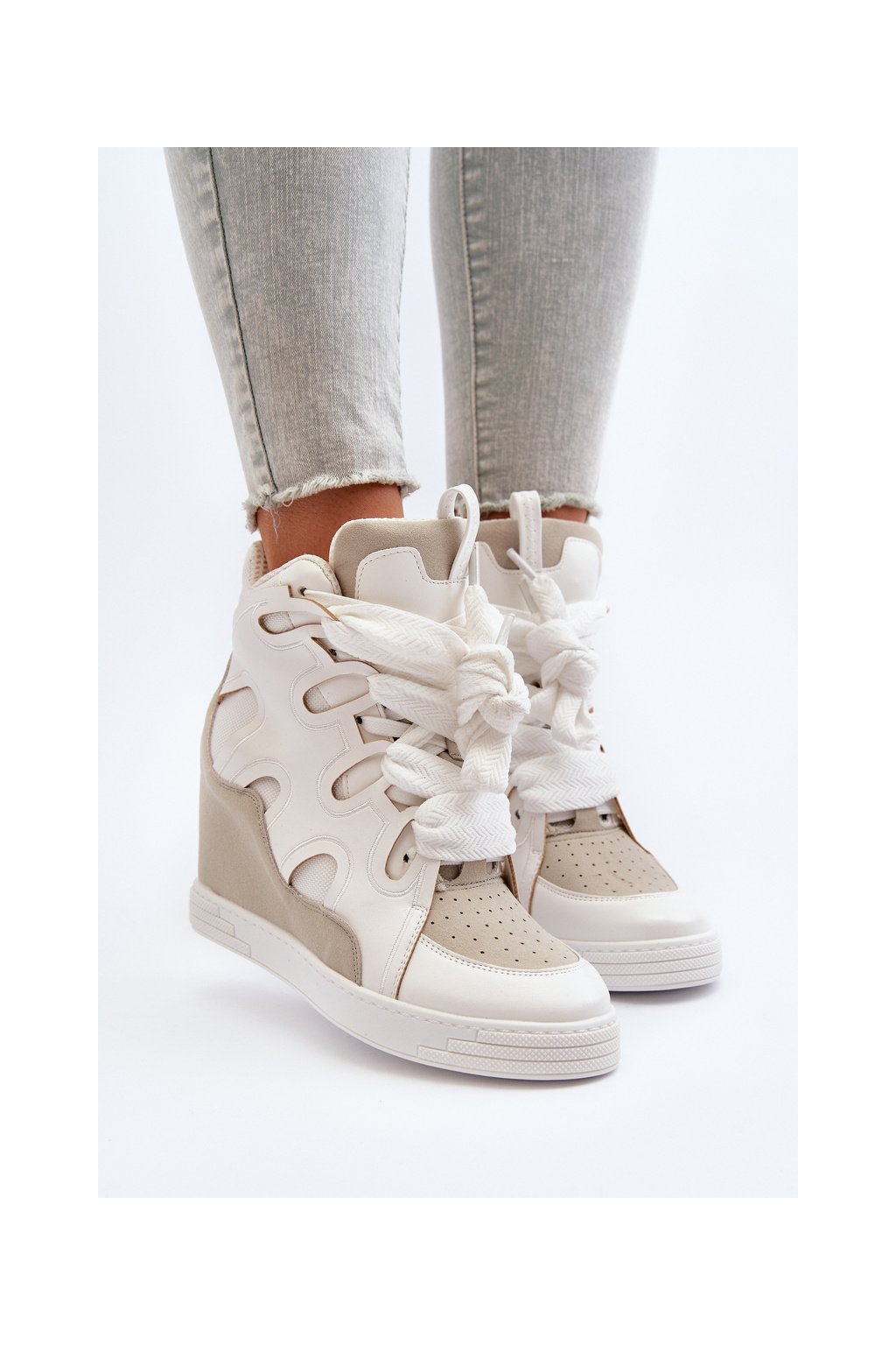 Biele dámske tenisky z eko kože na platforme NS393P WHITE