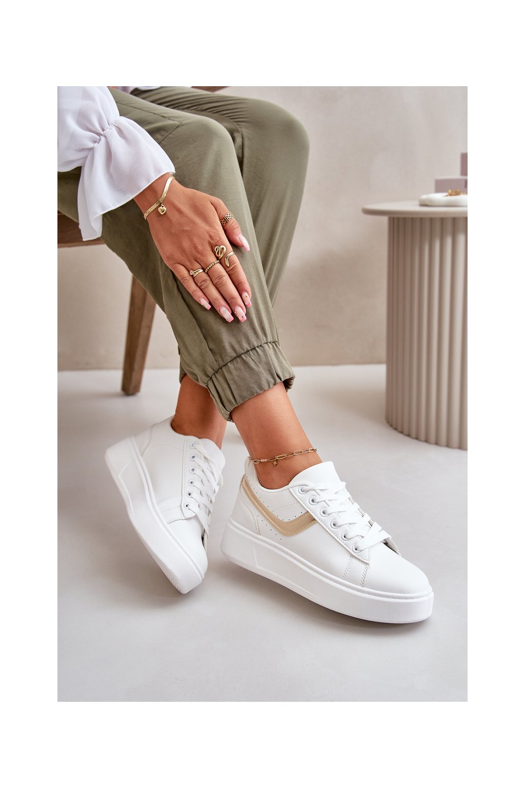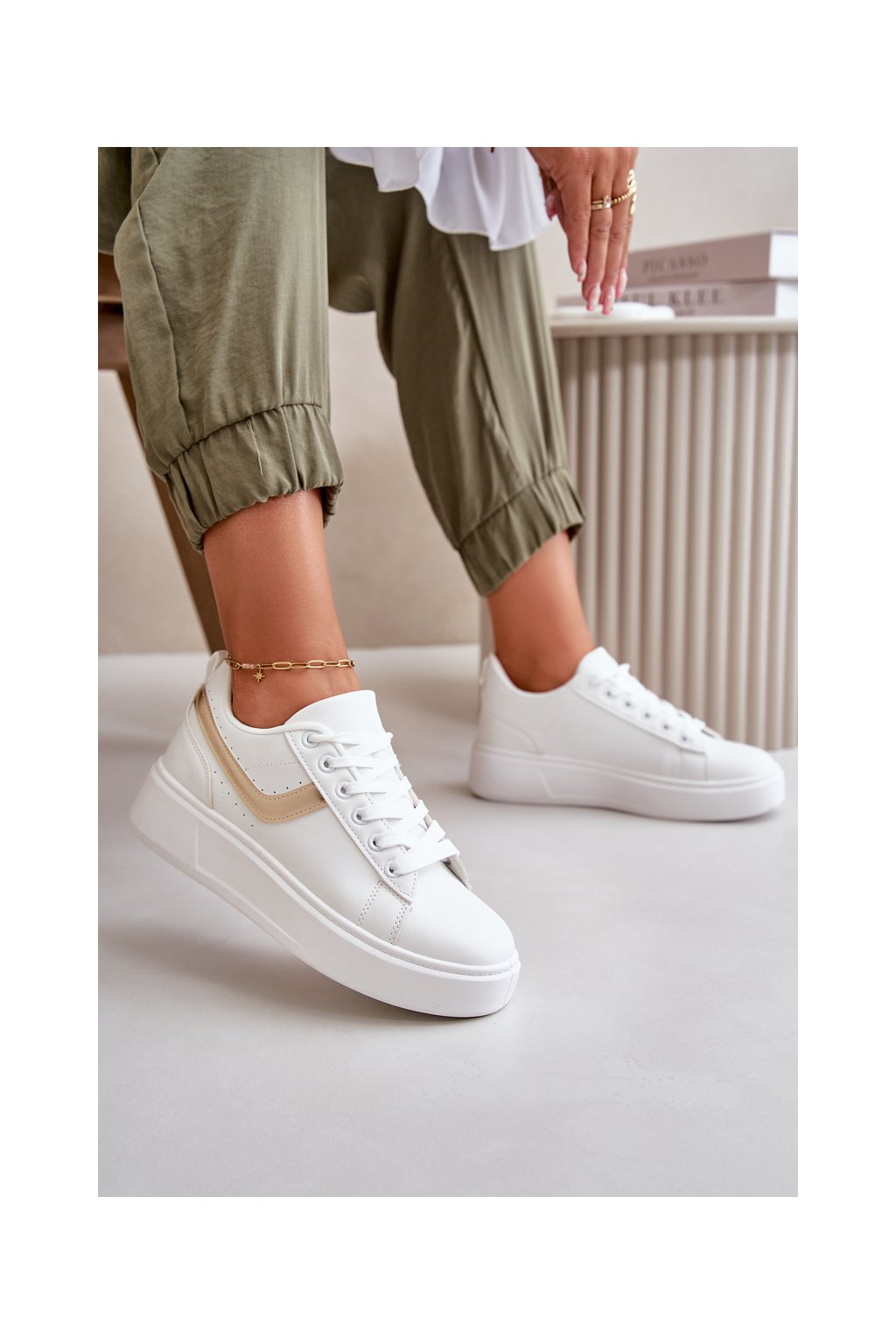 Biele dámske tenisky z eko kože na plošine, kód produktu CC256 GOLD