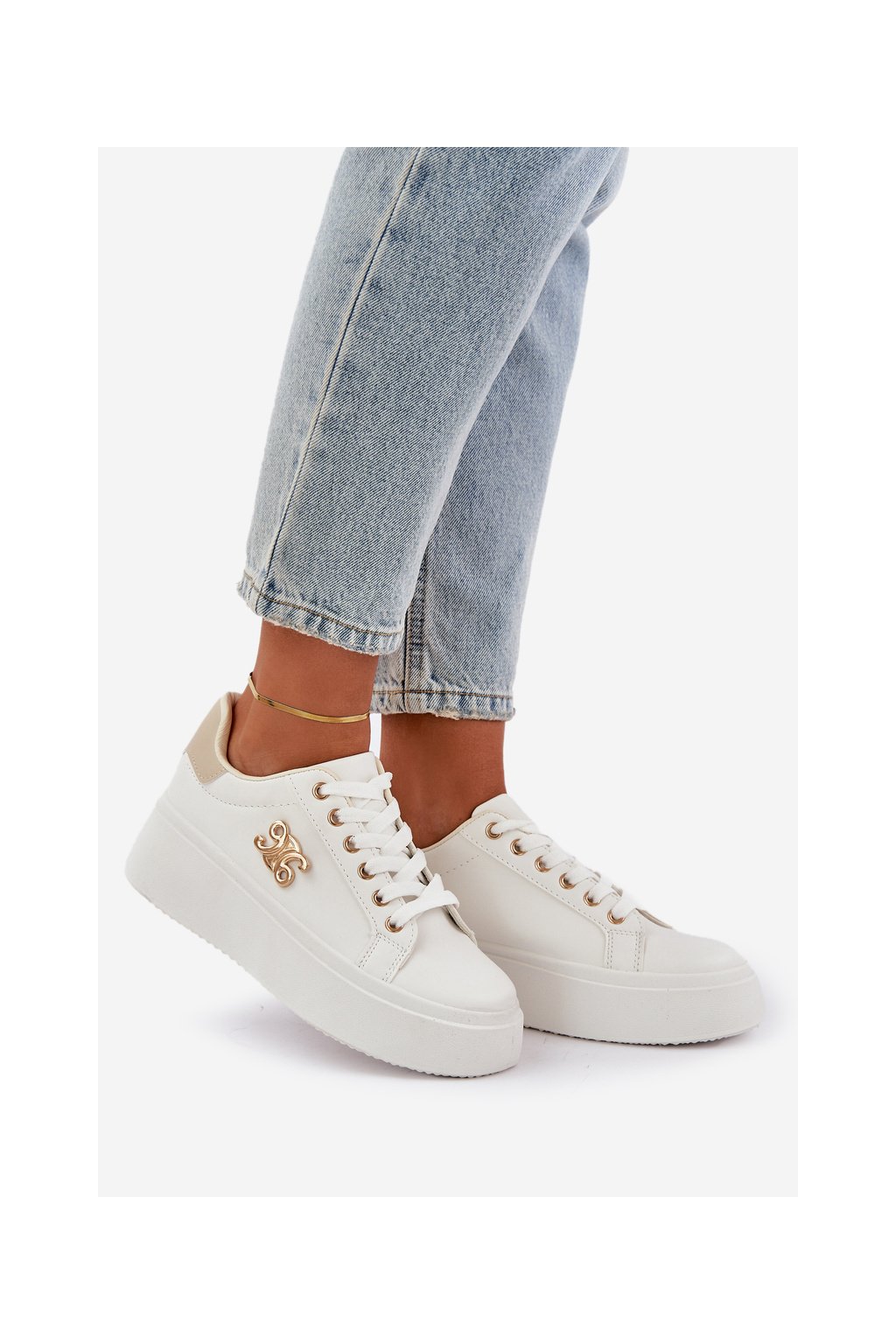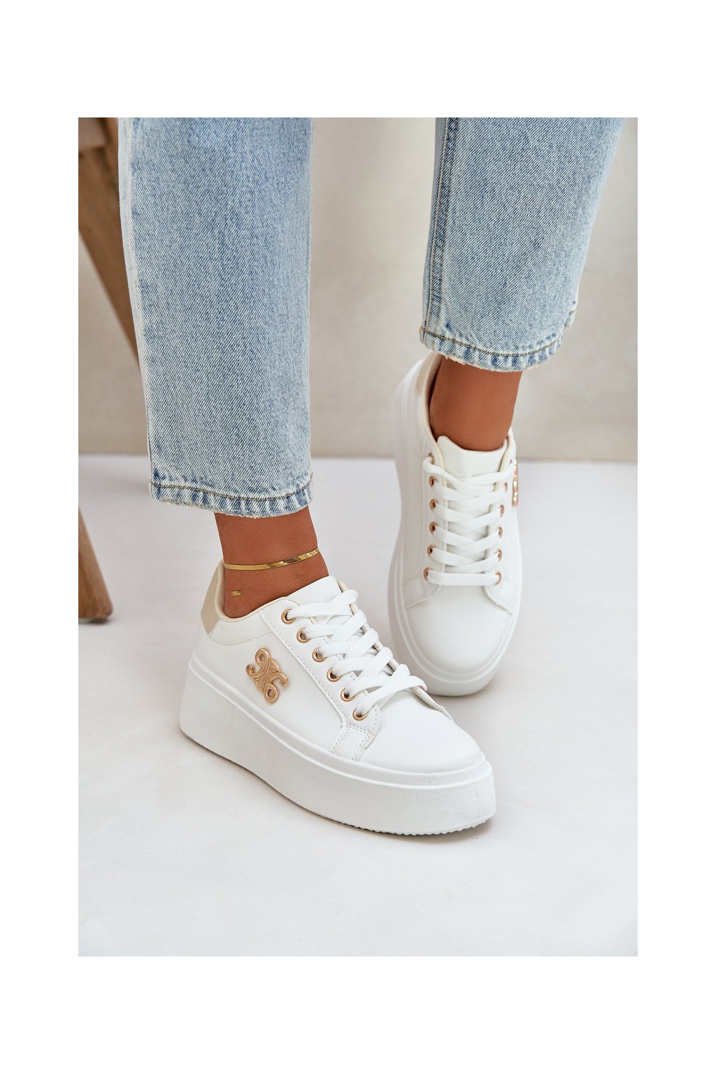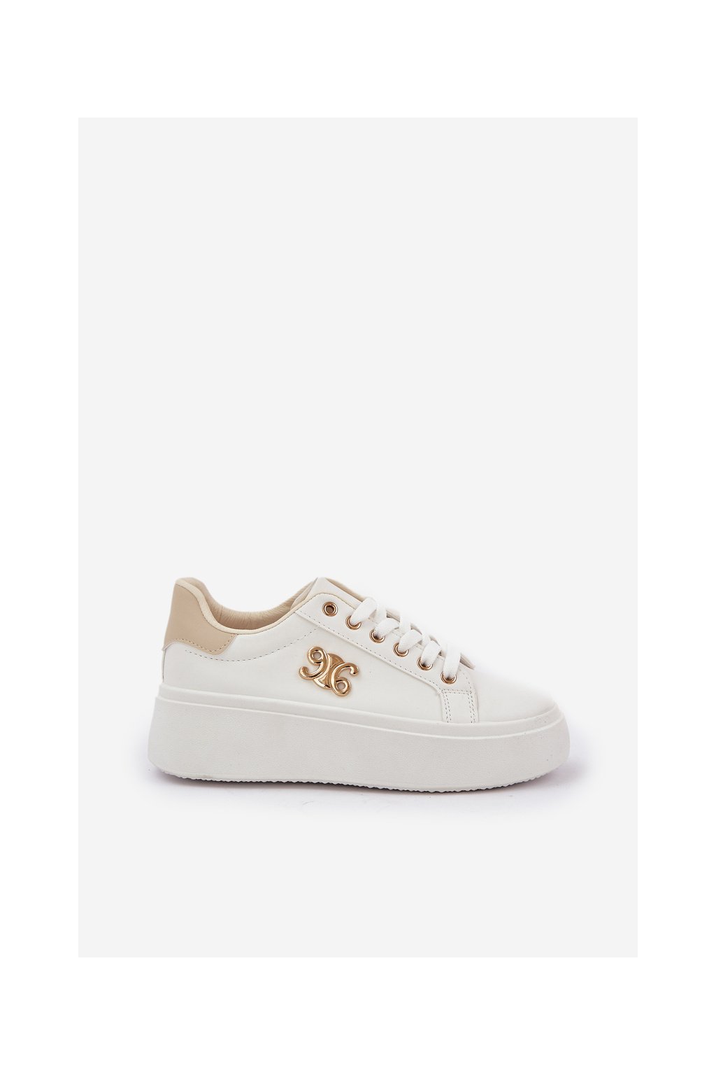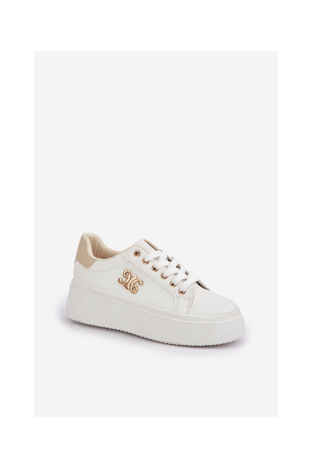 Dámske biele tenisky z eko kože na plnej platforme, YH37 BEIGE