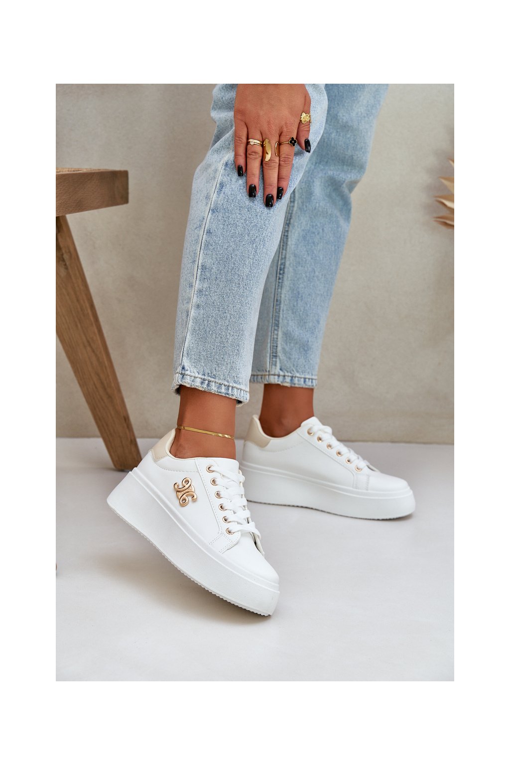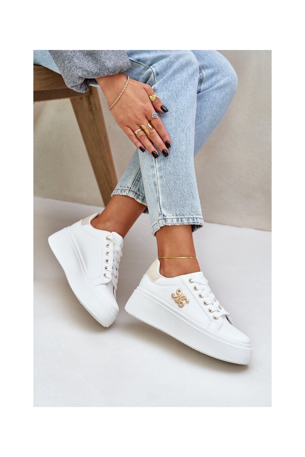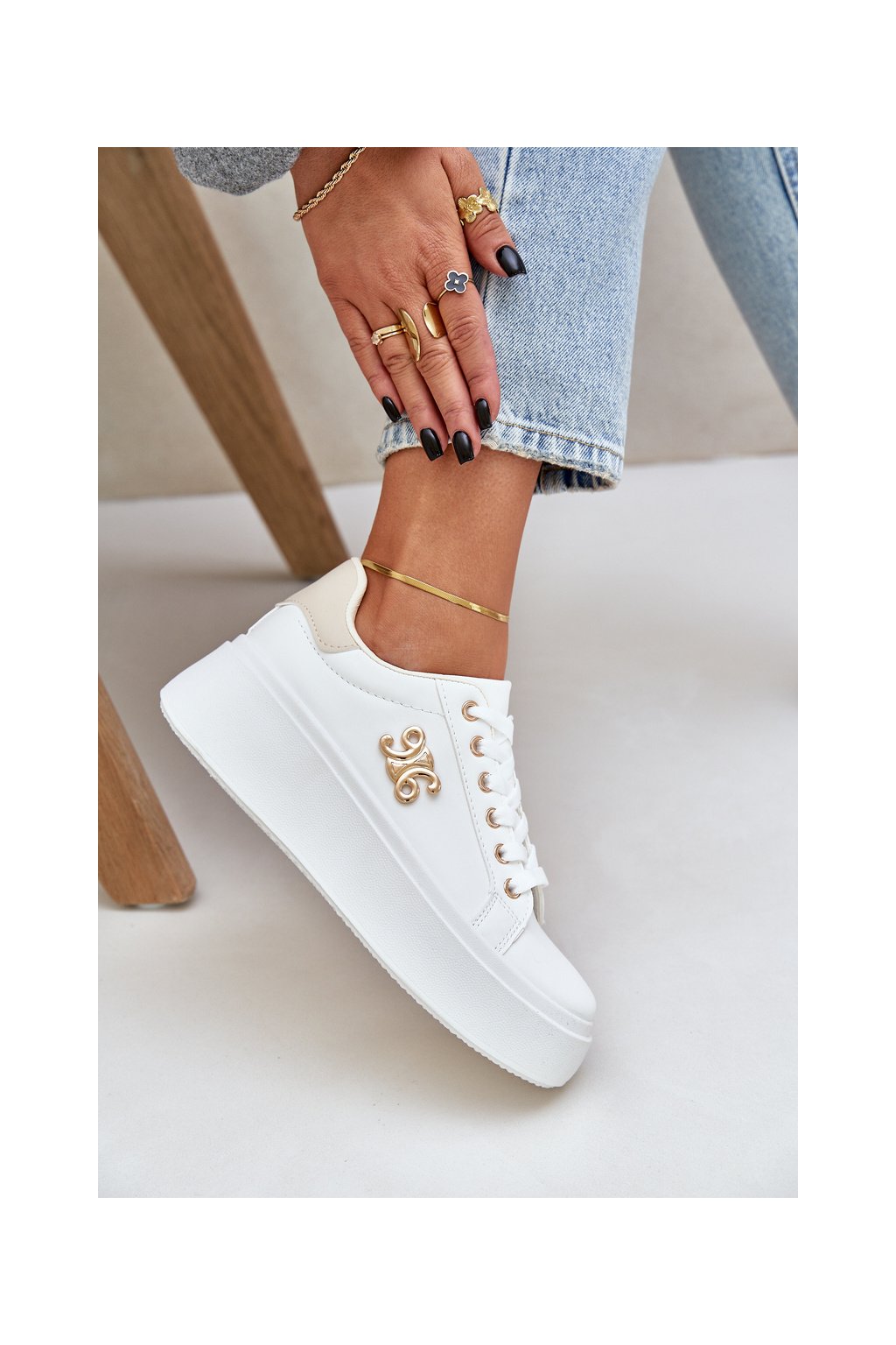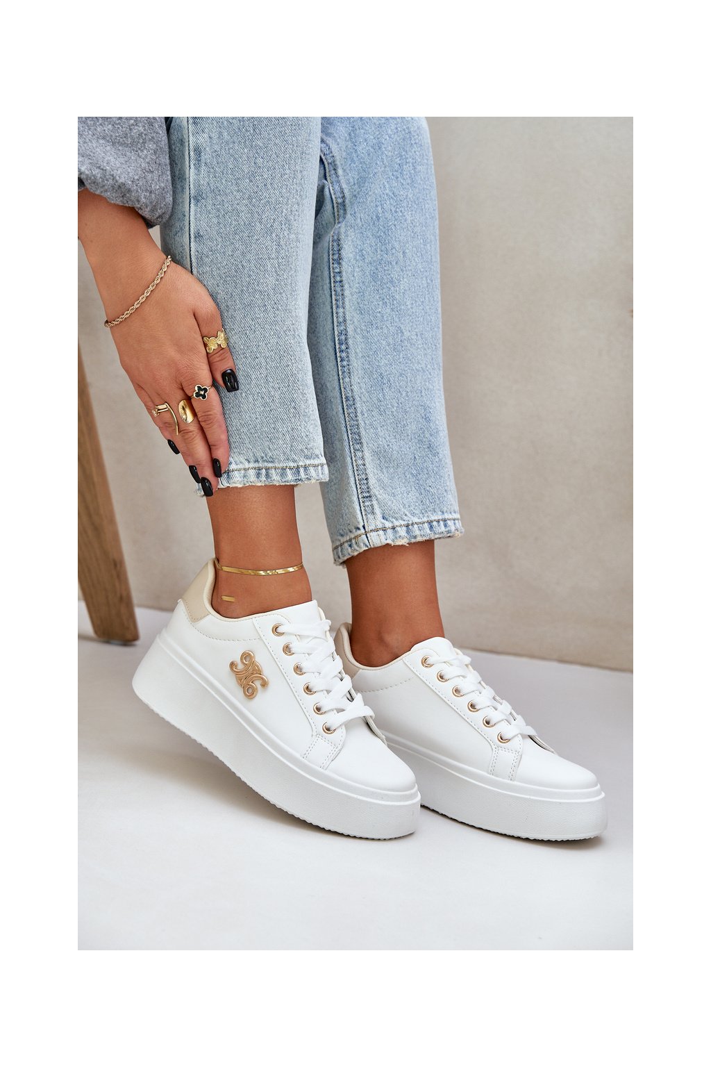 Dámske biele tenisky z eko kože na plnej platforme, YH37 BEIGE