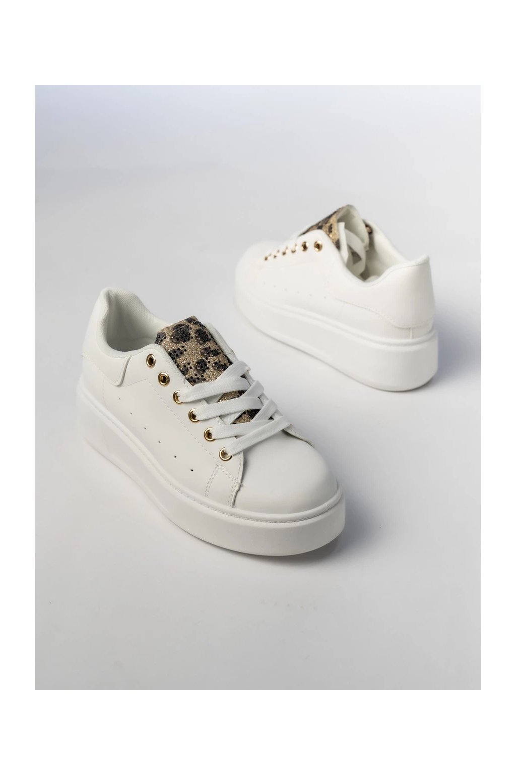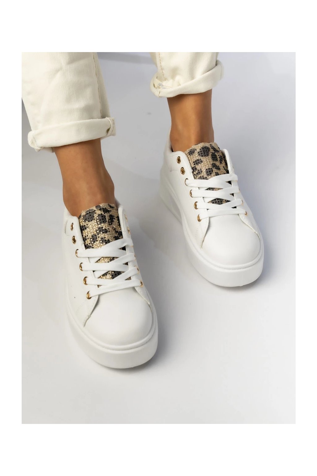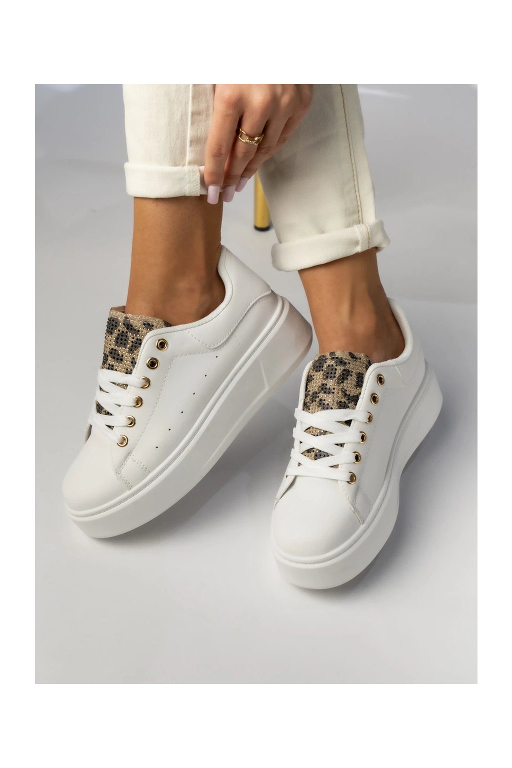 Dámske biele tenisky z eko kože s leopardím vzorom, kód 8131