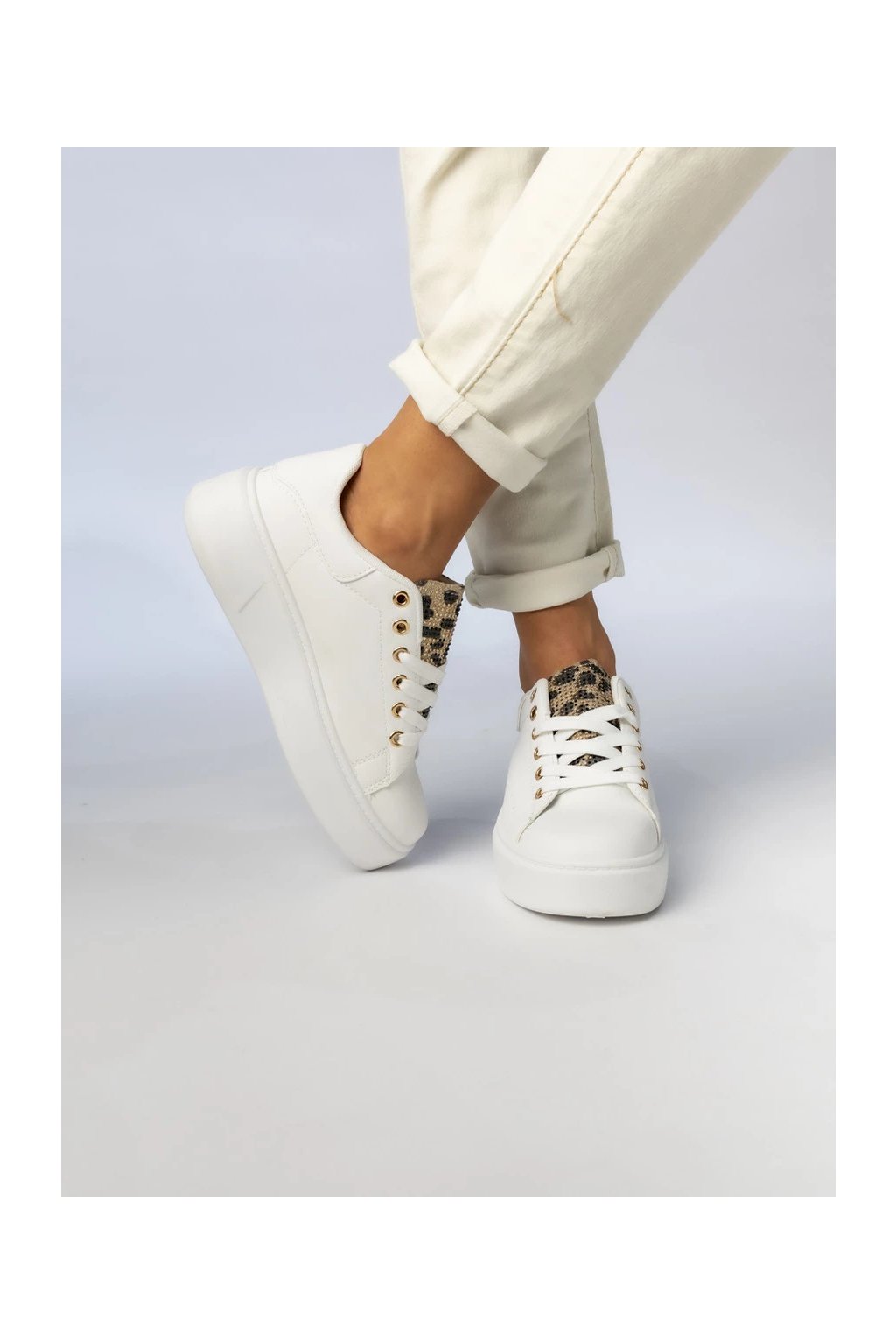 SAVANNAH WHITE/LEOPARD sú tenisky, ktoré kombinujú klasickú bielu farbu s odvážnym akcentom v podobe panelu s leopardím vzorom.