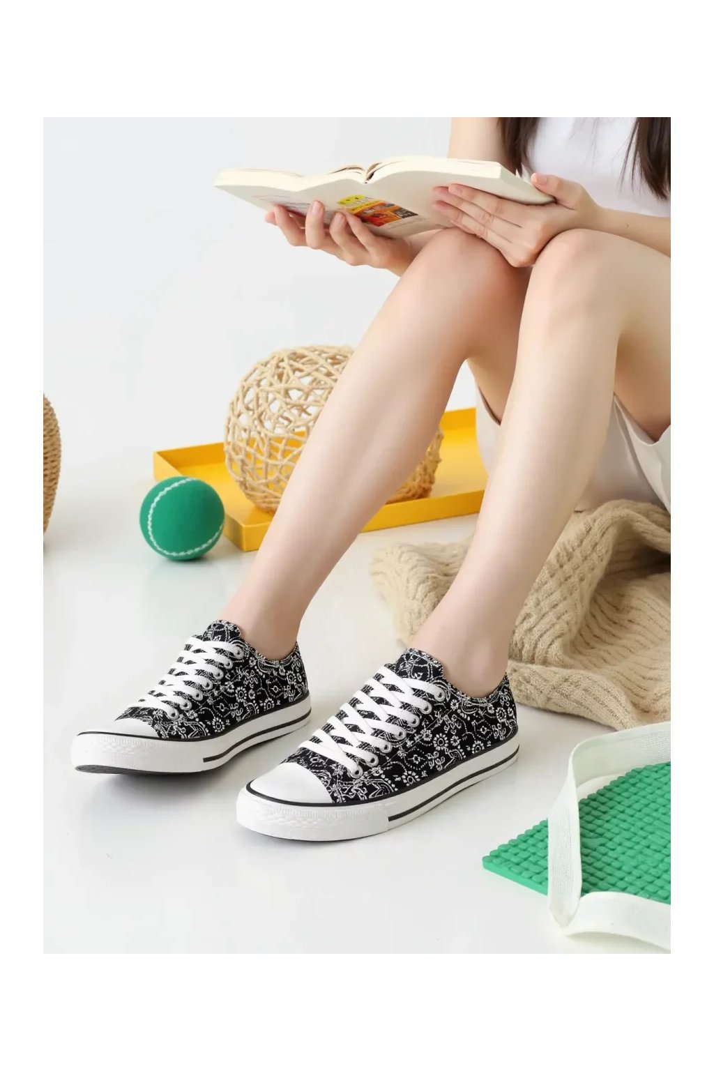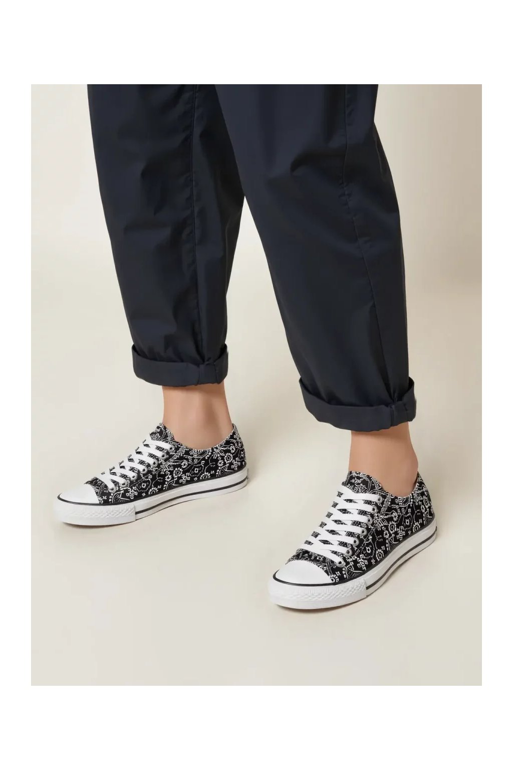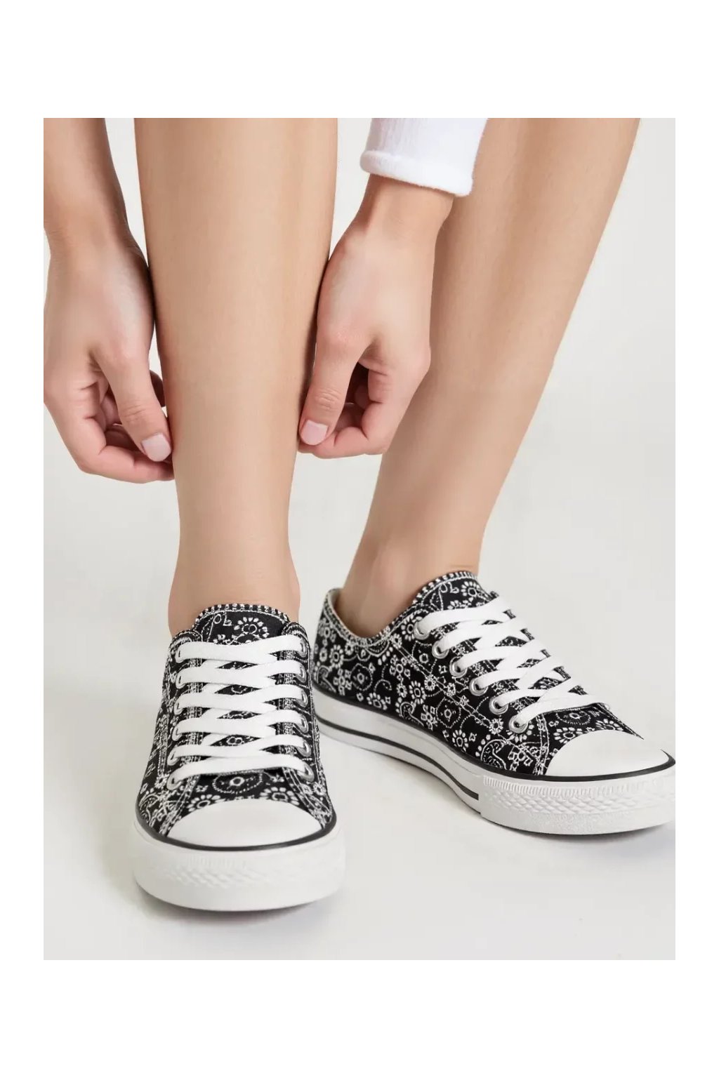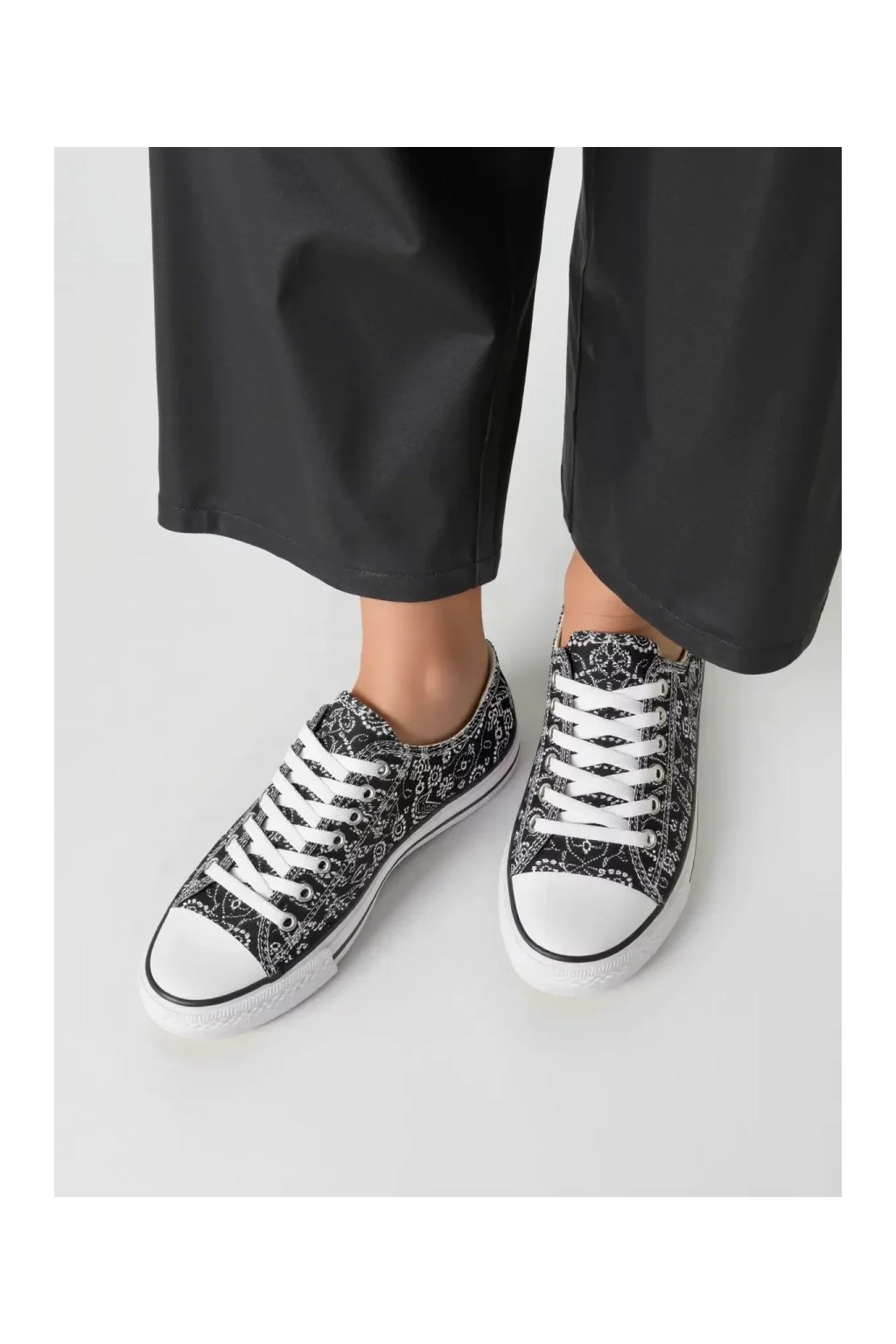 Dámske čierne textilné tenisky na šnúrovanie, vzor bandany, YL-78