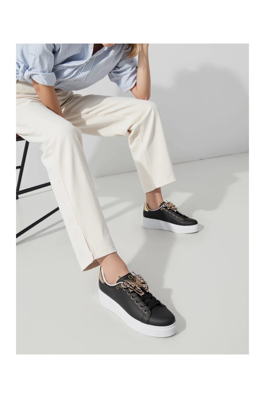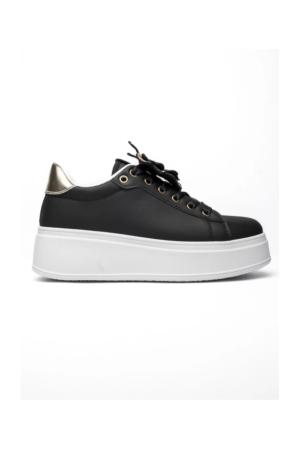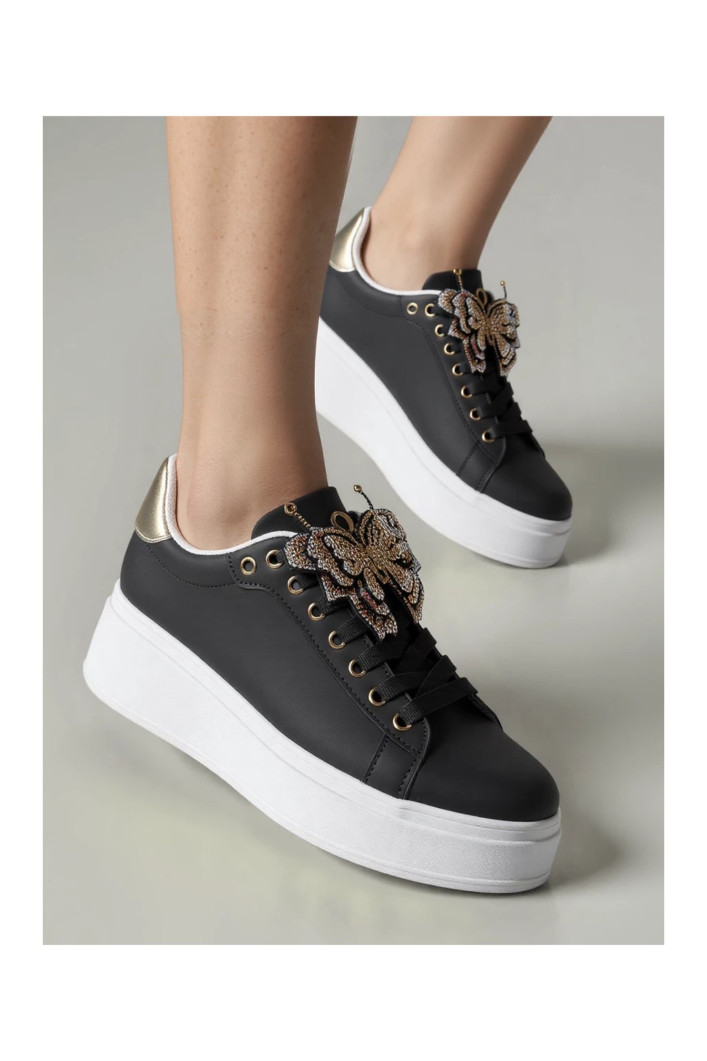 BUTTERFLY LUX Black sú jedinečné tenisky na platforme, ktoré kombinujú klasickú čiernu farbu s nápadným motívom motýľa s drahokamami.