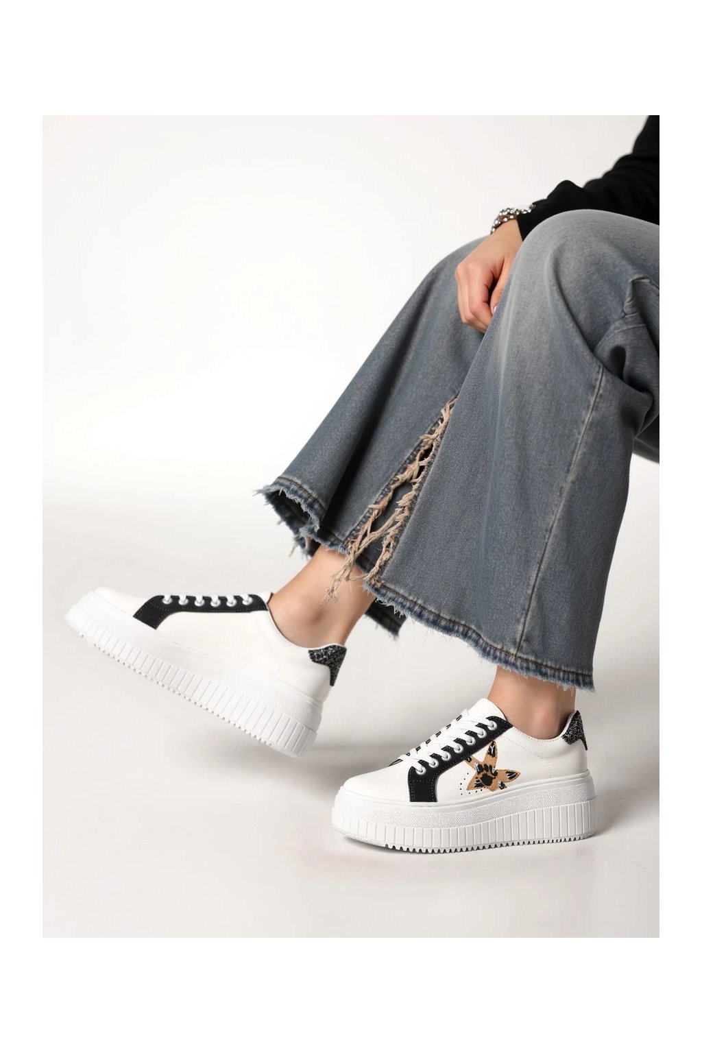 Dámske čierne streetwear mokasíny z textilu s panterovým vzorom, kód LY115