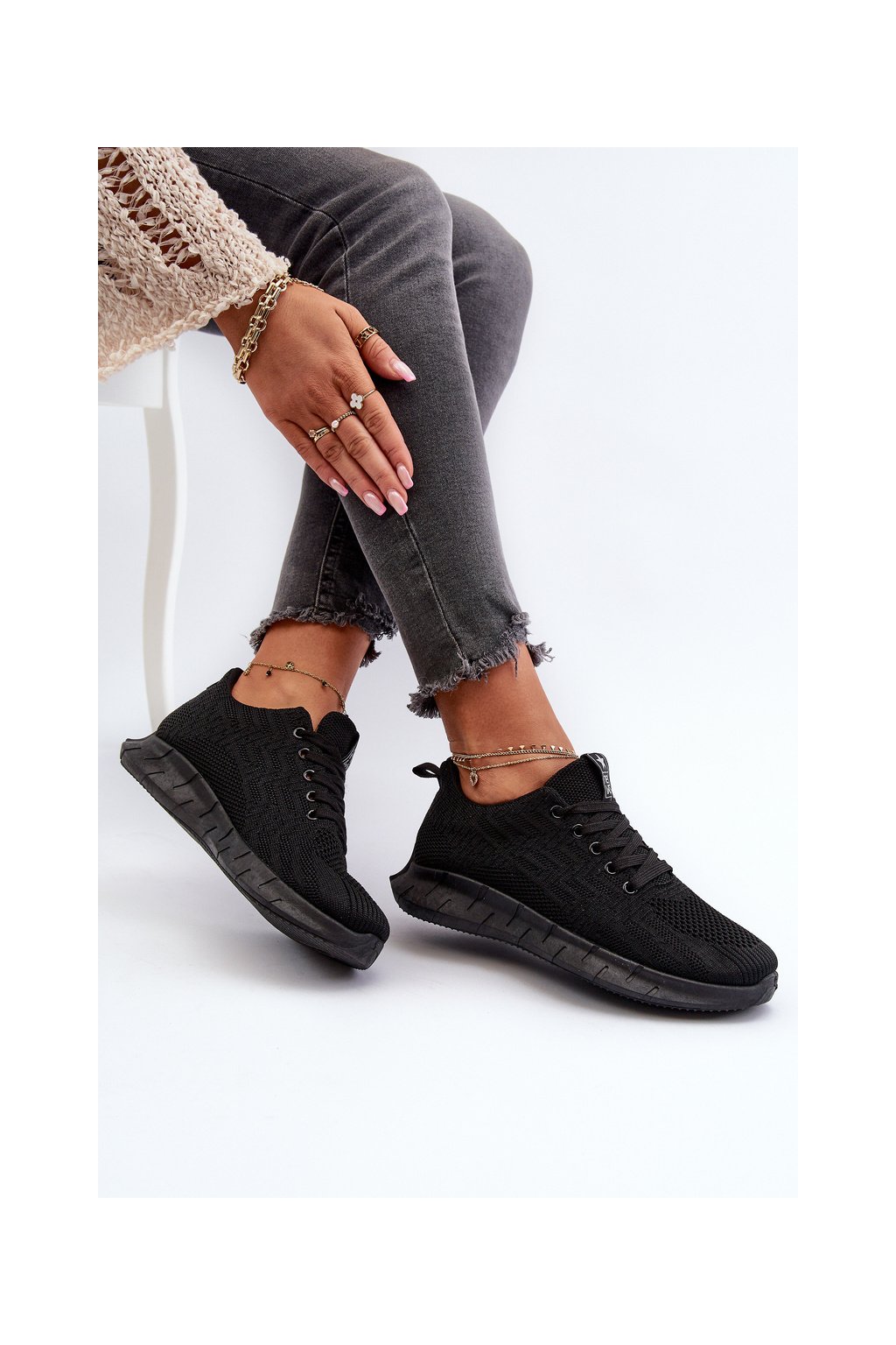 Čierne dámske textilné tenisky na rovnej podrážke, kód produktu 23SP02-5746 BLACK