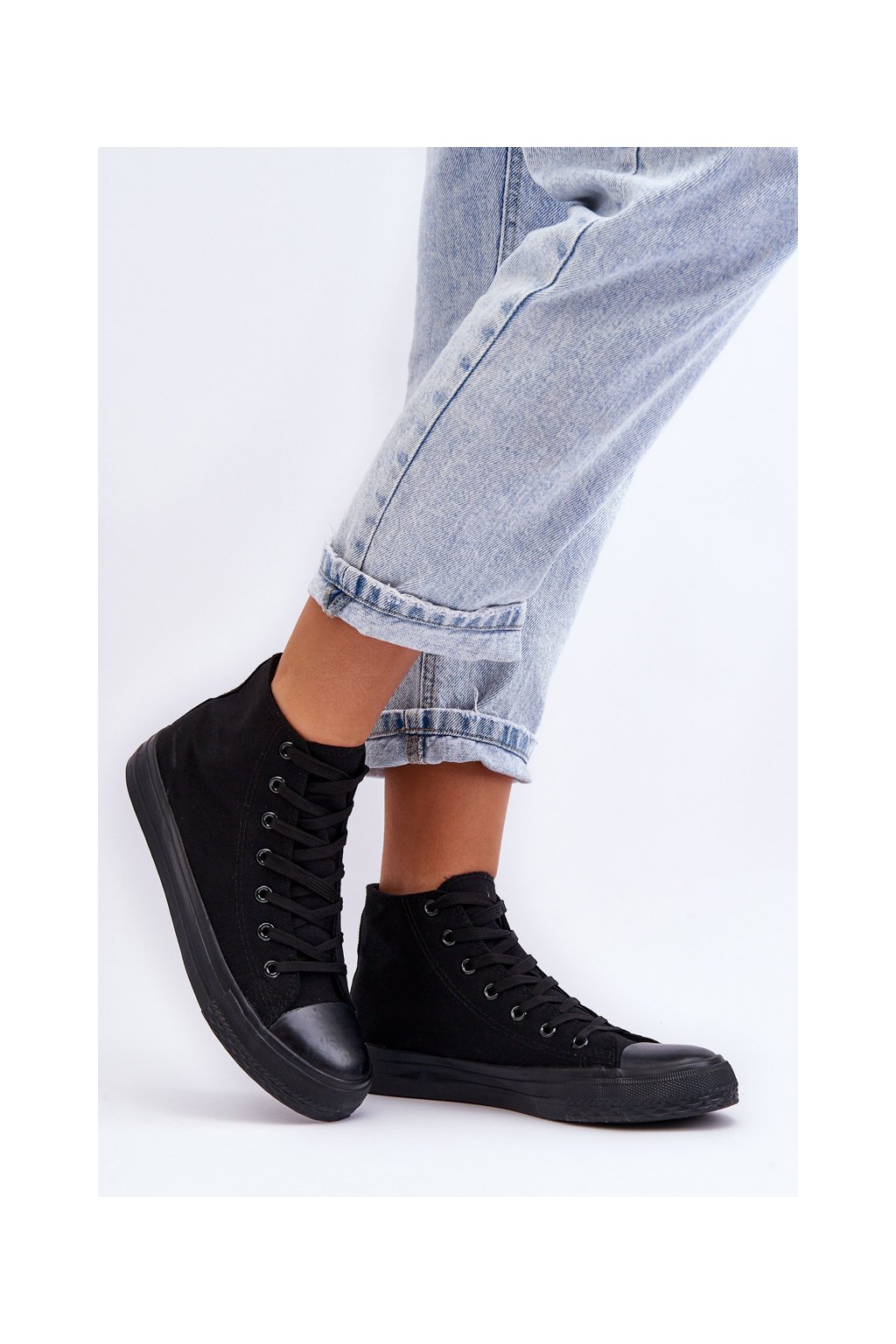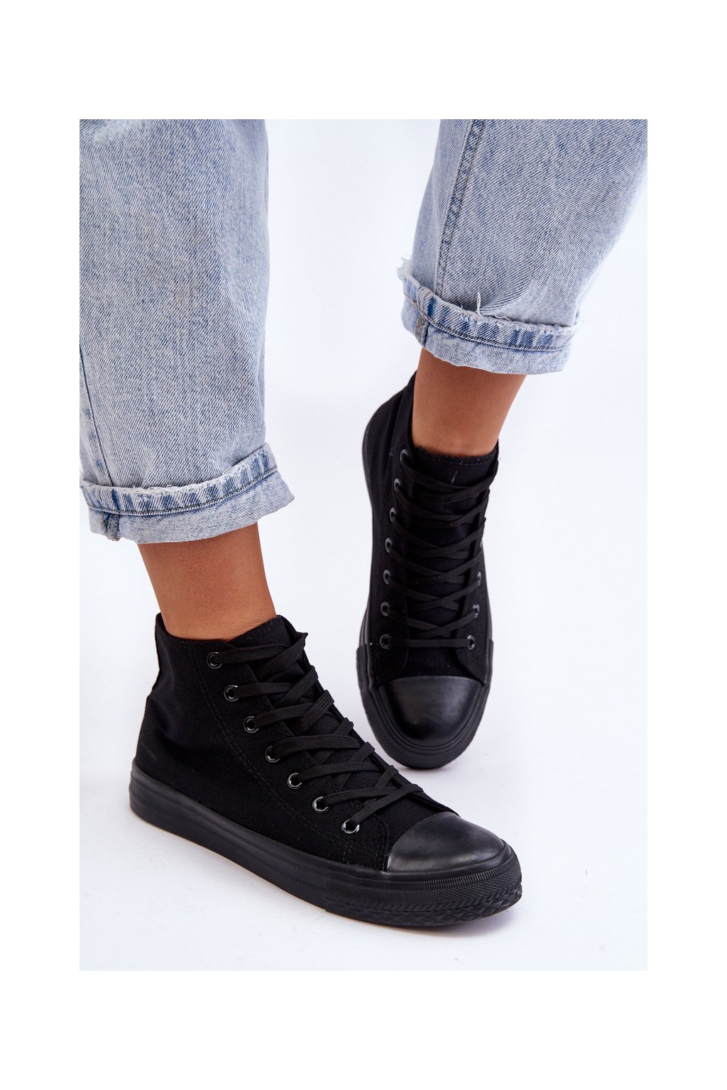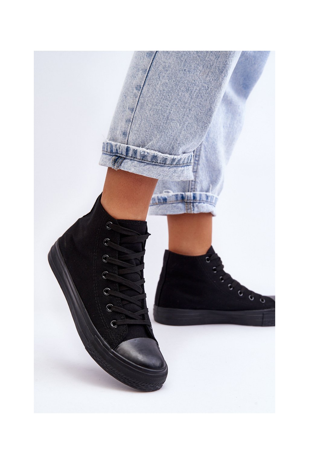 Čierne dámske plátenné tenisky na rovnej podrážke, kód produktu B-807 ALL BLACK