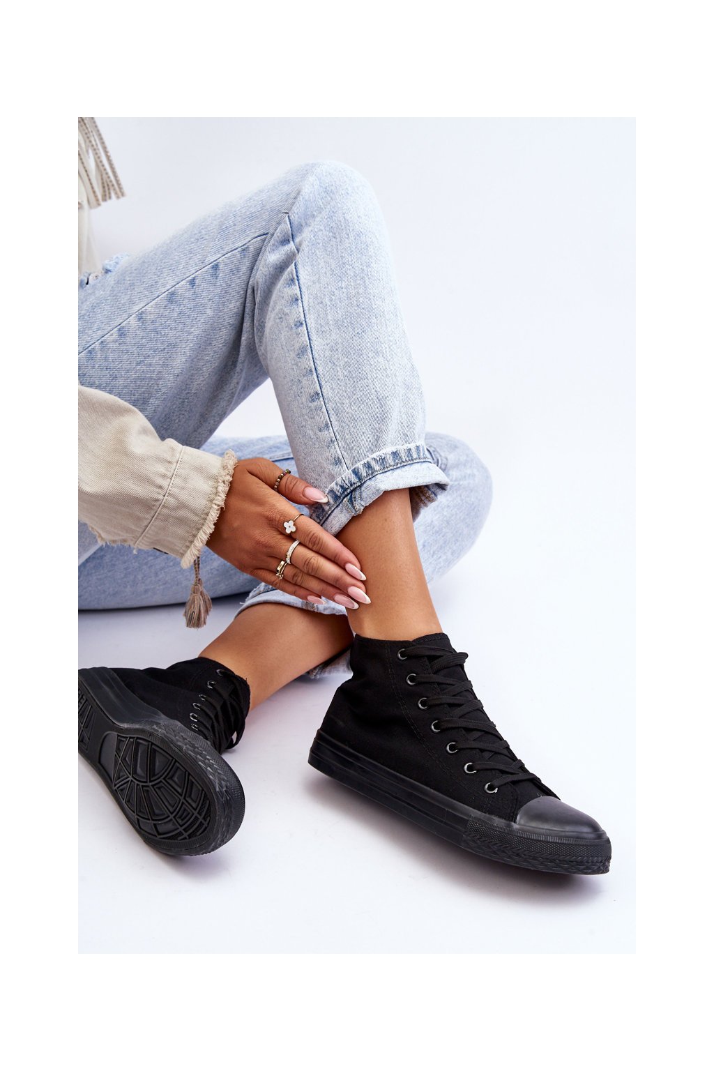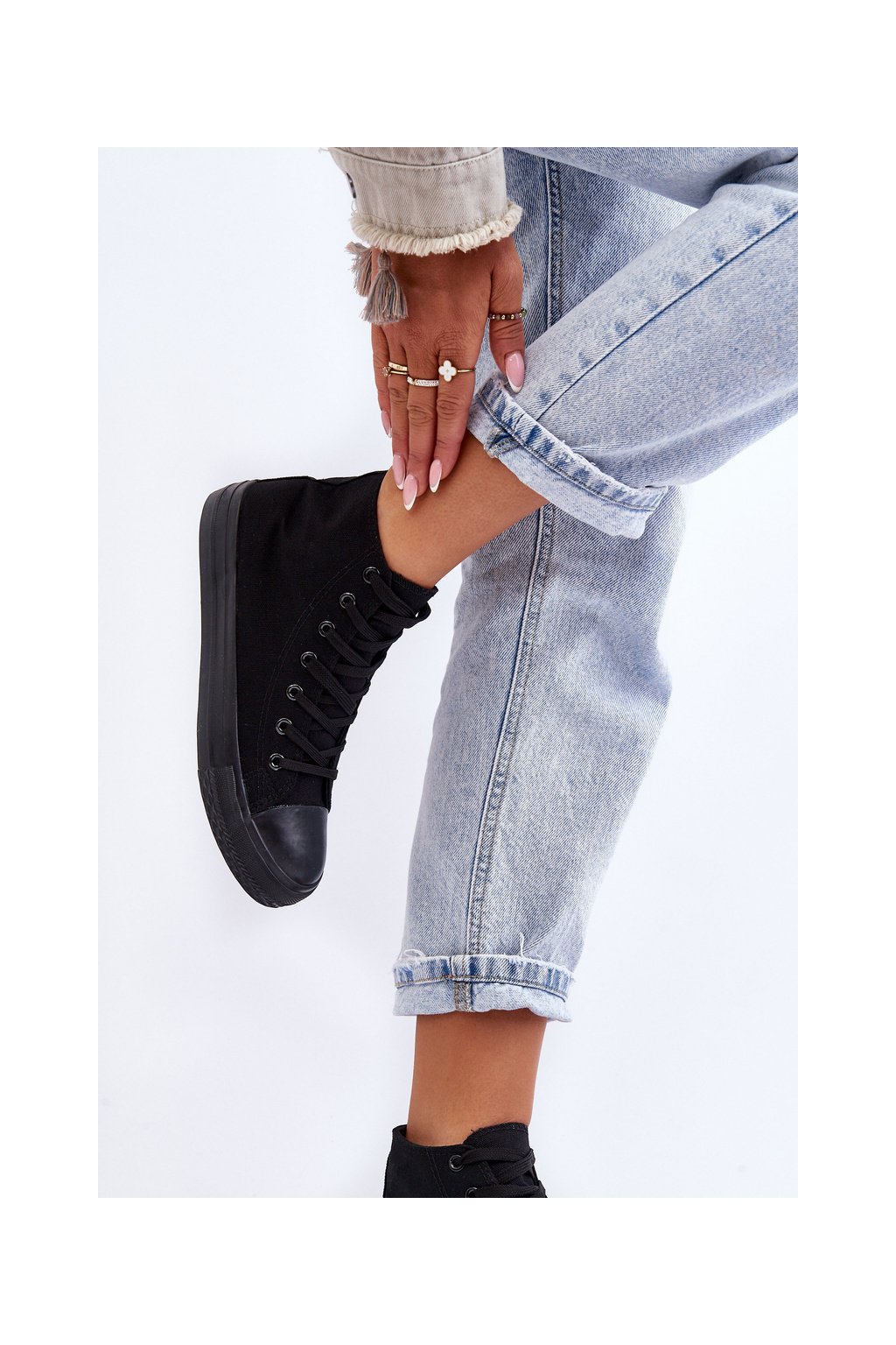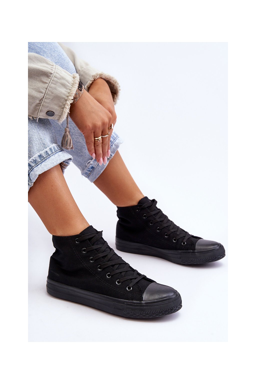 Čierne dámske plátenné tenisky na rovnej podrážke, kód produktu B-807 ALL BLACK