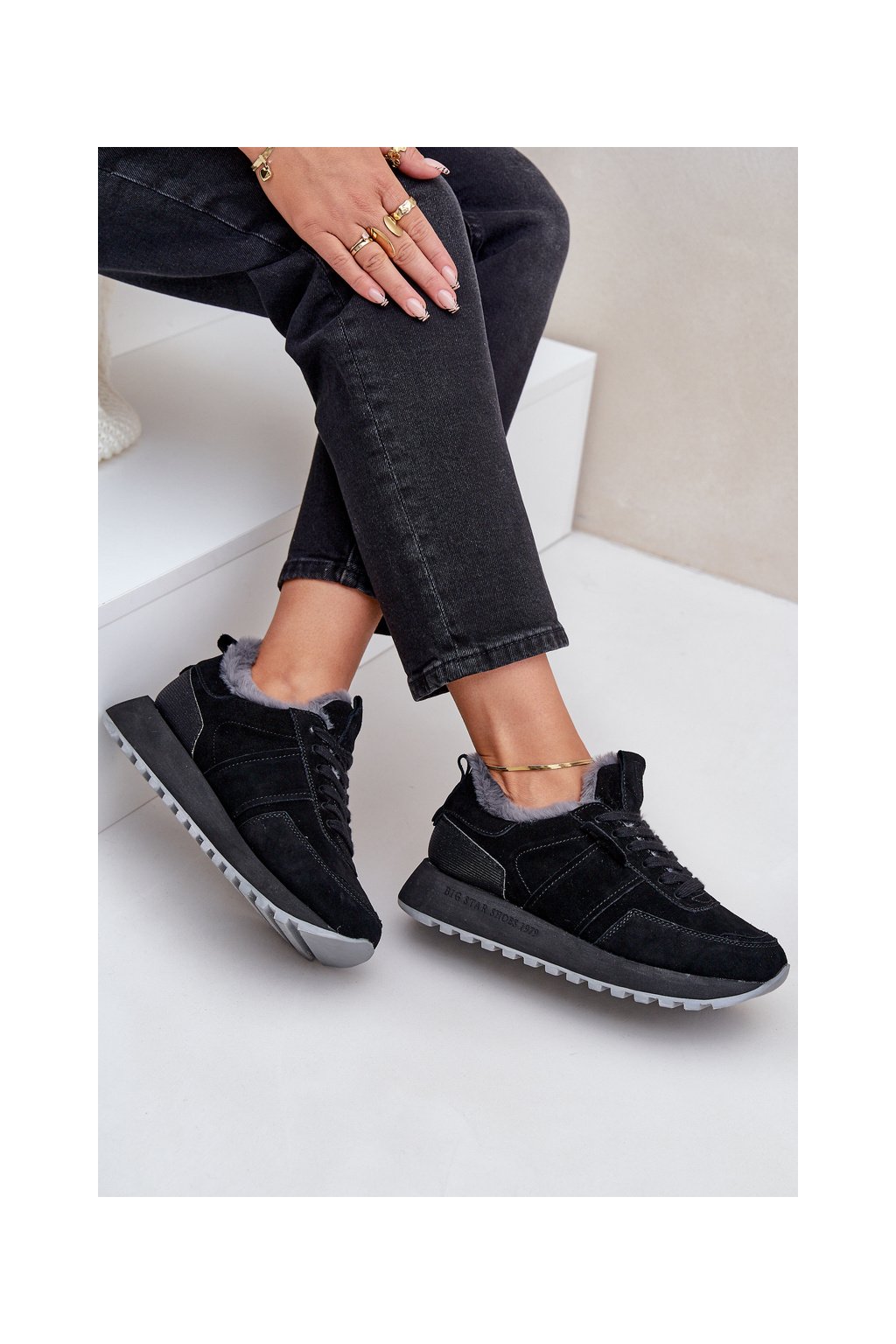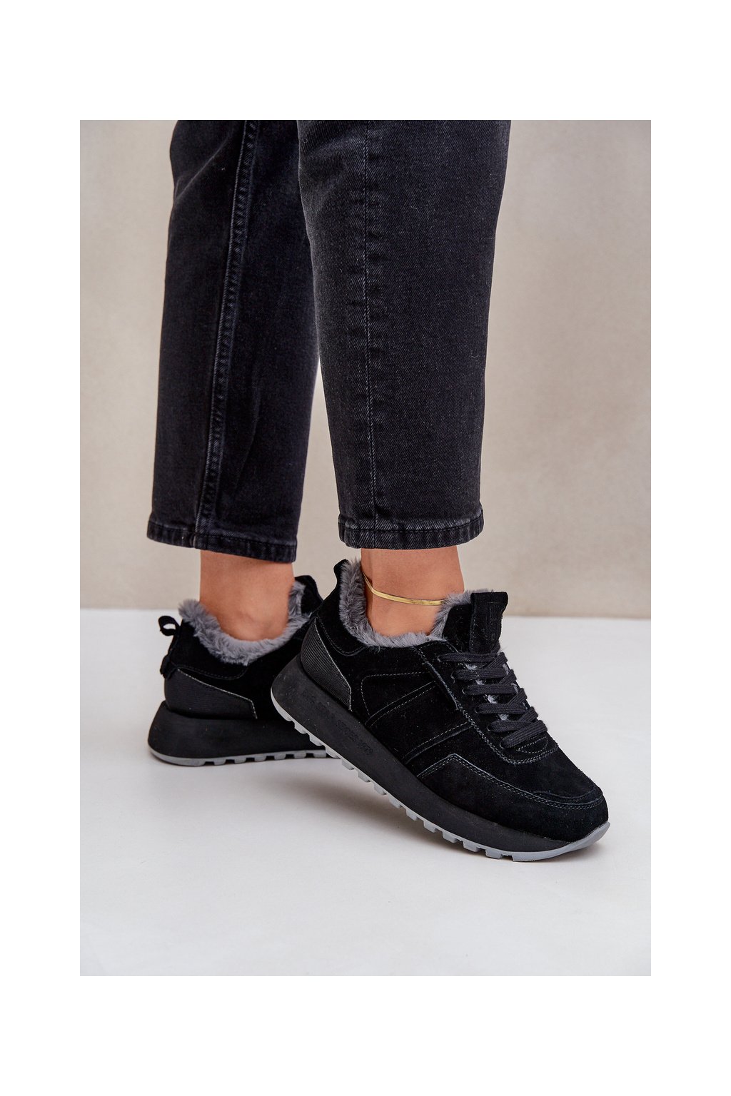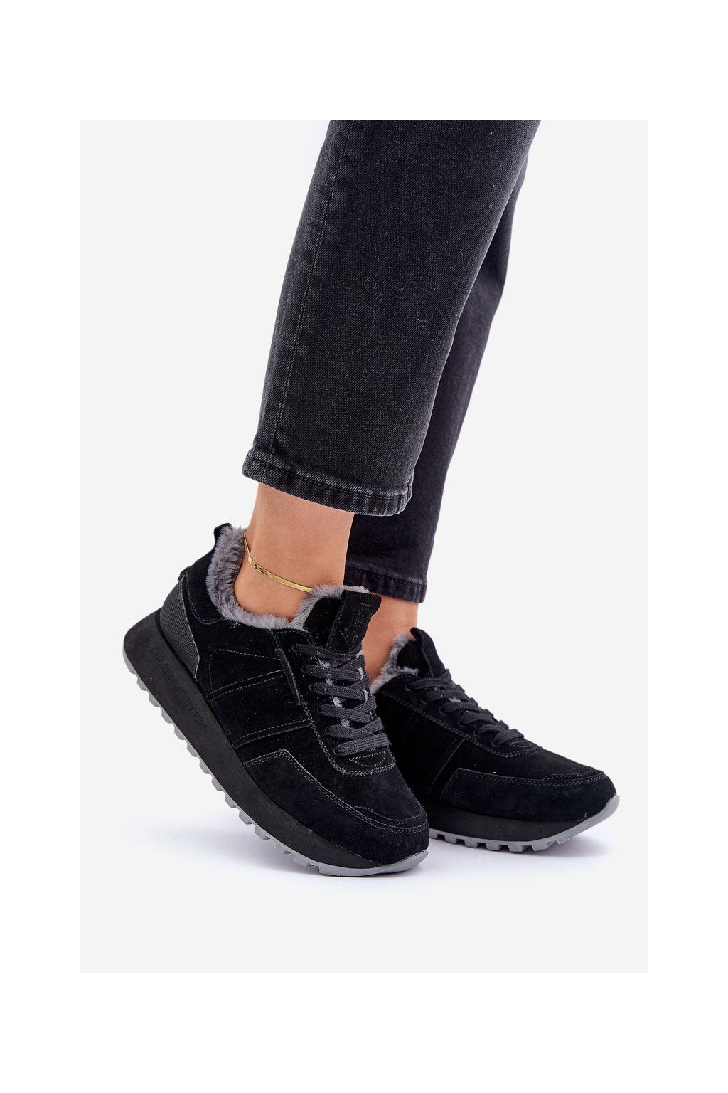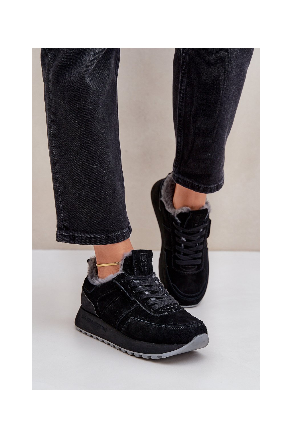 Dámske tenisky s kožušinou a lesklým prvkom big star oo274580 čierne /