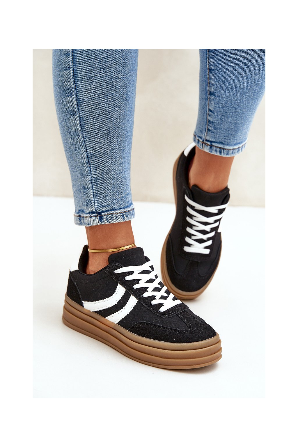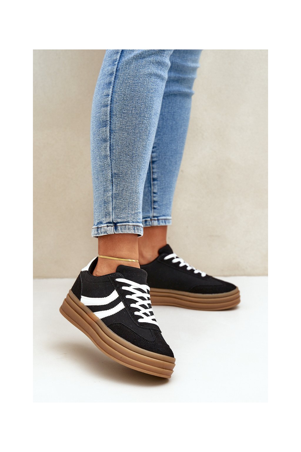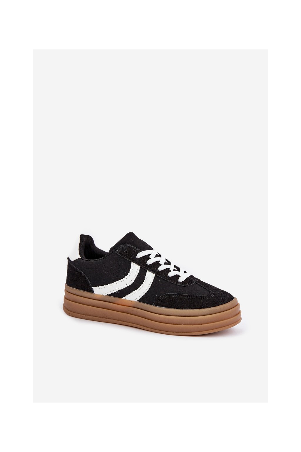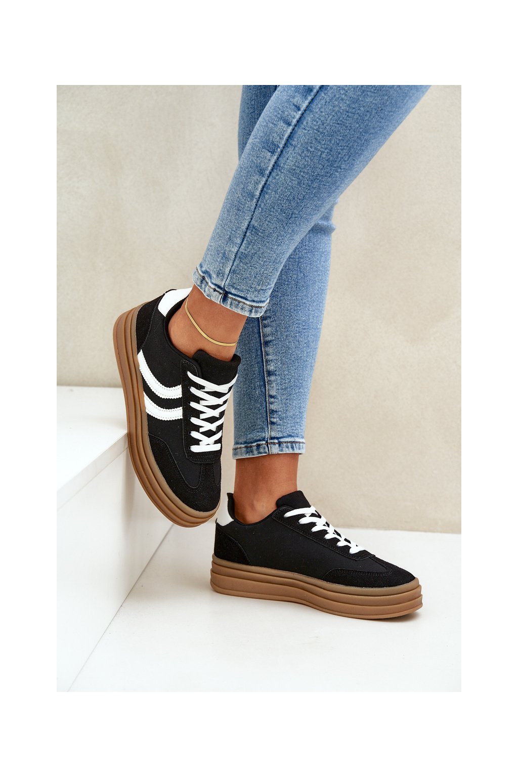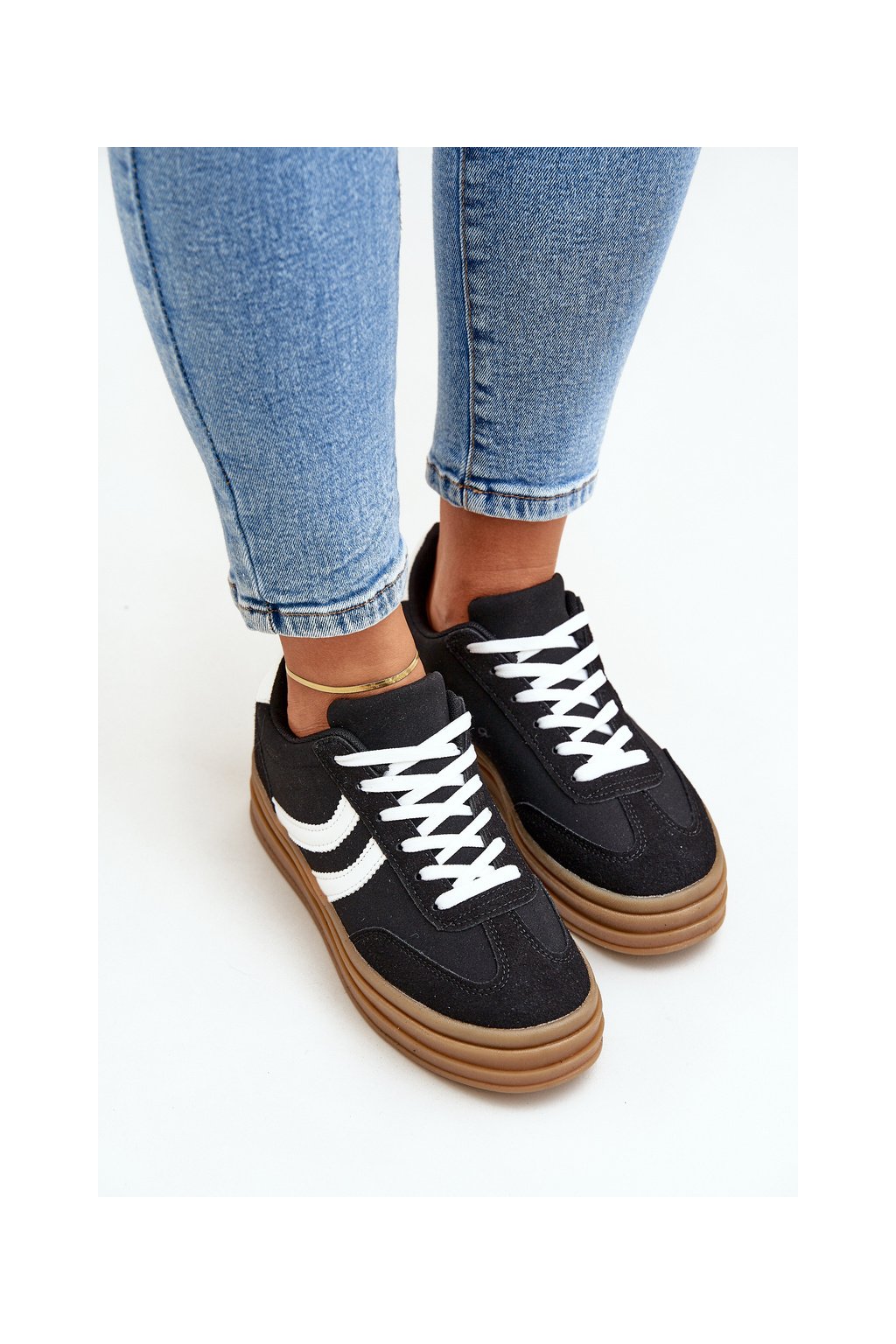 Dámske čierne tenisky na ploške z eko semišu L-520 BLACK