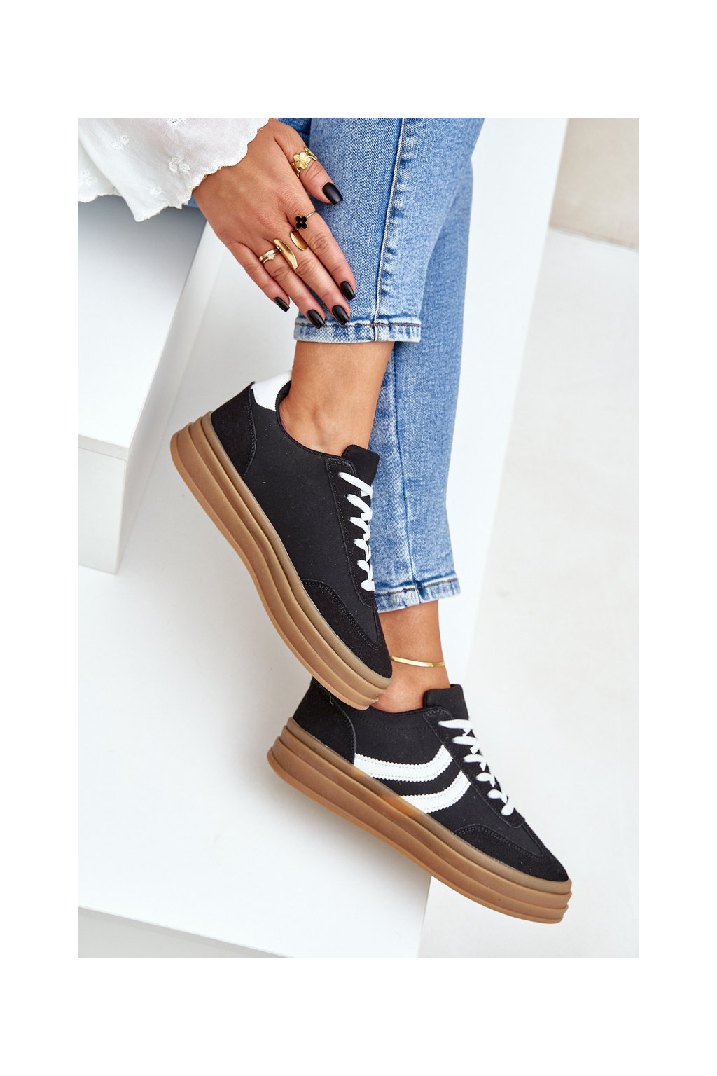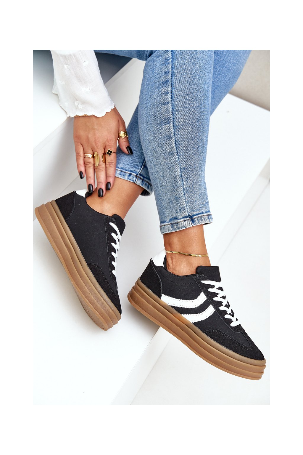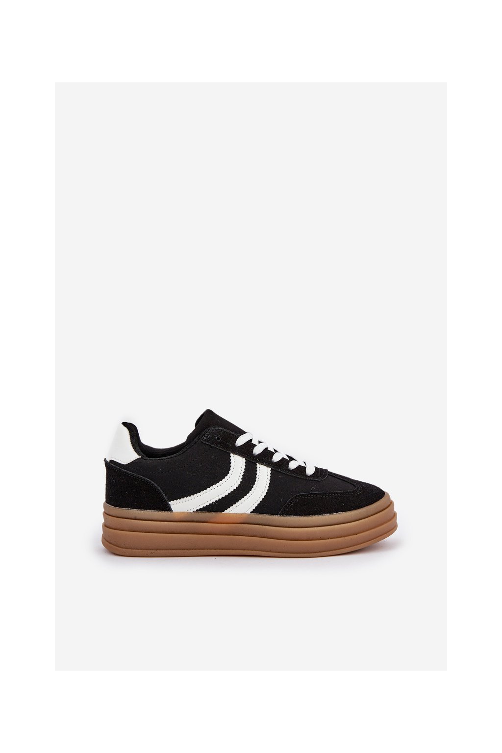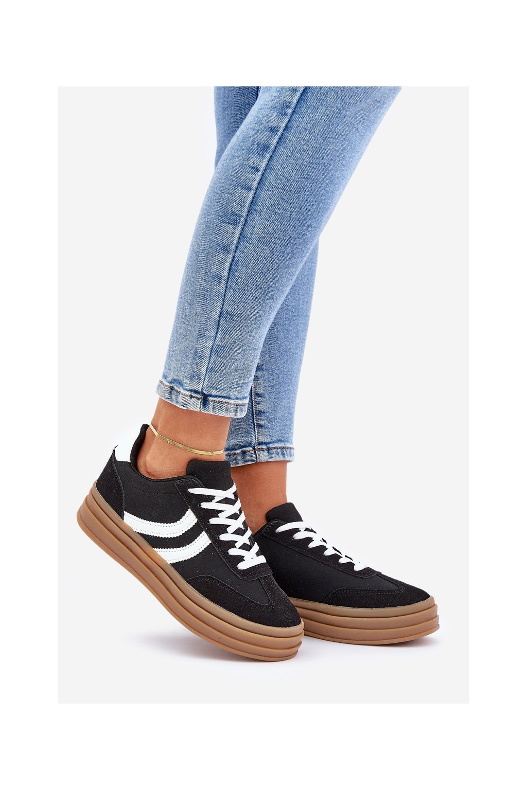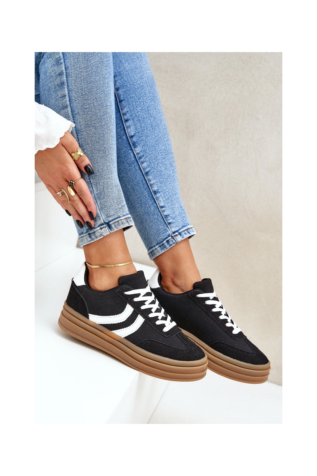 Dámske čierne tenisky na ploške z eko semišu L-520 BLACK