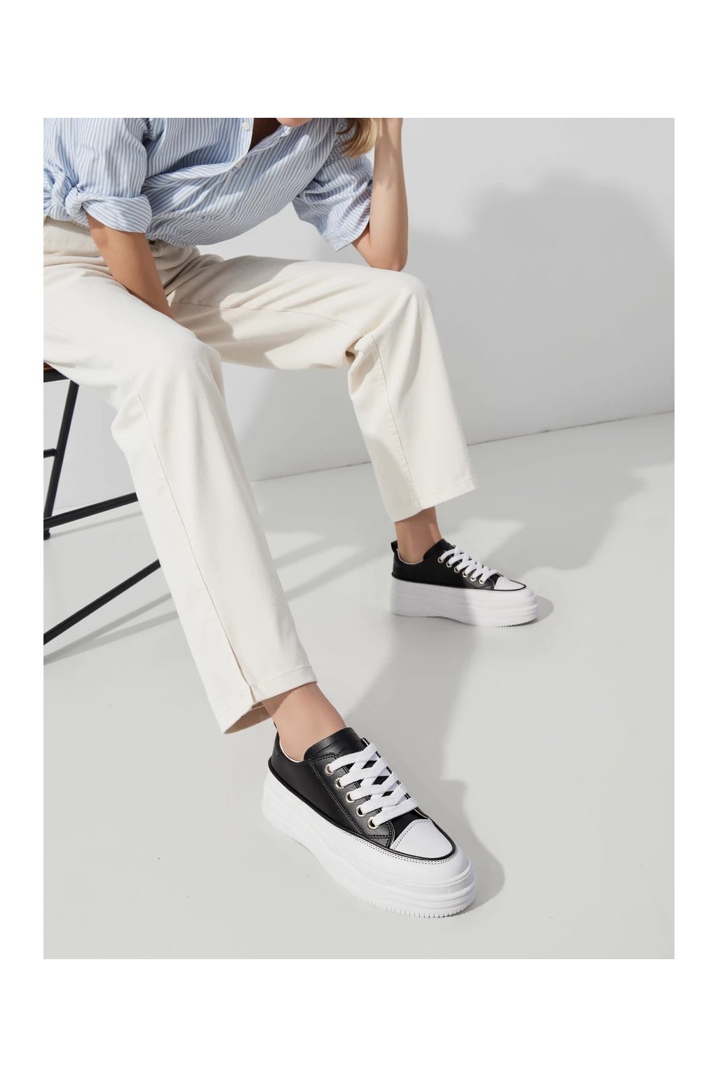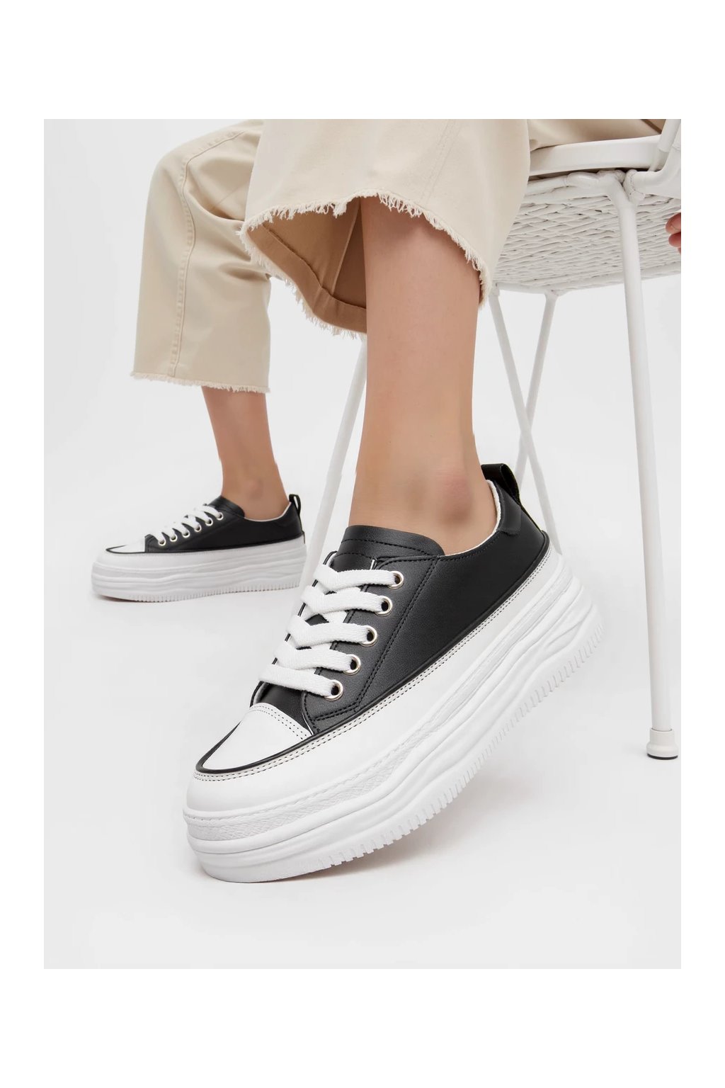 Dámske čierno-biele mokasíny z ekokože, kontrastné farby, kód DKB8213